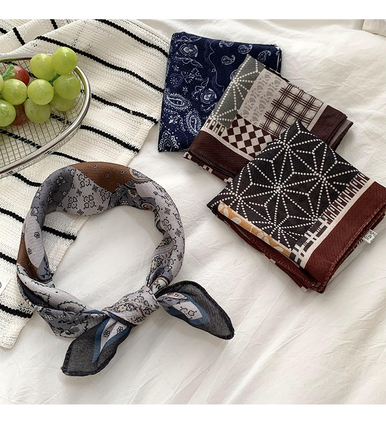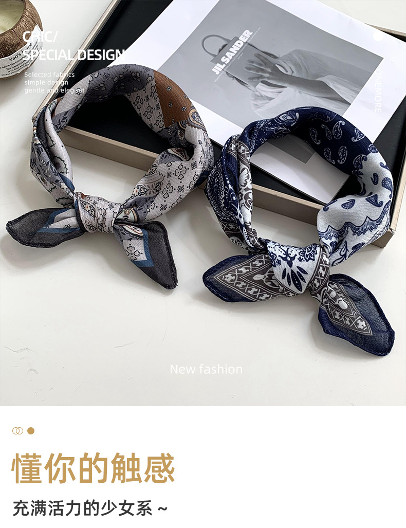 실크 스카프 고급 센스 2024 새로운면과 리넨 작은 신선한 올 매치 통기성 예술 장식 스카프 스퀘어 스카프 도매스토어 가기