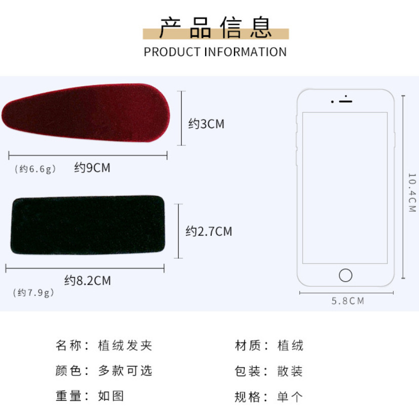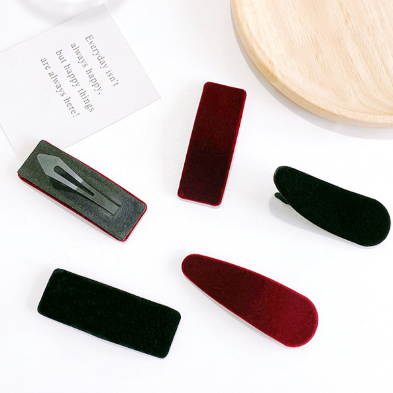 한국 스타일 패션 스퀘어 헤어핀 우아한 뱅 클립 헤어 액세서리 벨벳 헤드웨어 가을과 겨울 간단한 물방울 BB 클립