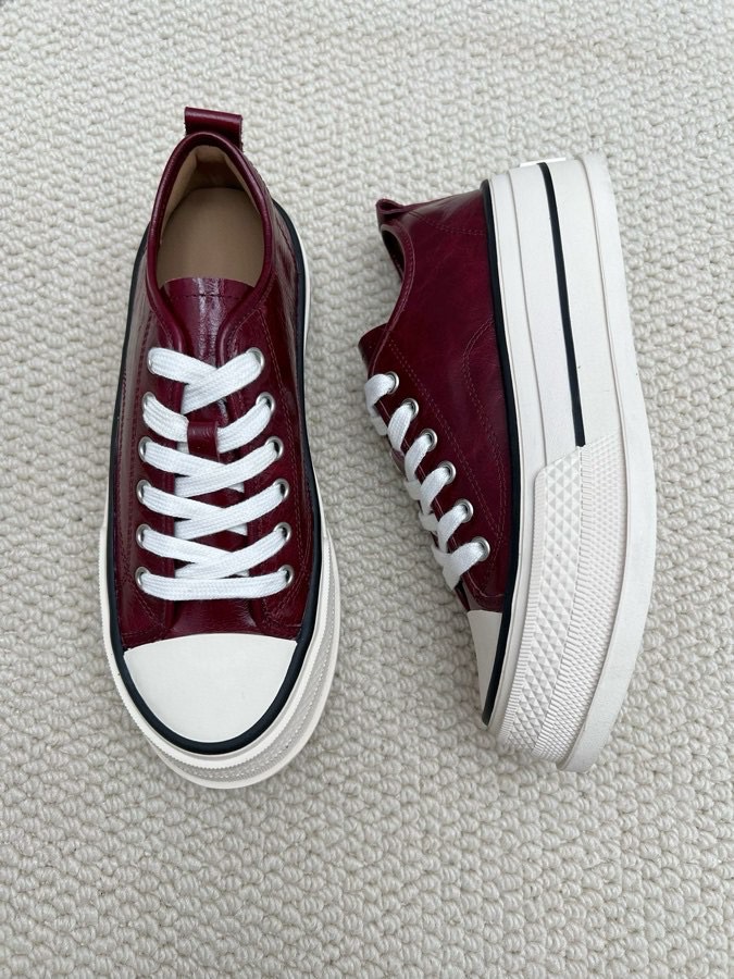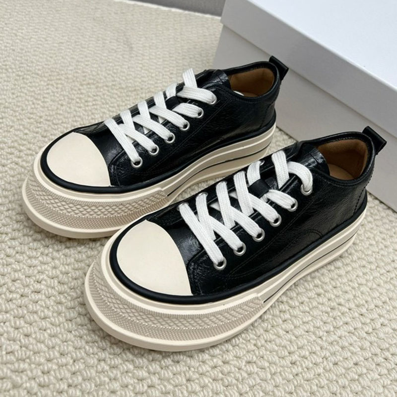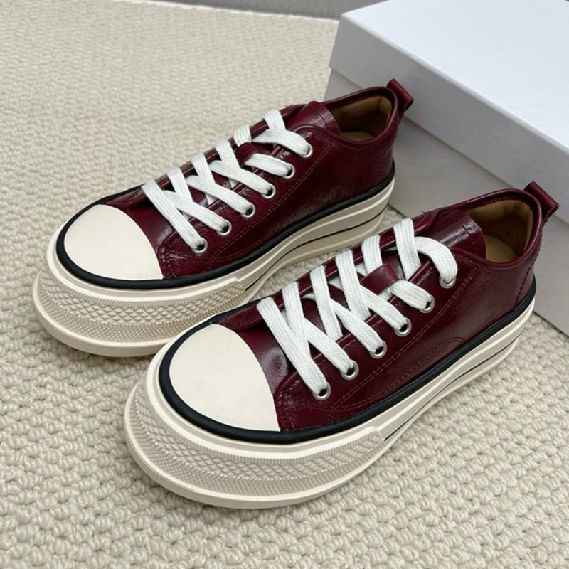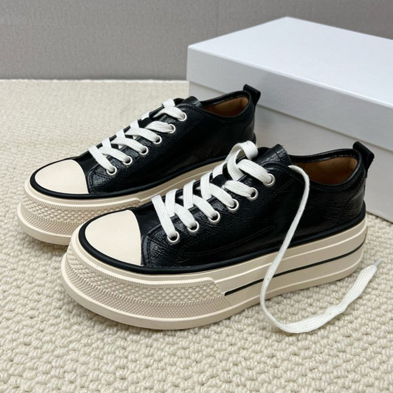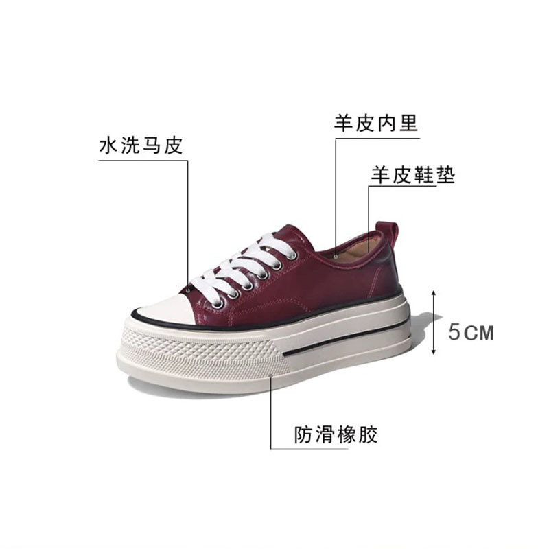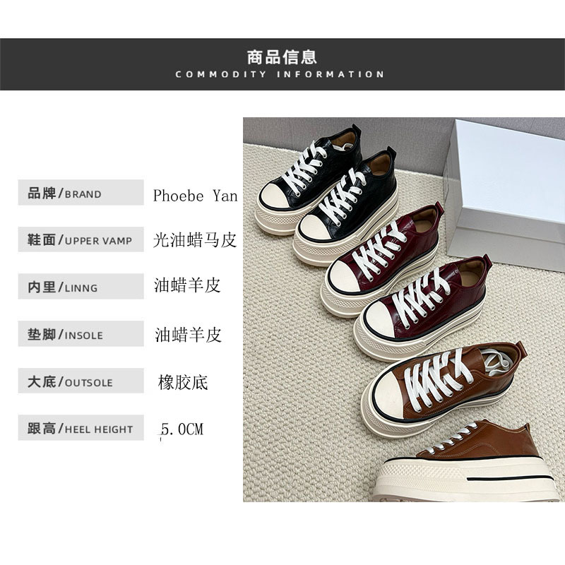 플랫폼 단독 신발 여성의 2024 새로운 가을 미친 말 가죽 로우 탑 레이스 업 캐주얼 플랫폼 신발 증가 여성 신발스토어 가기