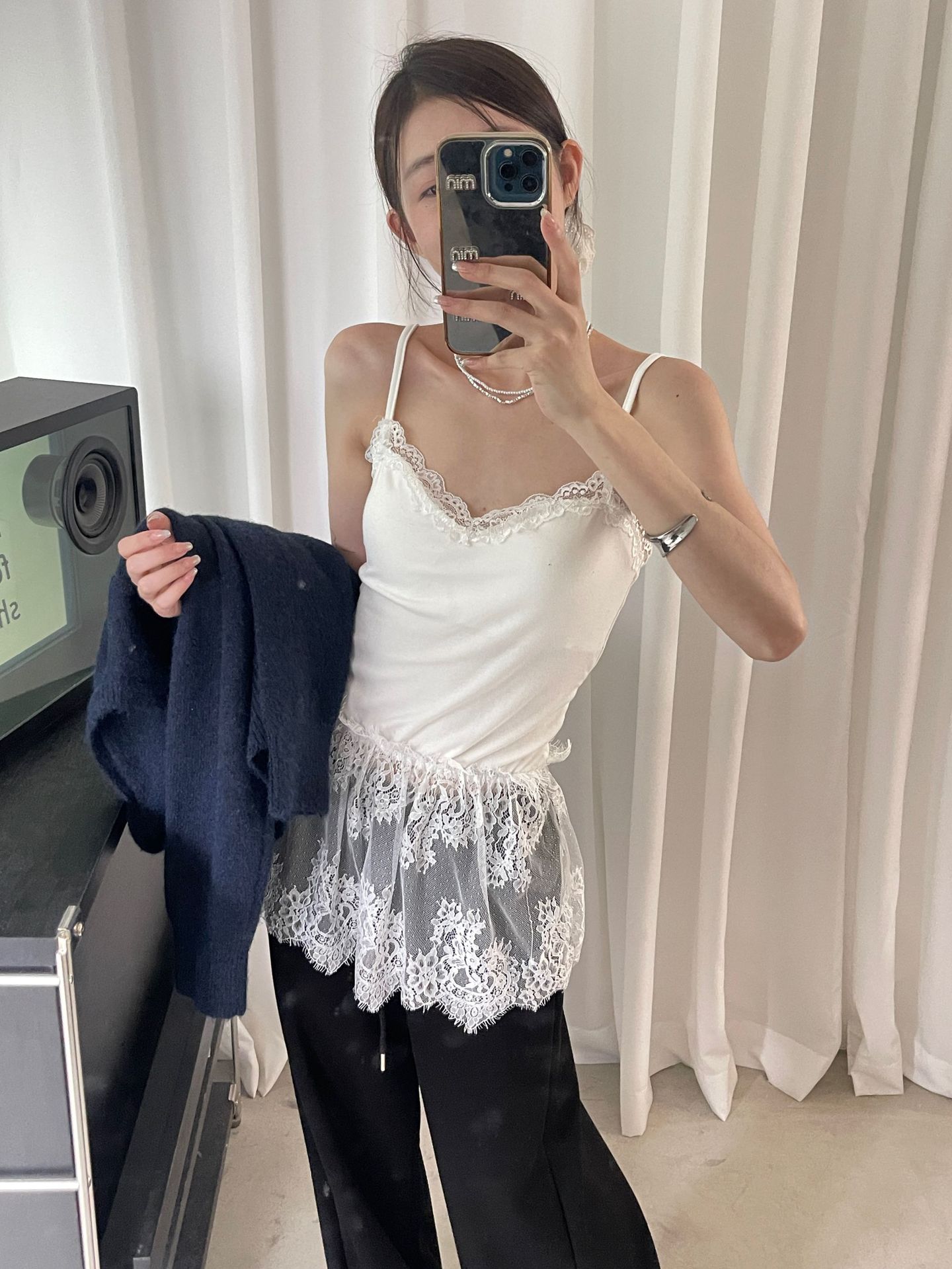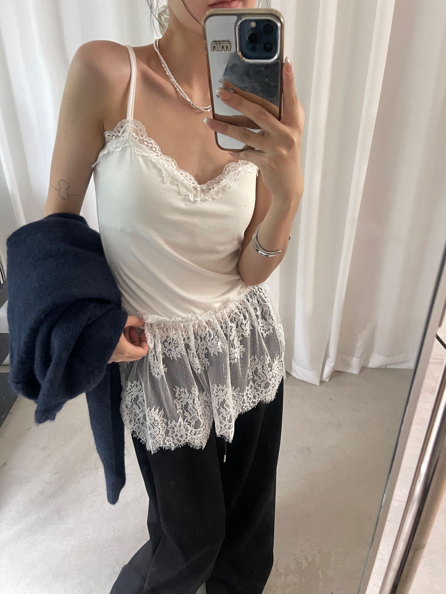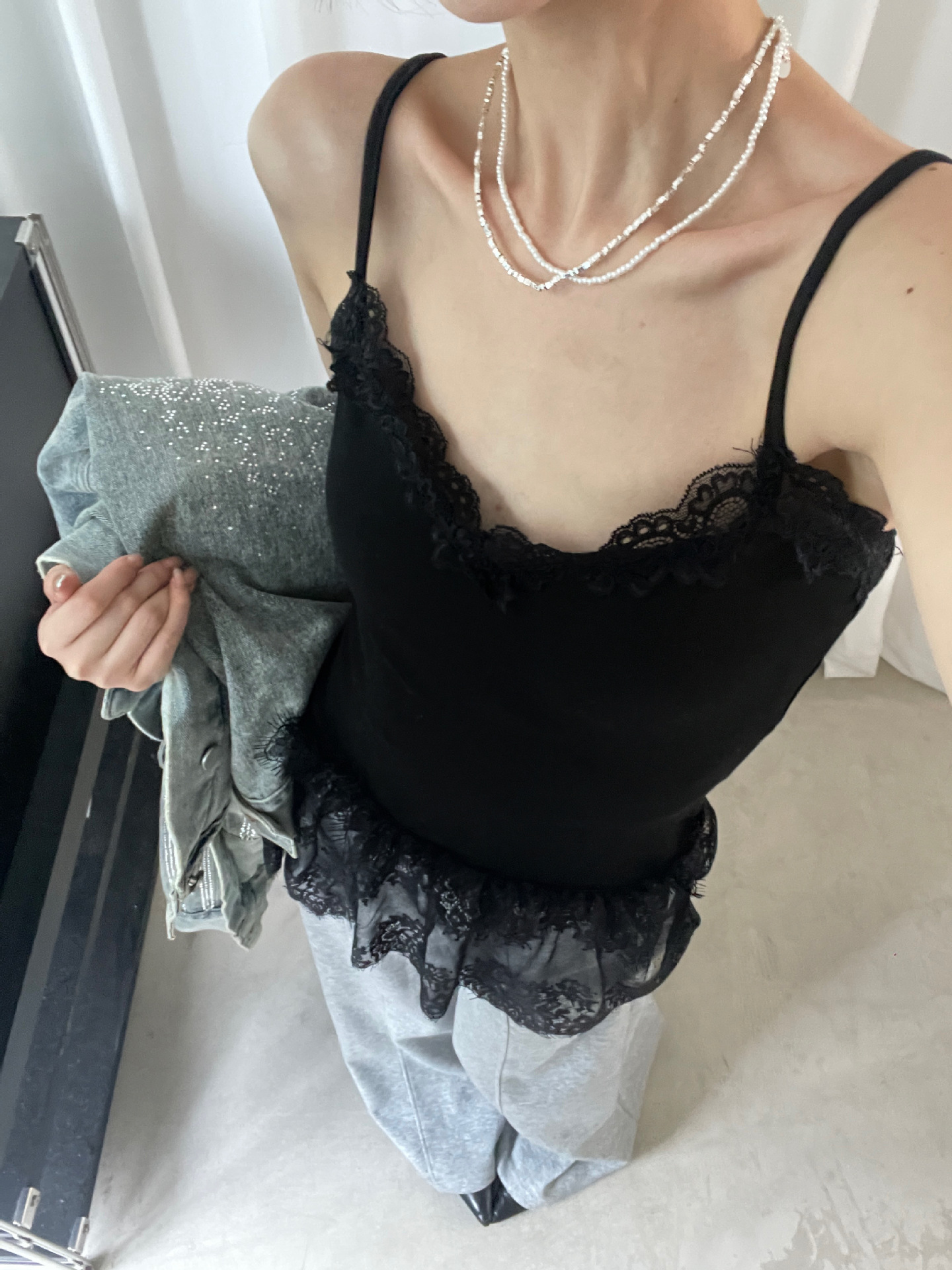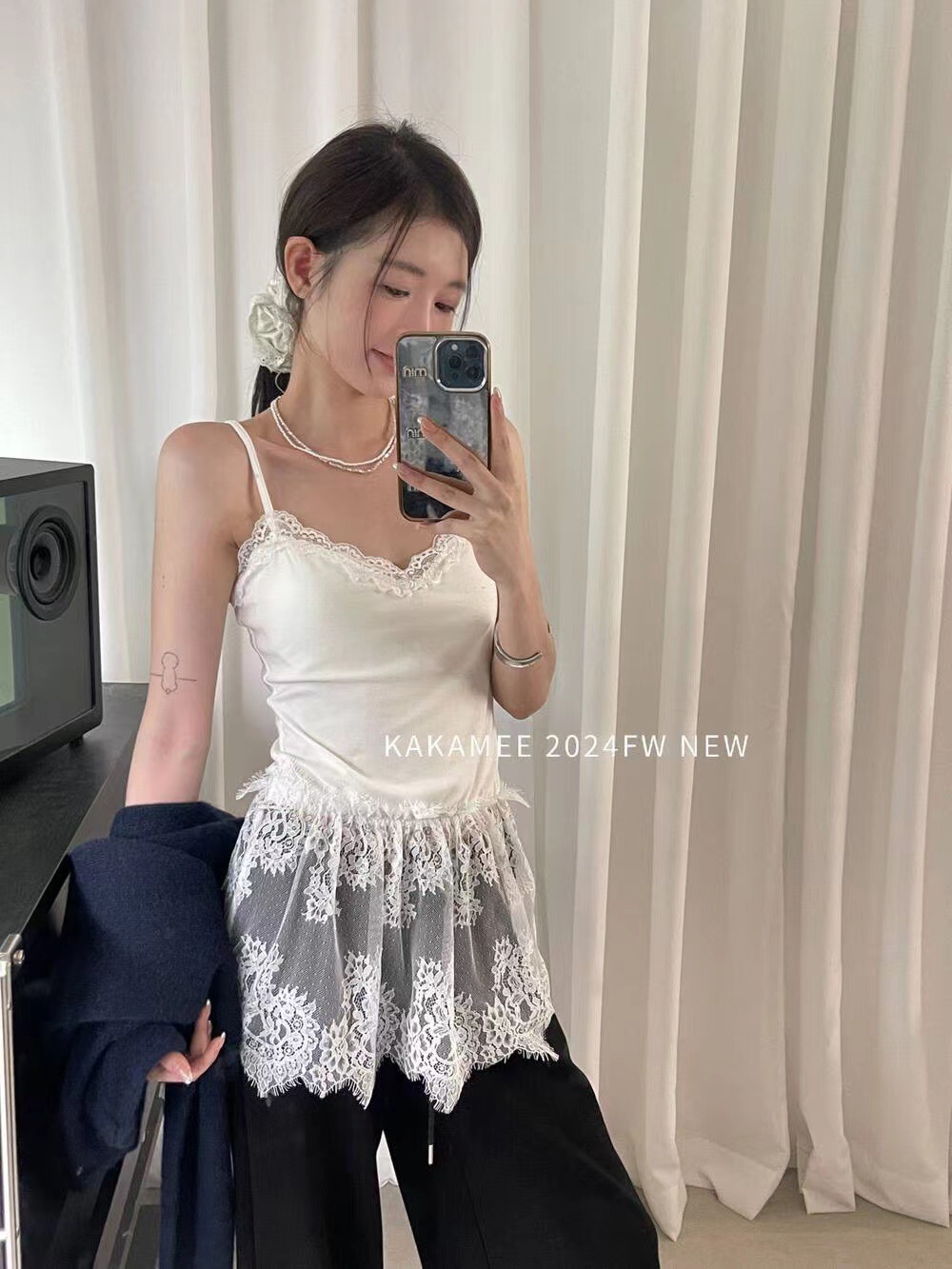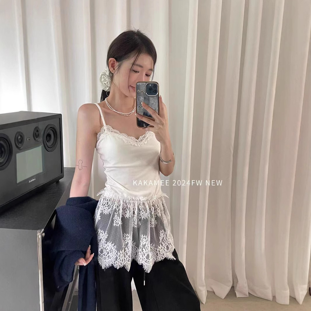 가을 한국 스타일 쌓아 아름다운 뒷면 순수 레이스 내부 착용 브래킷 패드 여성용 스커트 조끼 착용스토어 가기