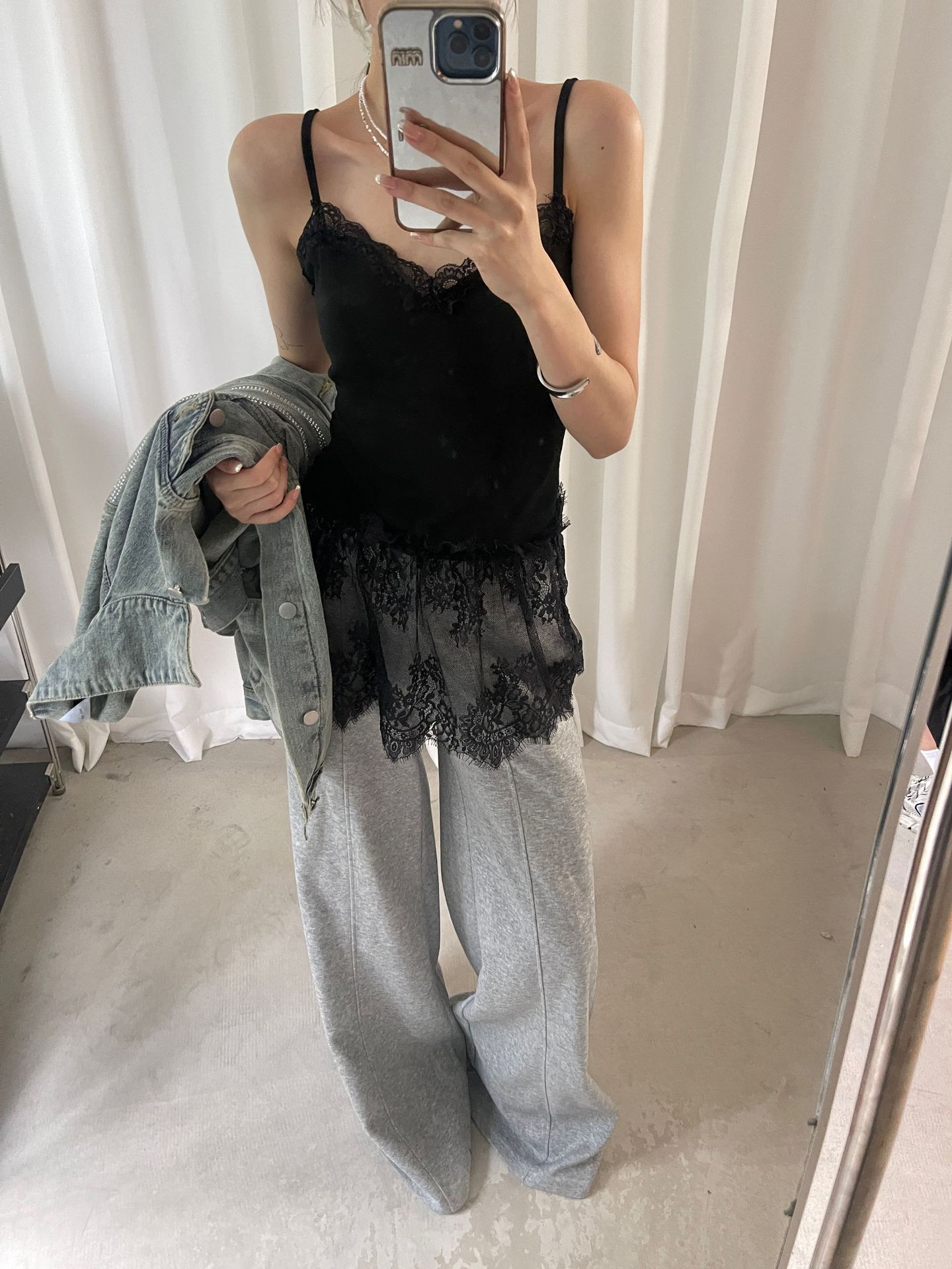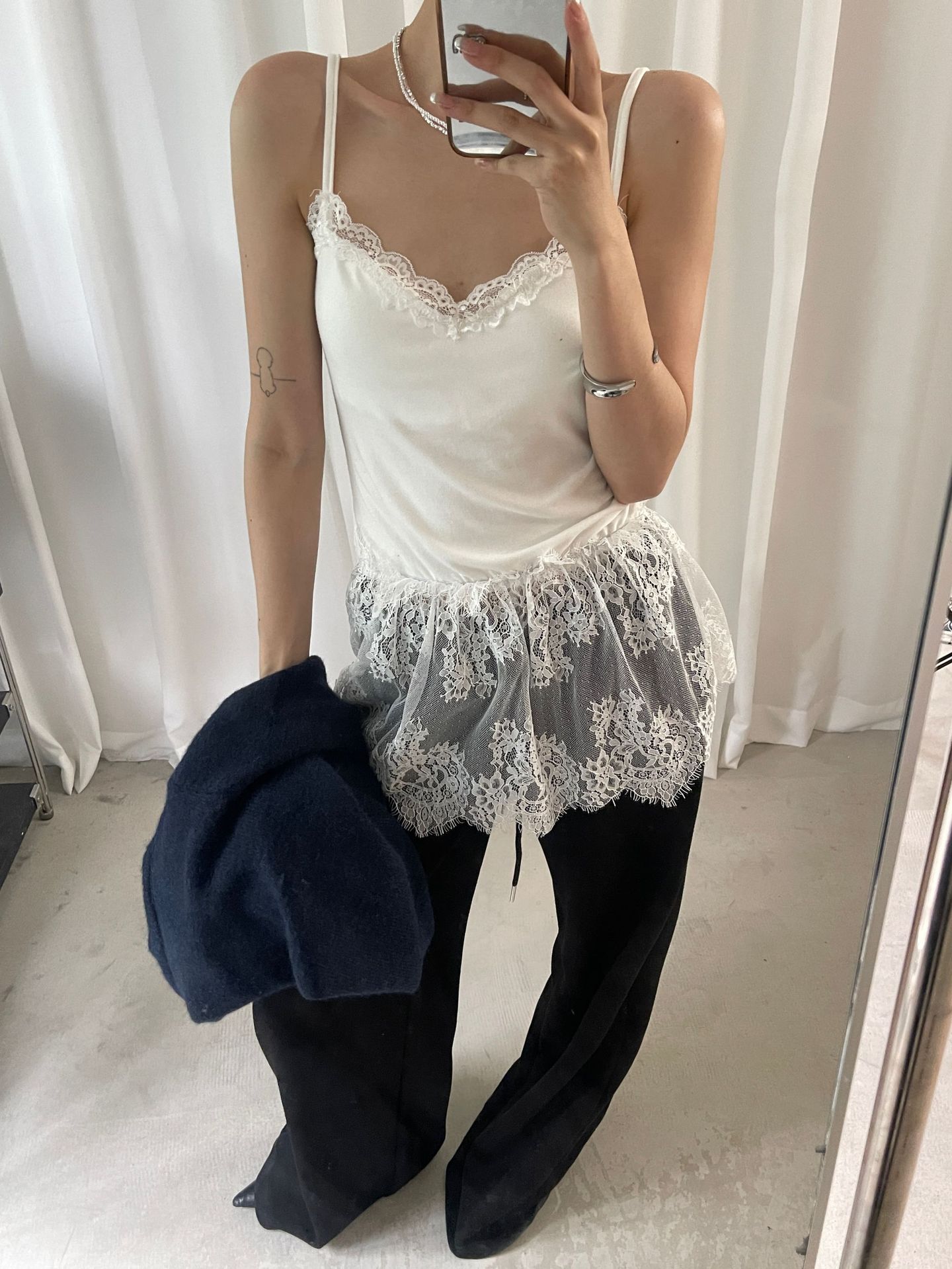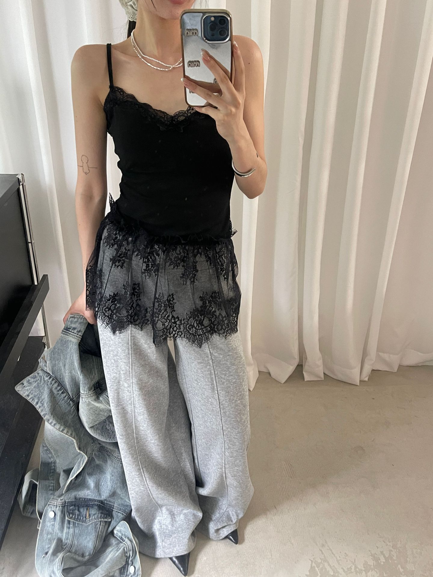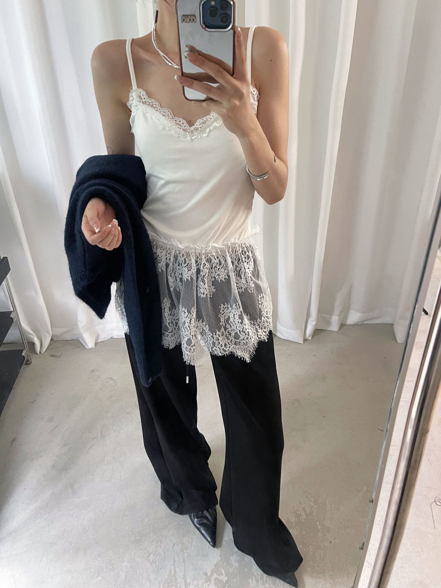 가을 한국 스타일 쌓아 아름다운 뒷면 순수 레이스 내부 착용 브래킷 패드 여성용 스커트 조끼 착용스토어 가기