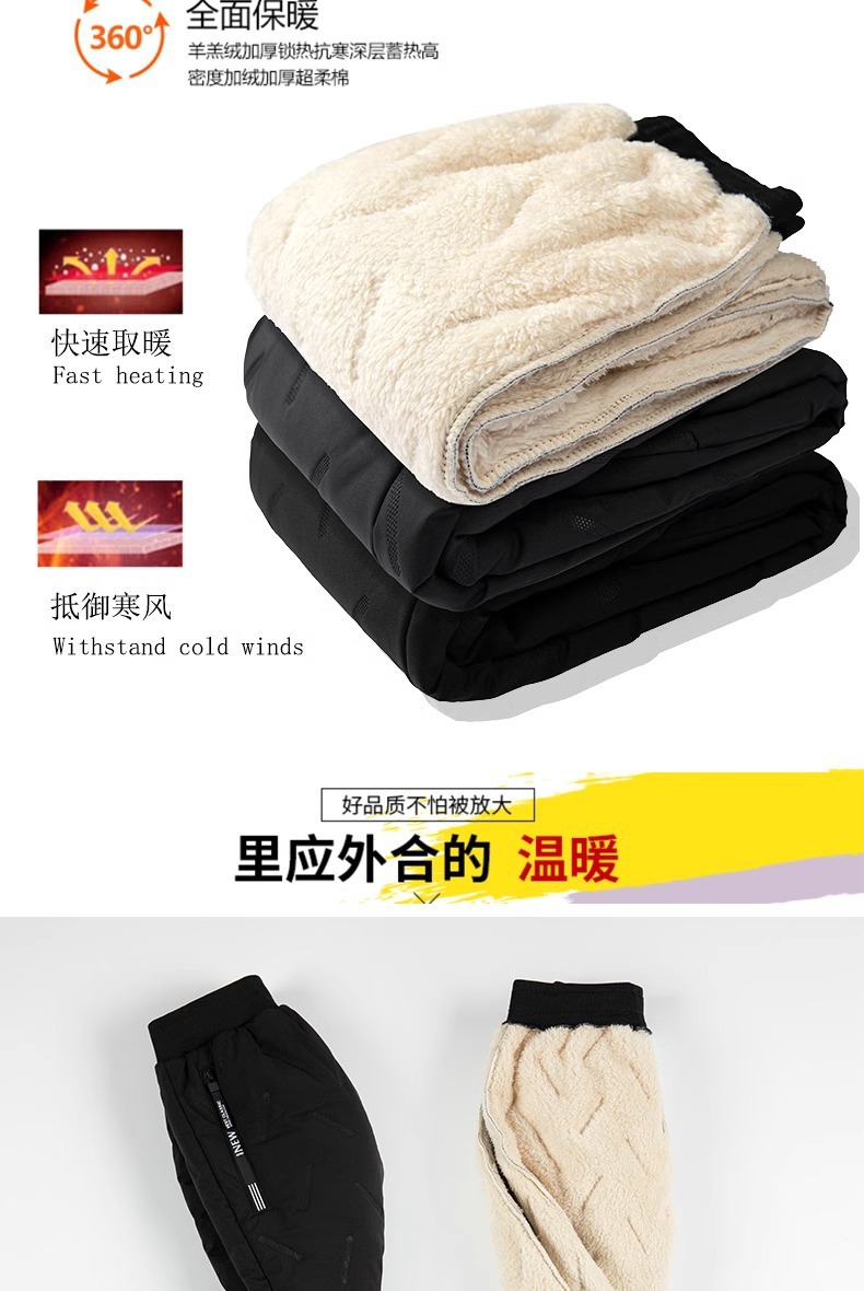 따뜻한 바지 소년 겨울면 바지 큰 어린이 기모 두꺼운 캐주얼 방풍 방수 양가죽 긴 바지