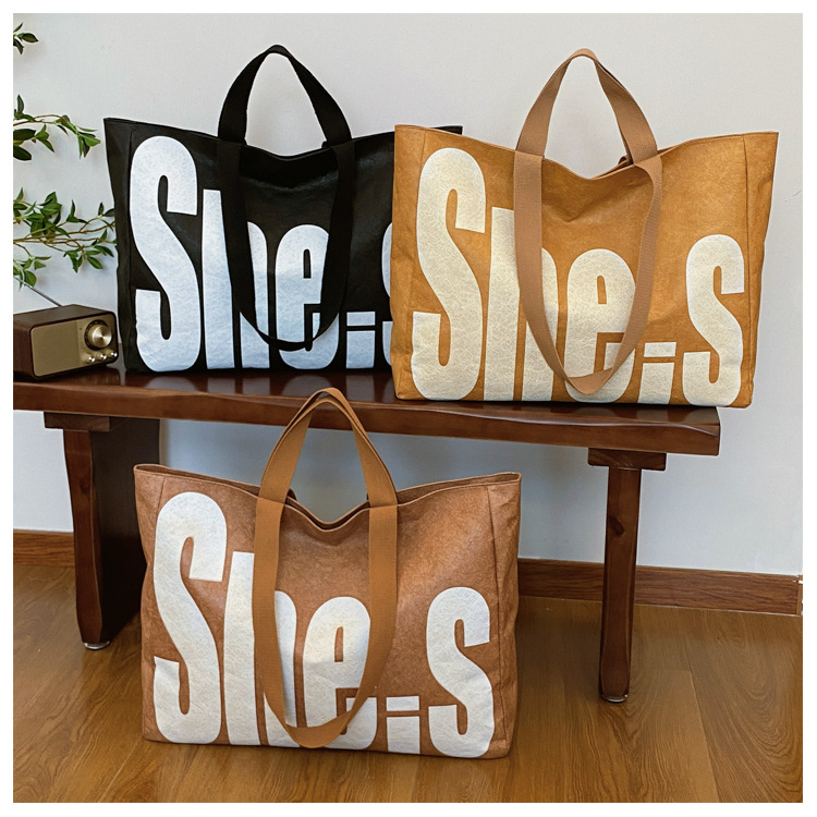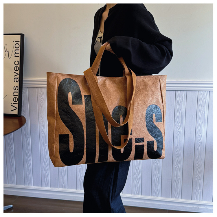 국경을 넘나 드는 한국식 대용량 토트 백 여성 2024 년 가을 · 겨울 새 예술적 편지 인쇄 숄더백 올매치 여성용 가방스토어 가기