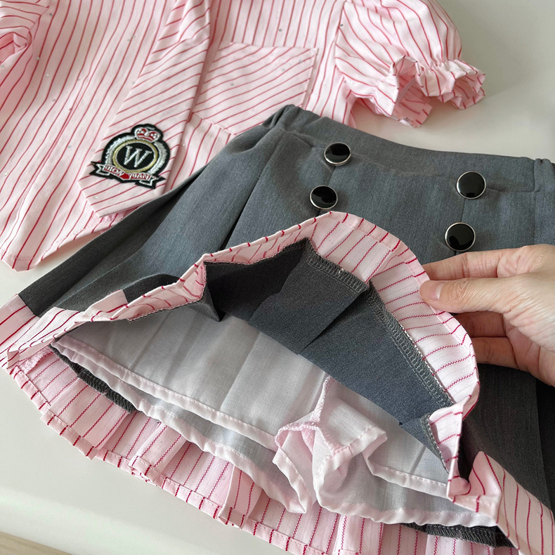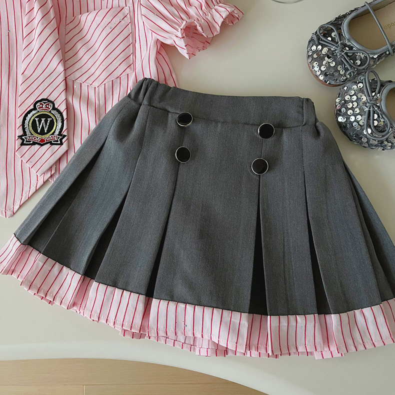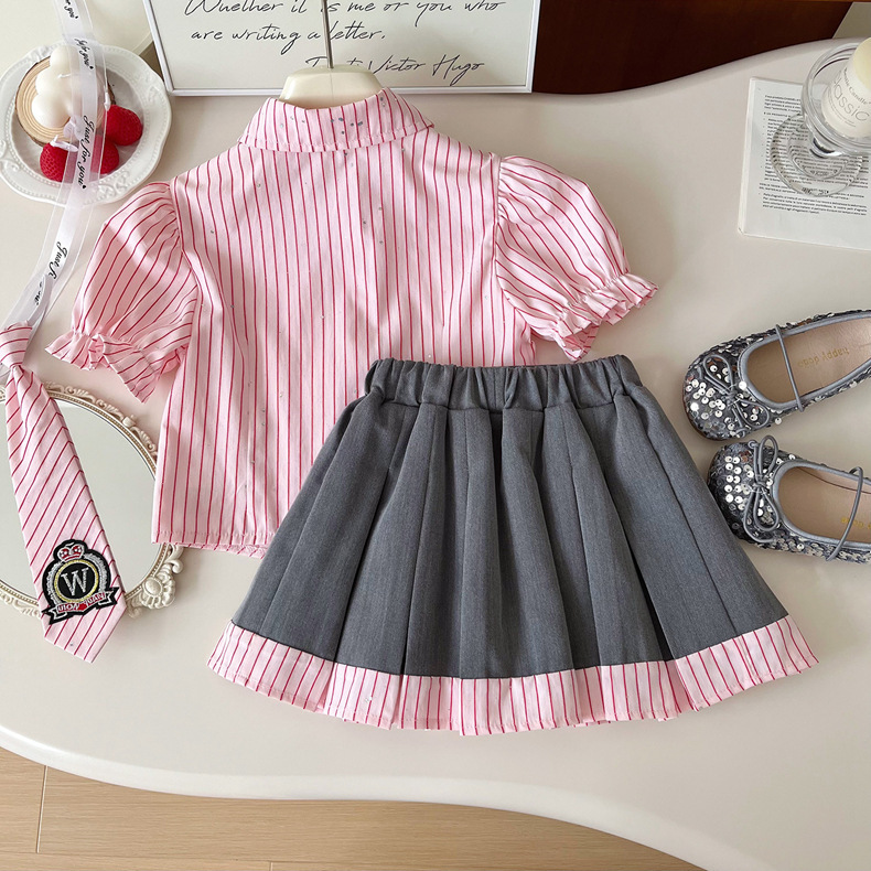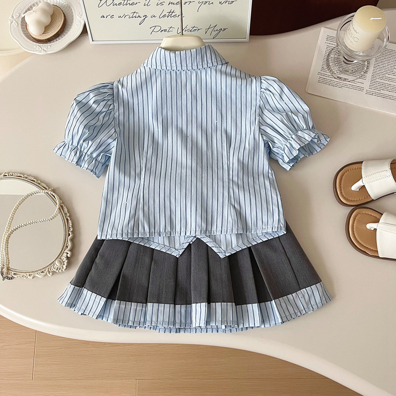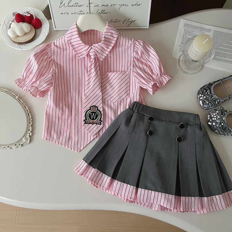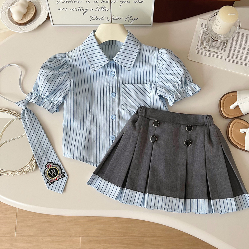 여아용 여름 2025년 신상품 아동복, 세련된 여학생 스타일 유니폼, 여아용 셔츠와 플리츠 스커트 투피스 세트