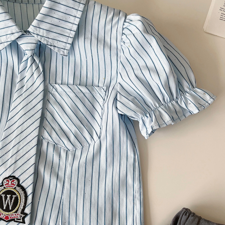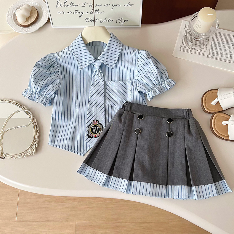 여아용 여름 2025년 신상품 아동복, 세련된 여학생 스타일 유니폼, 여아용 셔츠와 플리츠 스커트 투피스 세트스토어 가기