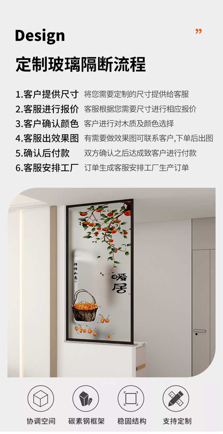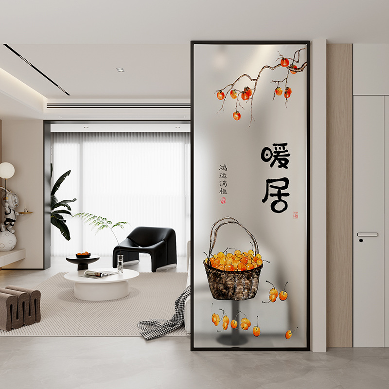 현대 간단한 예술 유리 스크린 그림 파티션 거실 벽 세탁기 입구 캐비닛 입구 문 그늘