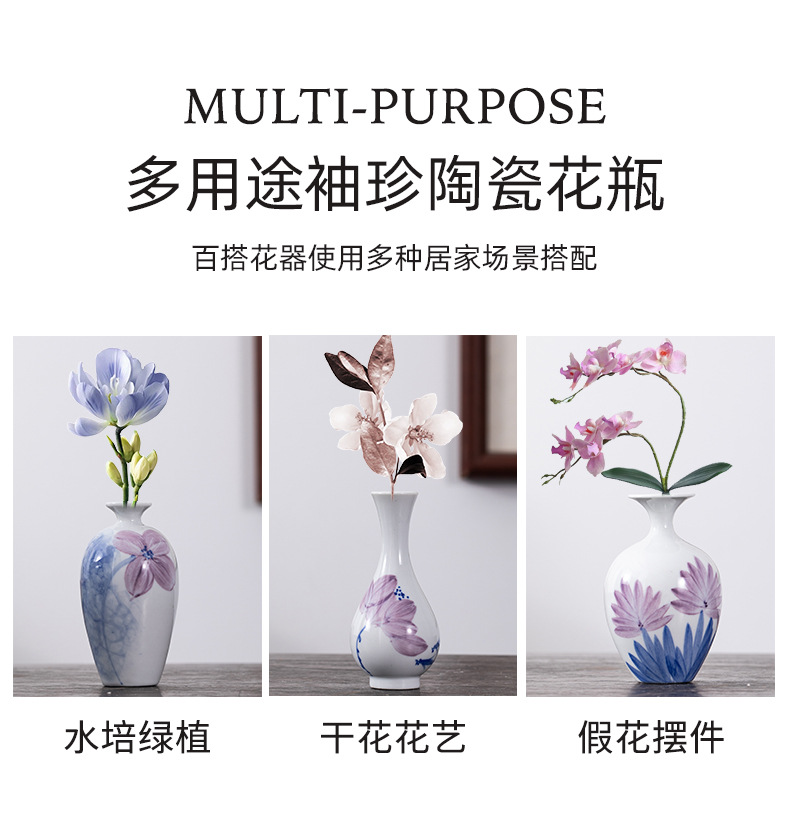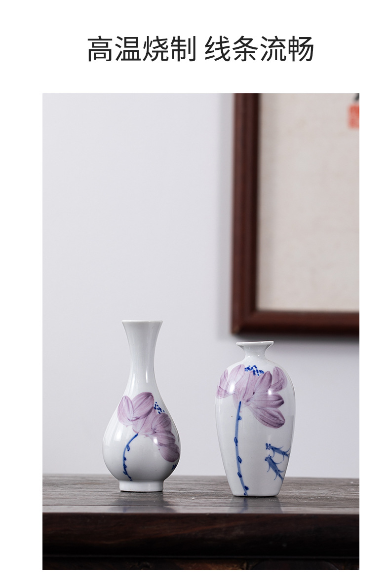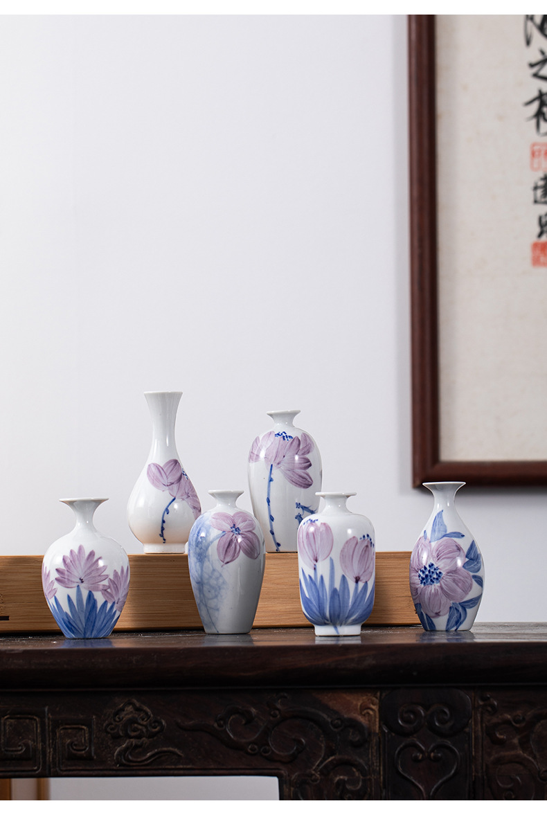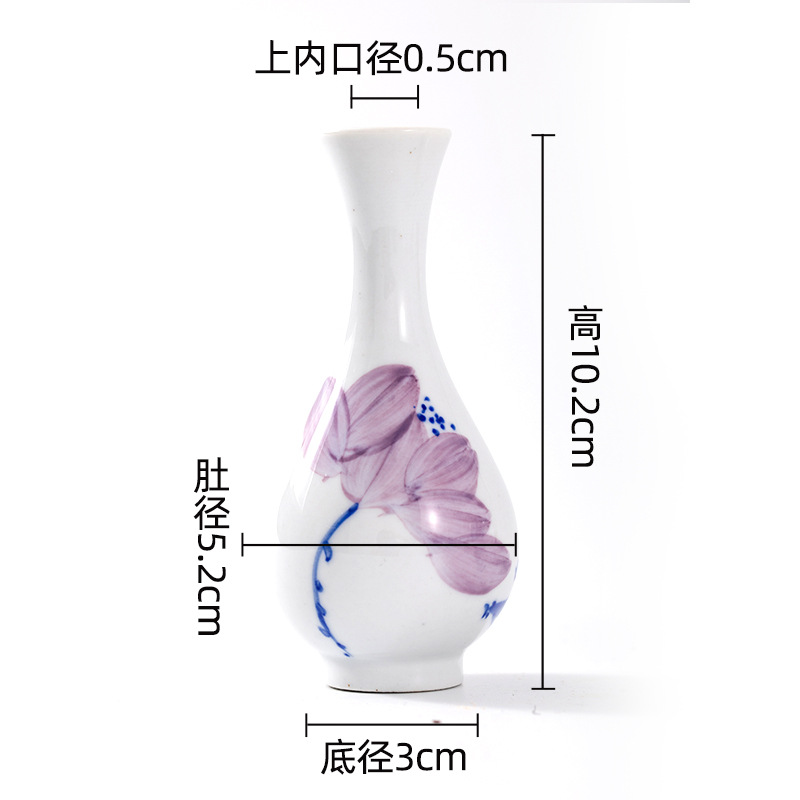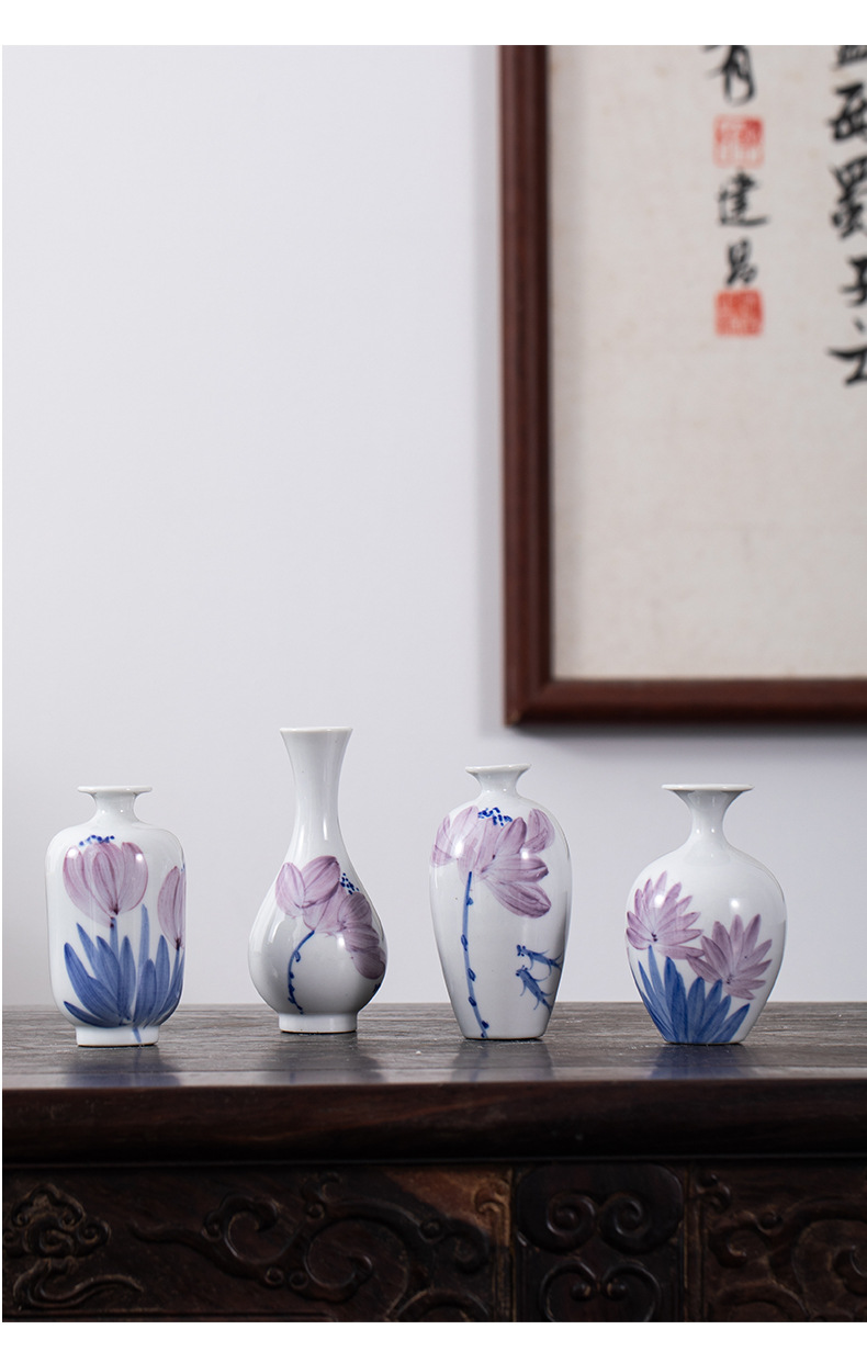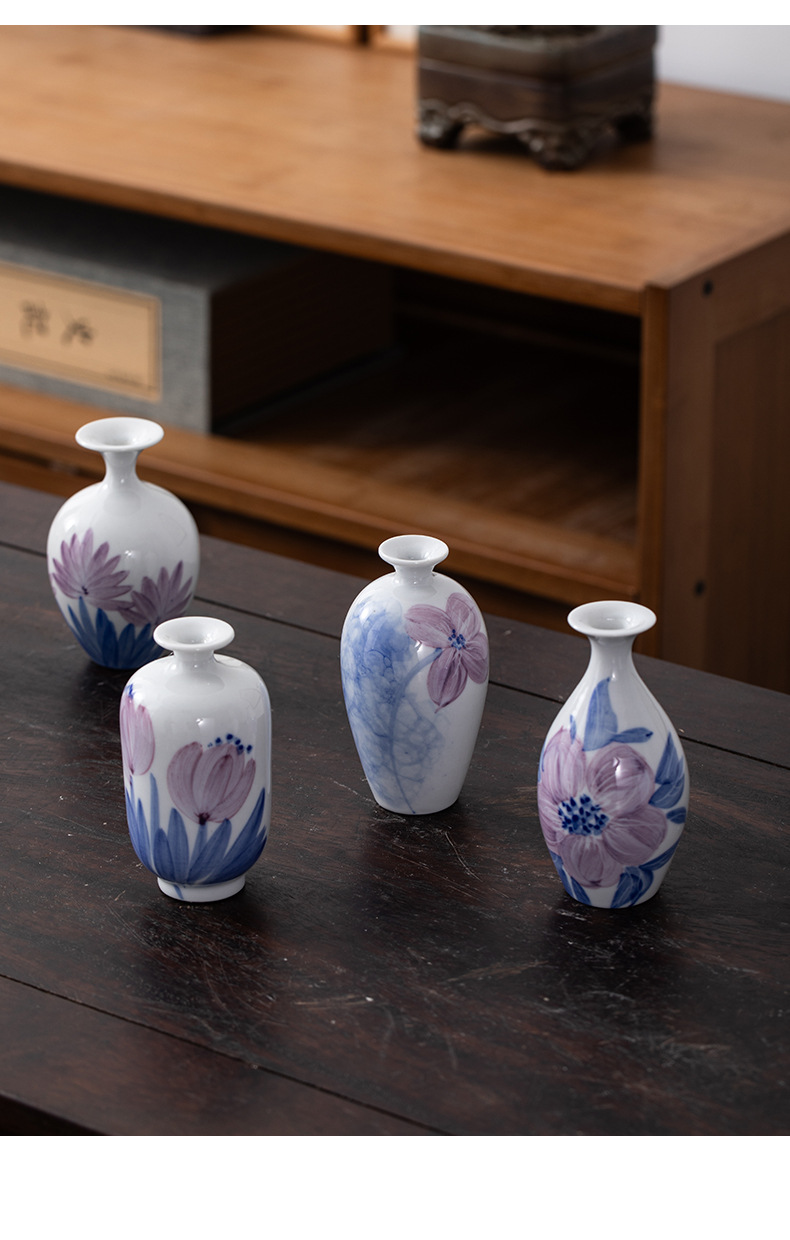 Jingdezhen 순수한 손으로 그린 보라색 세라믹 꽃 꽃병 데스크탑 감압 세라믹 꽃병 수경 고온 세라믹 꽃병스토어 가기
