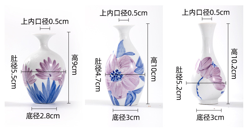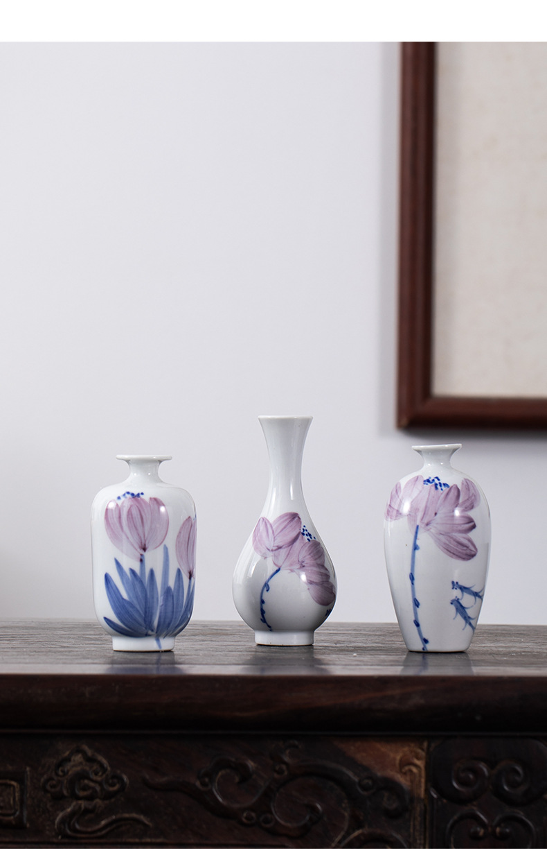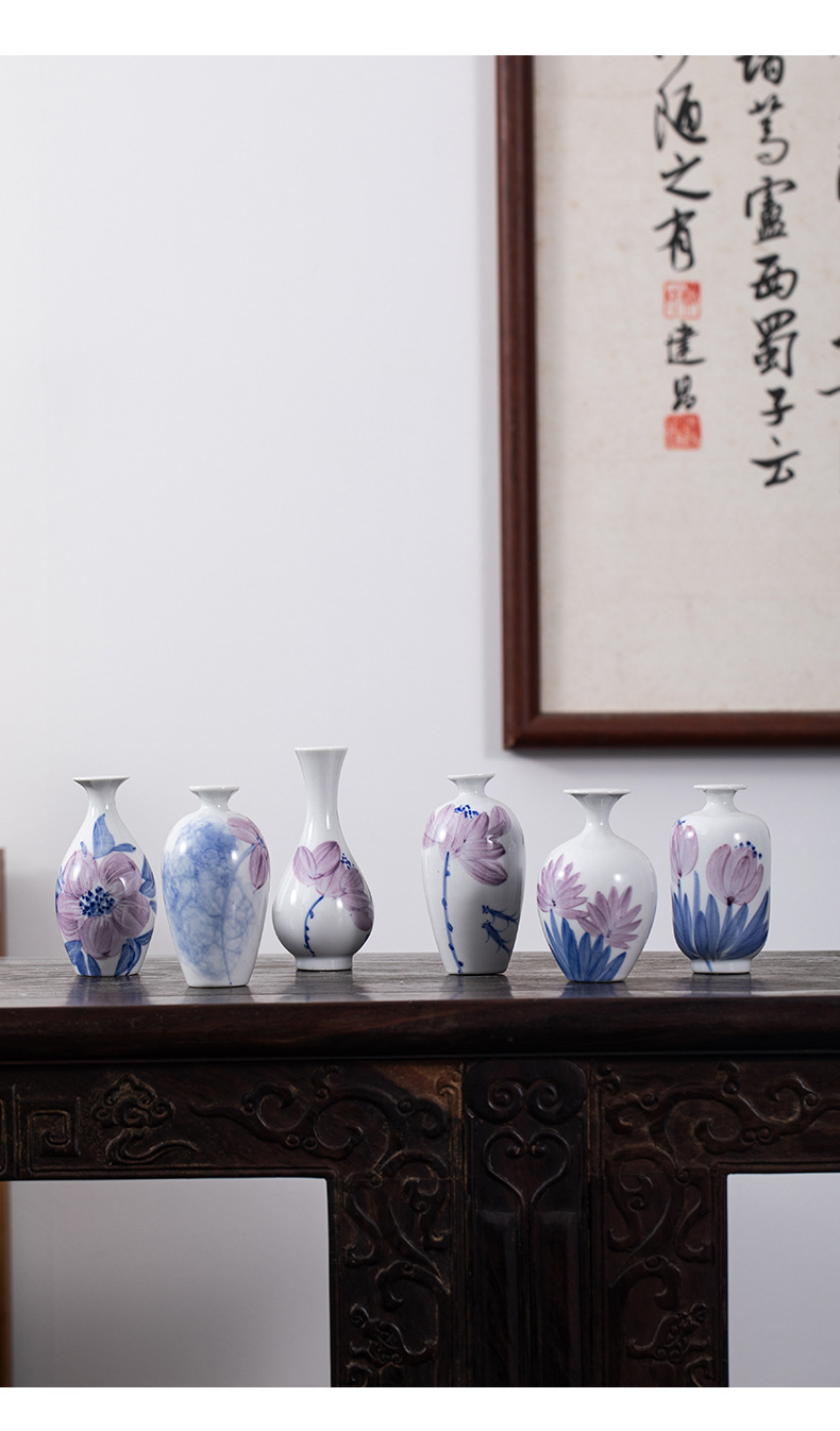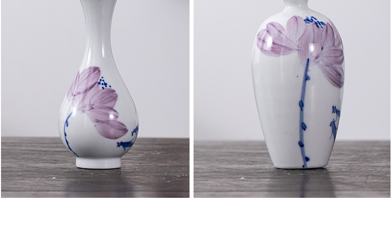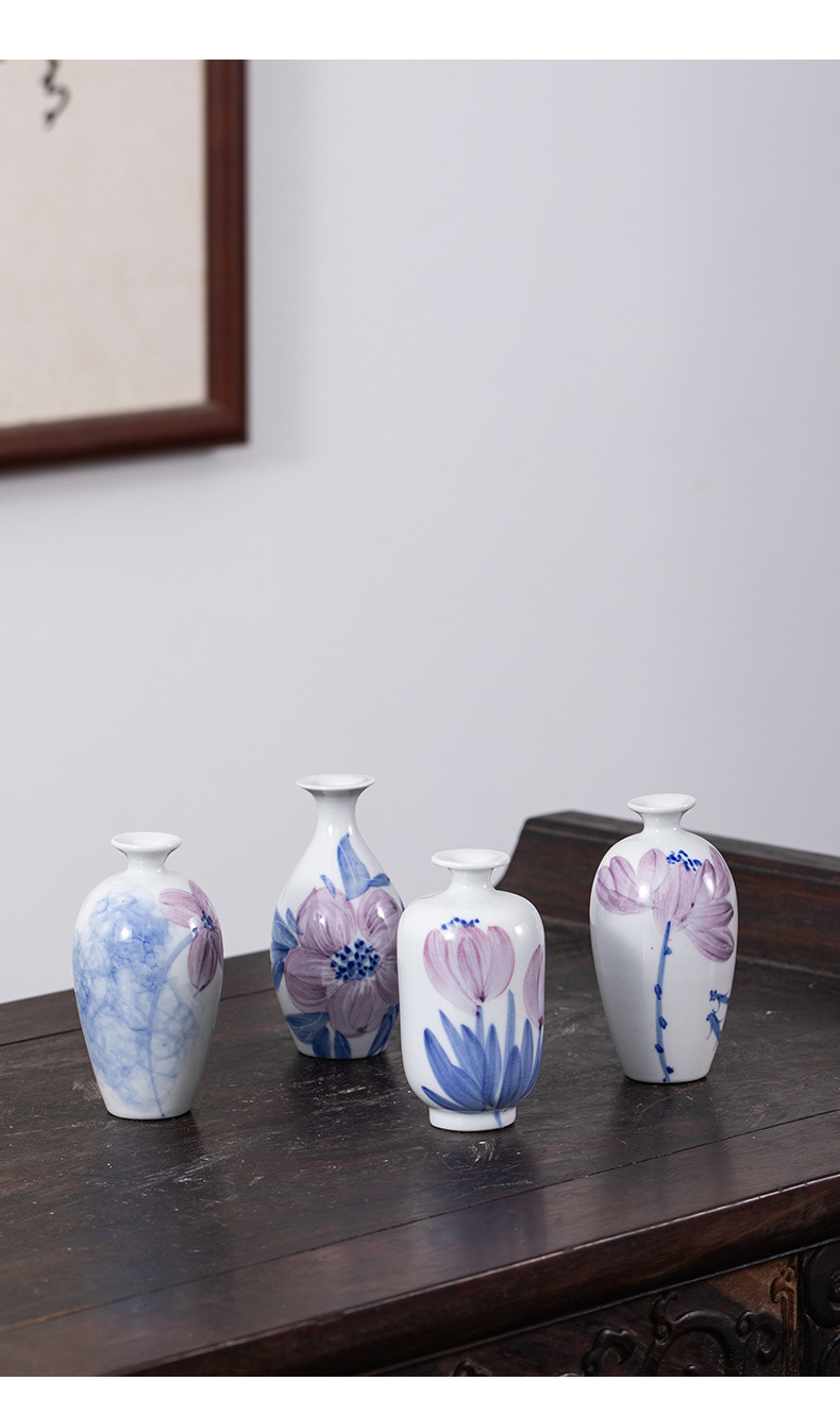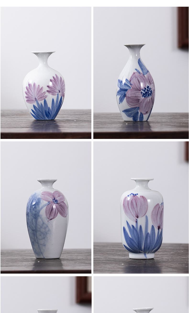 Jingdezhen 순수한 손으로 그린 보라색 세라믹 꽃 꽃병 데스크탑 감압 세라믹 꽃병 수경 고온 세라믹 꽃병스토어 가기
