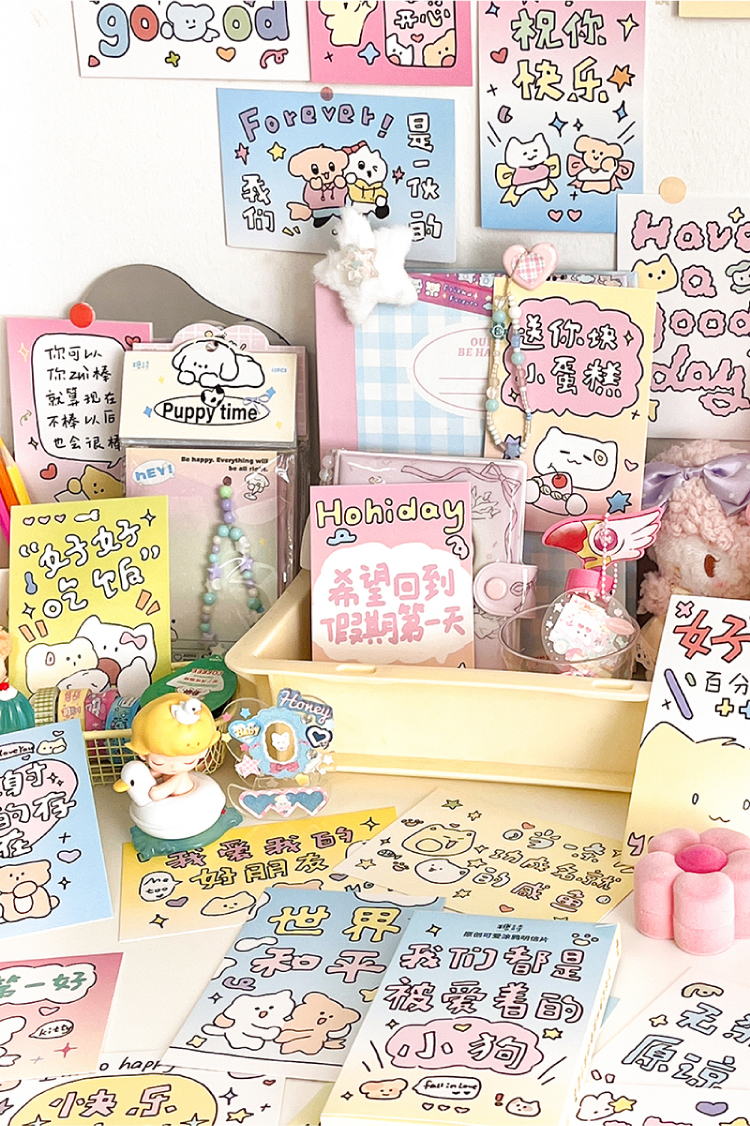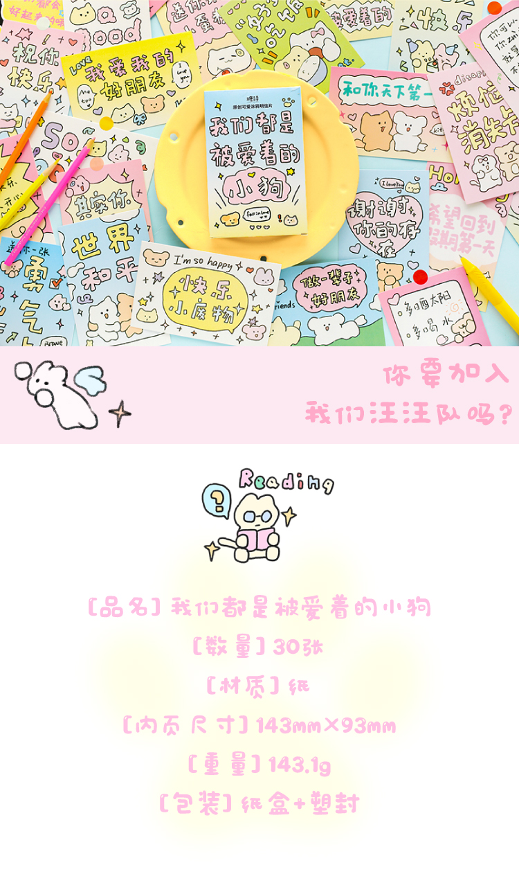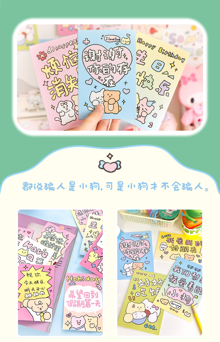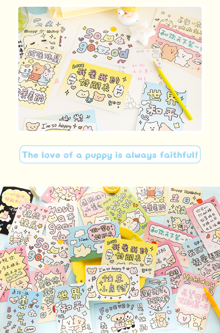 귀여운 낙서 우리는 모두 사랑하는 강아지 엽서, 예술적 생일 카드, 메시지 카드, 작은 카드스토어 가기
