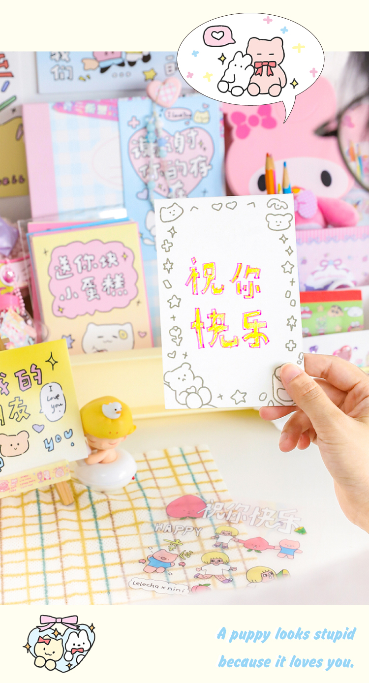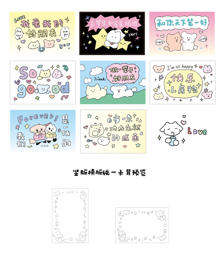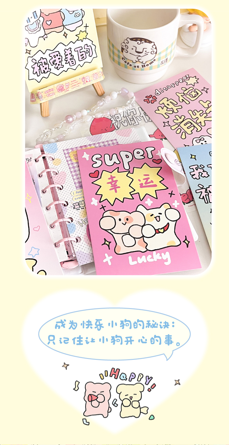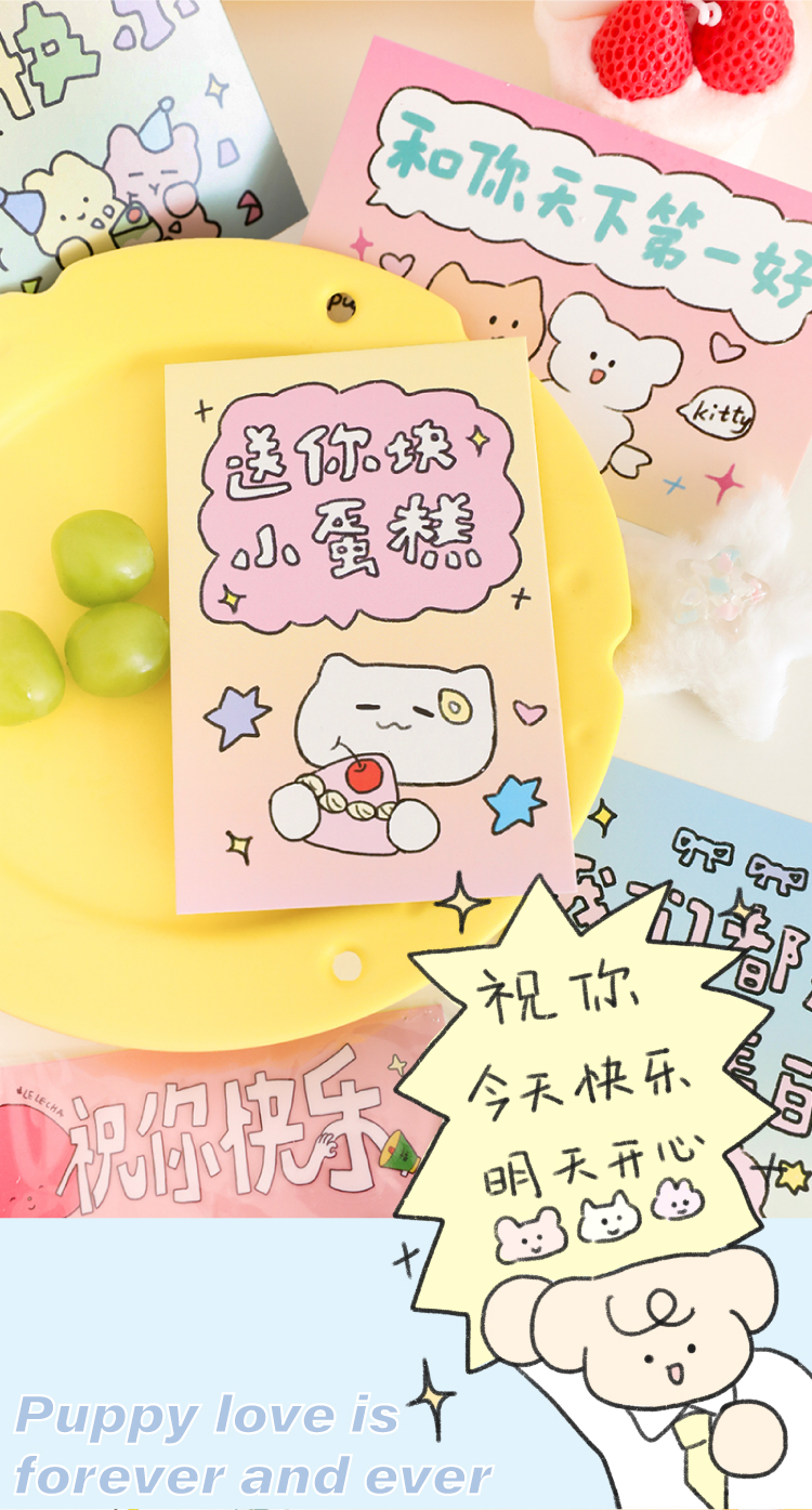귀여운 낙서 우리는 모두 사랑하는 강아지 엽서, 예술적 생일 카드, 메시지 카드, 작은 카드스토어 가기