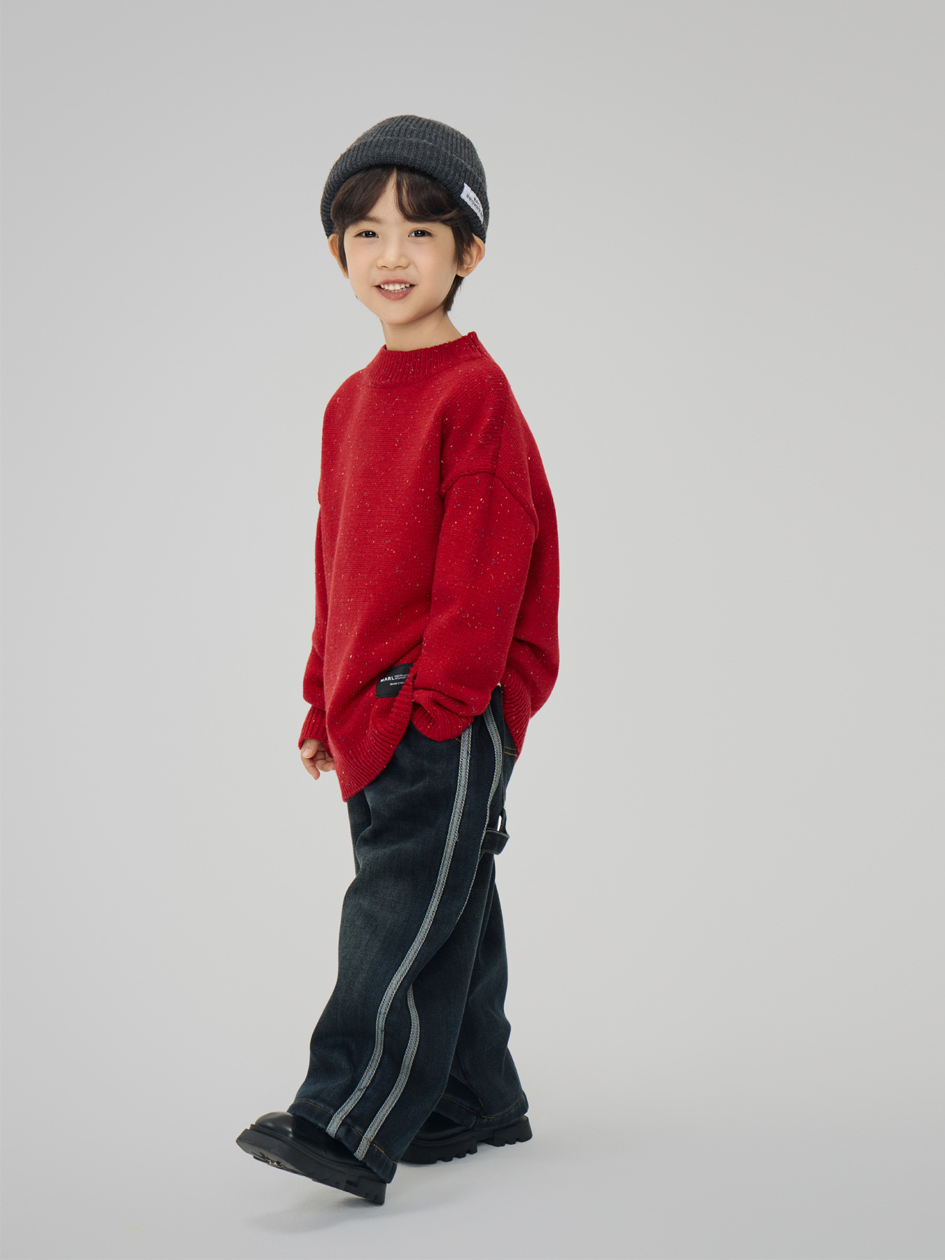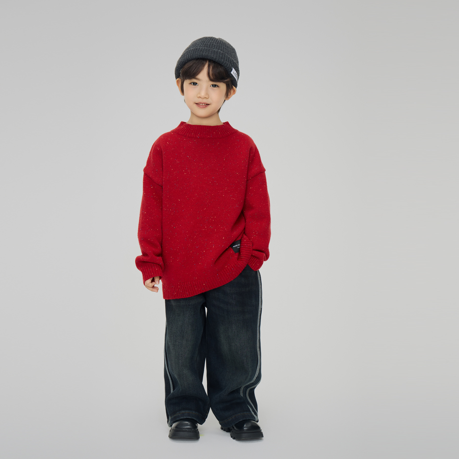 2024 겨울 아동복 새로운 어린이 중립 캐주얼 스웨터 소년 따뜻하고 편안한 새해 빨간 스웨터 조수스토어 가기