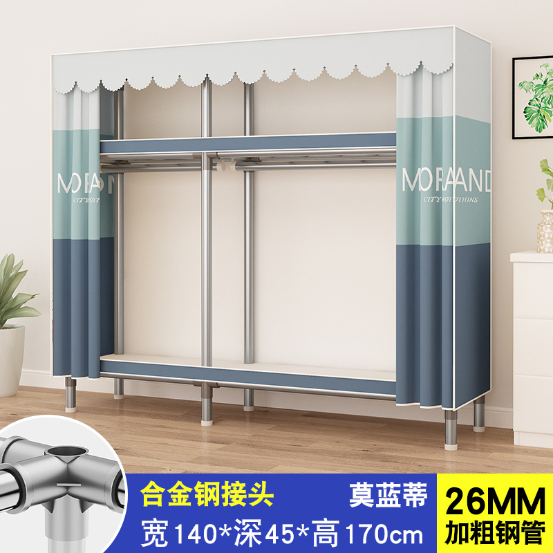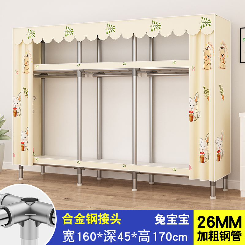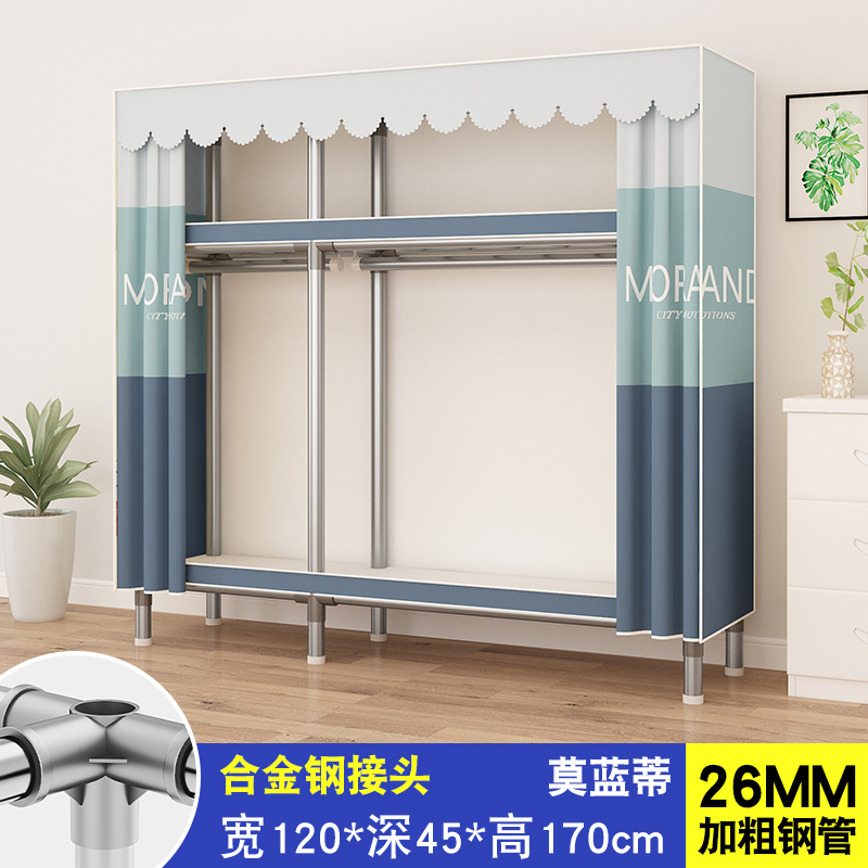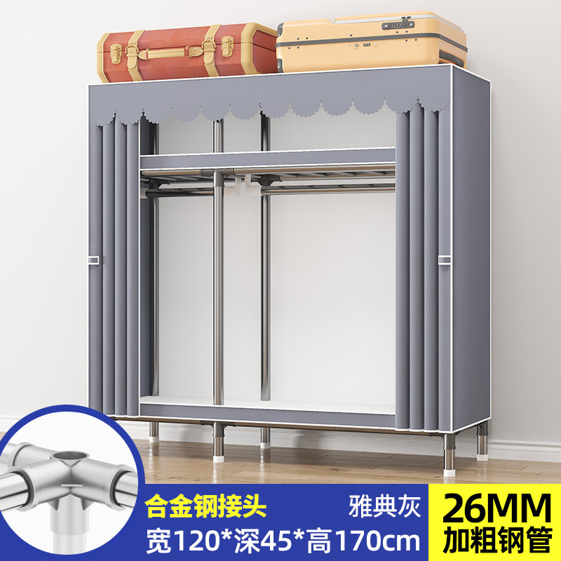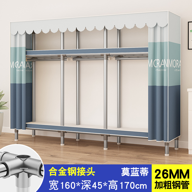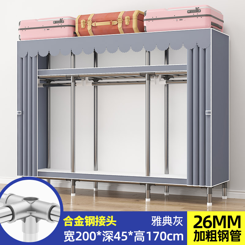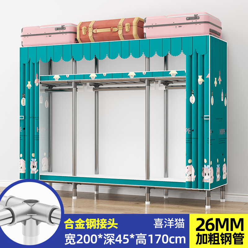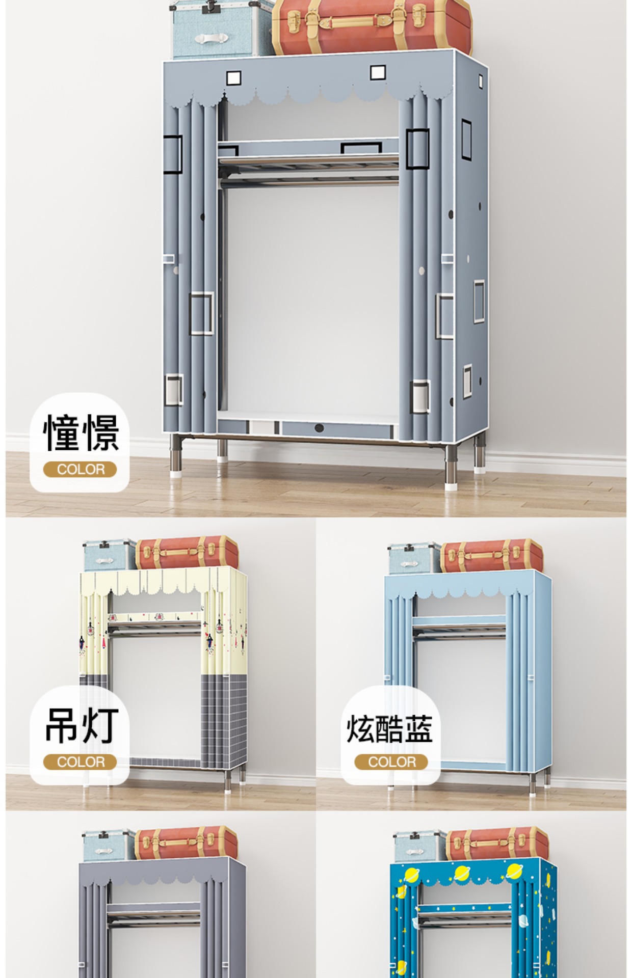간단한 옷장 집 침실 옷감 전체 강철 프레임 두꺼운 임대 방 교수형 옷장 강관 강하고 내구성