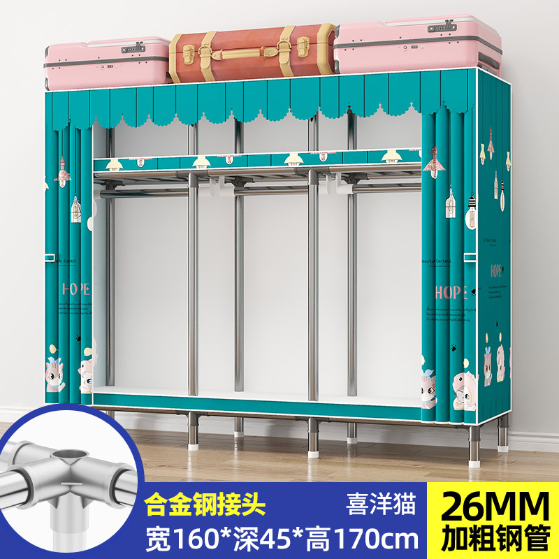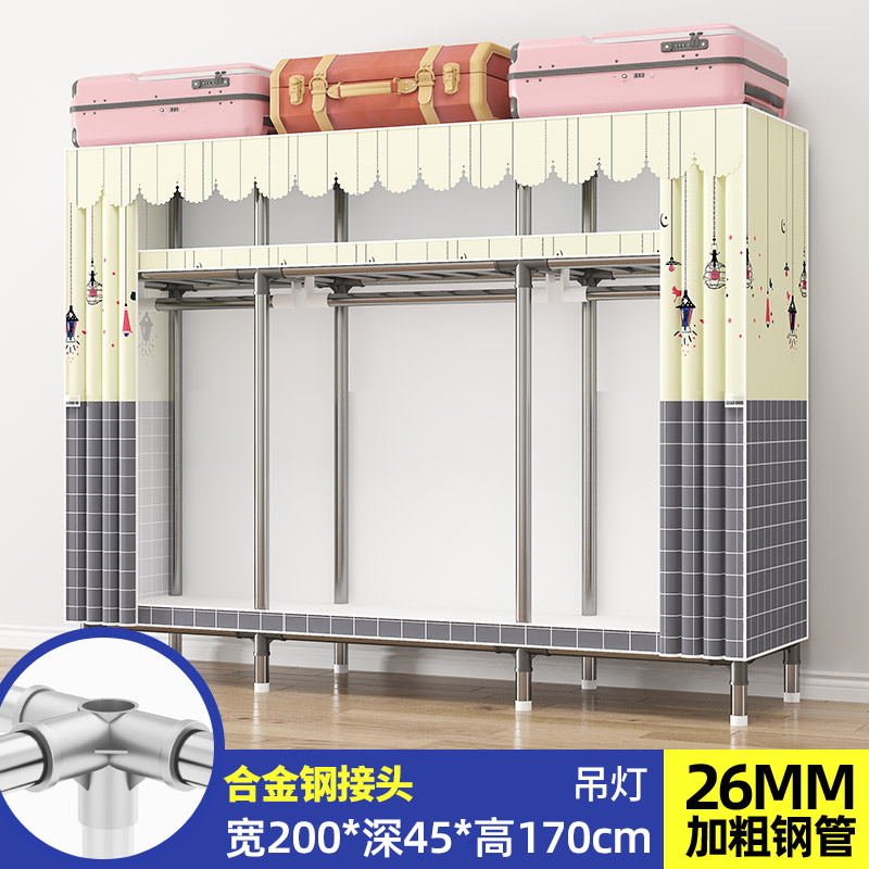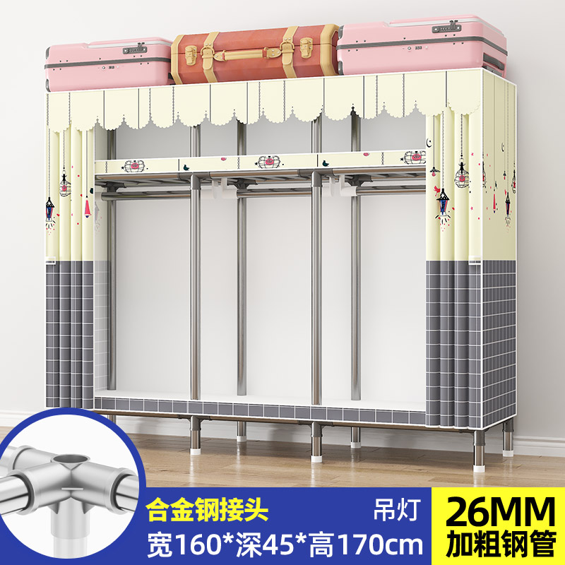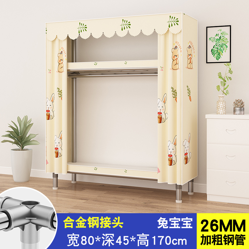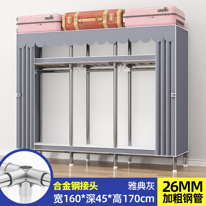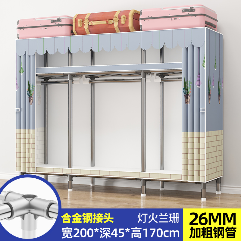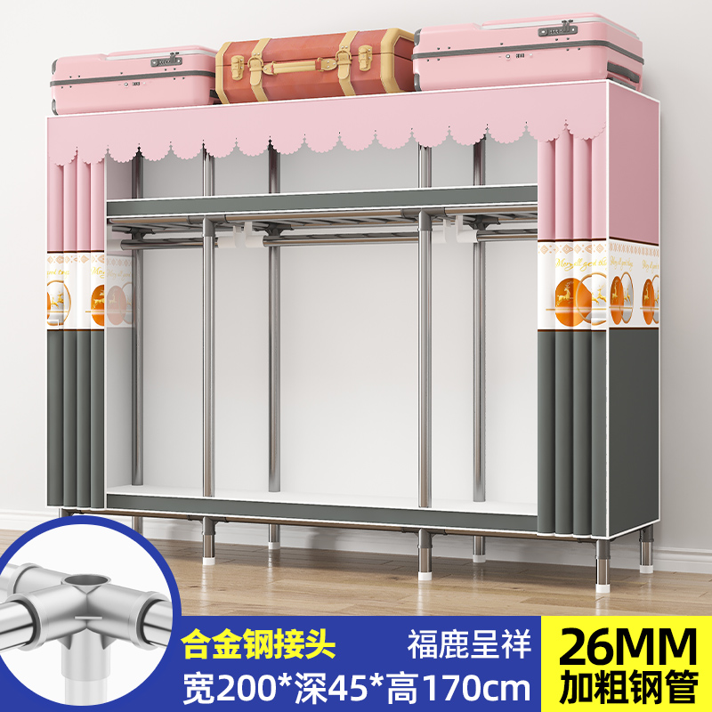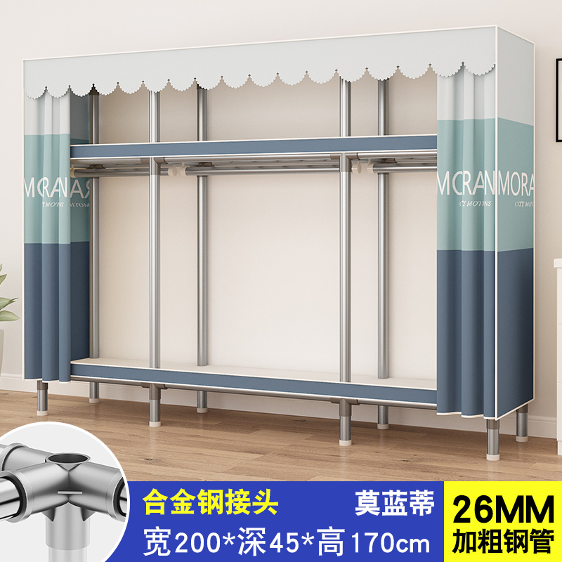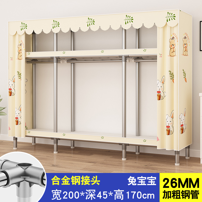 간단한 옷장 집 침실 옷감 전체 강철 프레임 두꺼운 임대 방 교수형 옷장 강관 강하고 내구성
