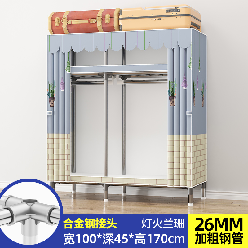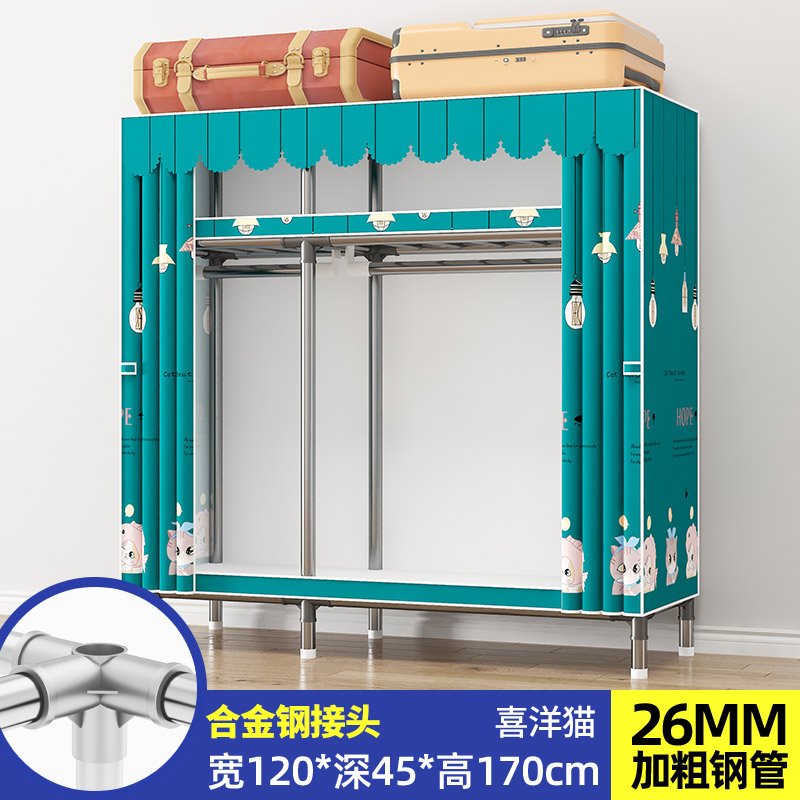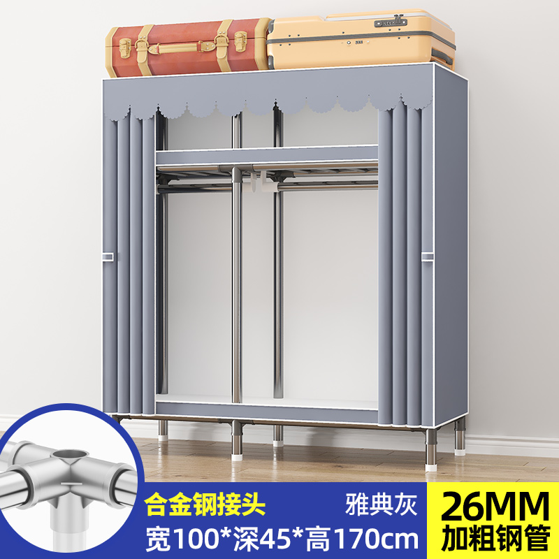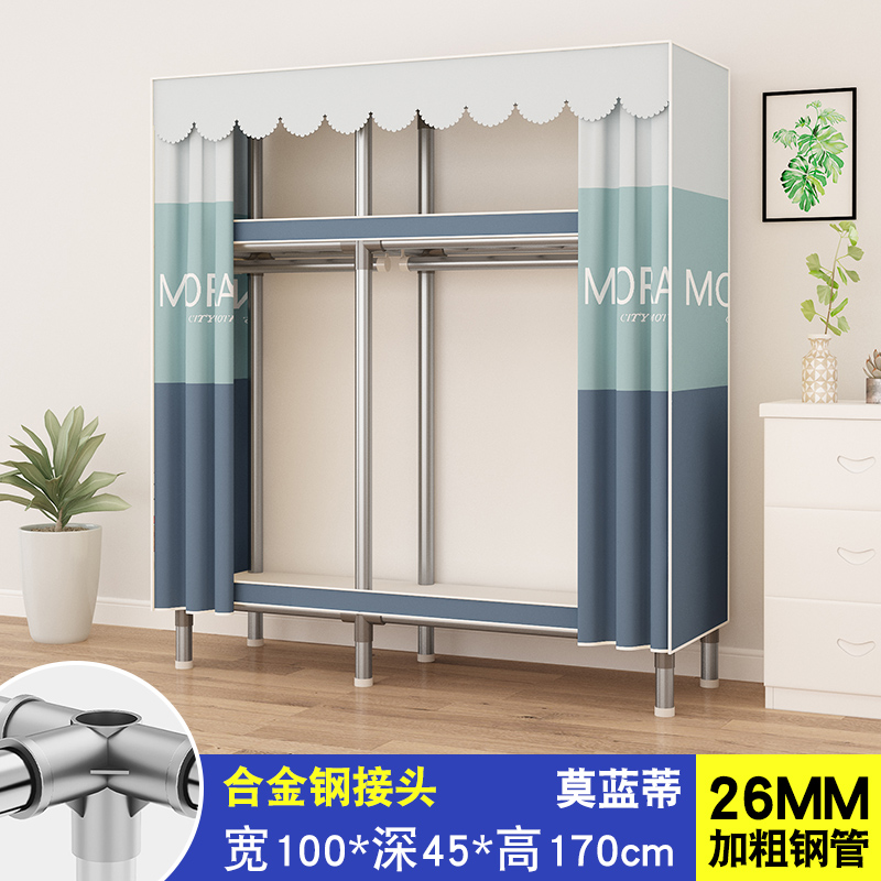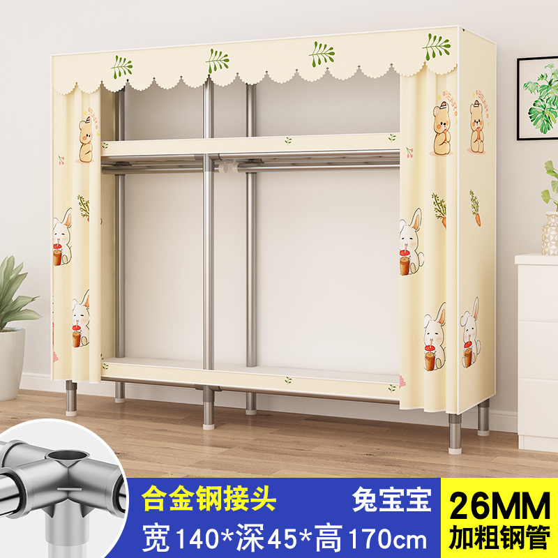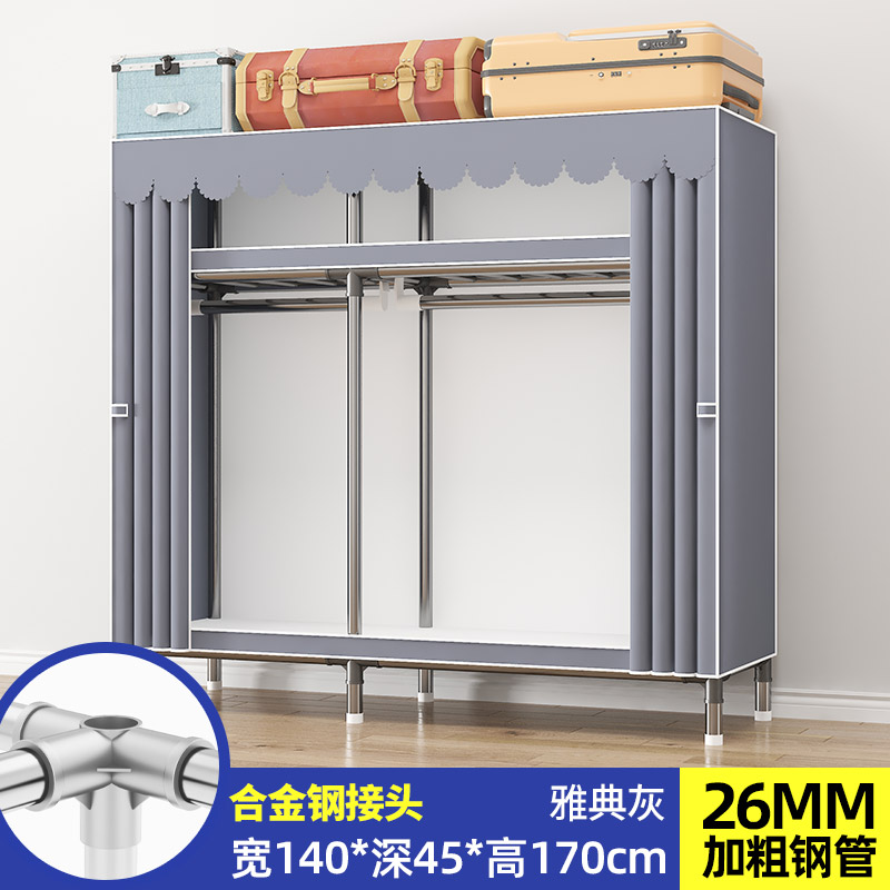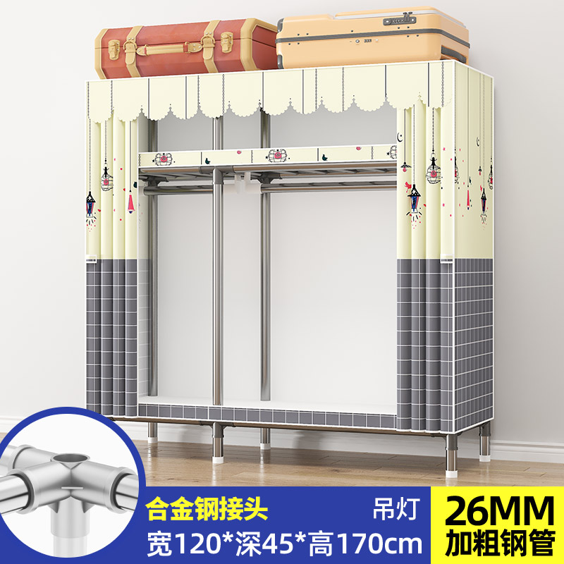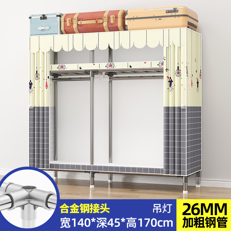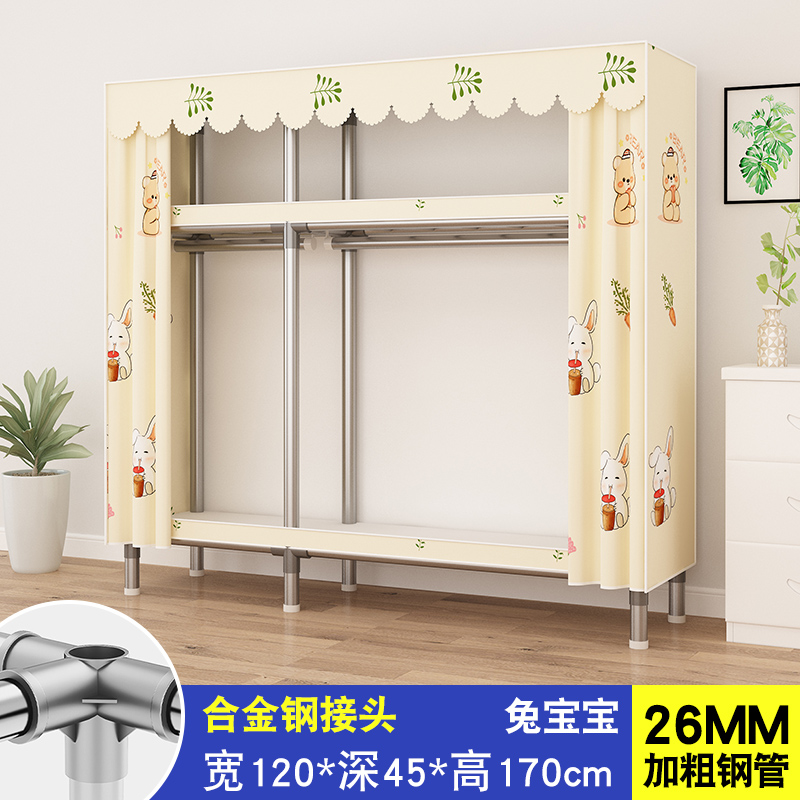 간단한 옷장 집 침실 옷감 전체 강철 프레임 두꺼운 임대 방 교수형 옷장 강관 강하고 내구성