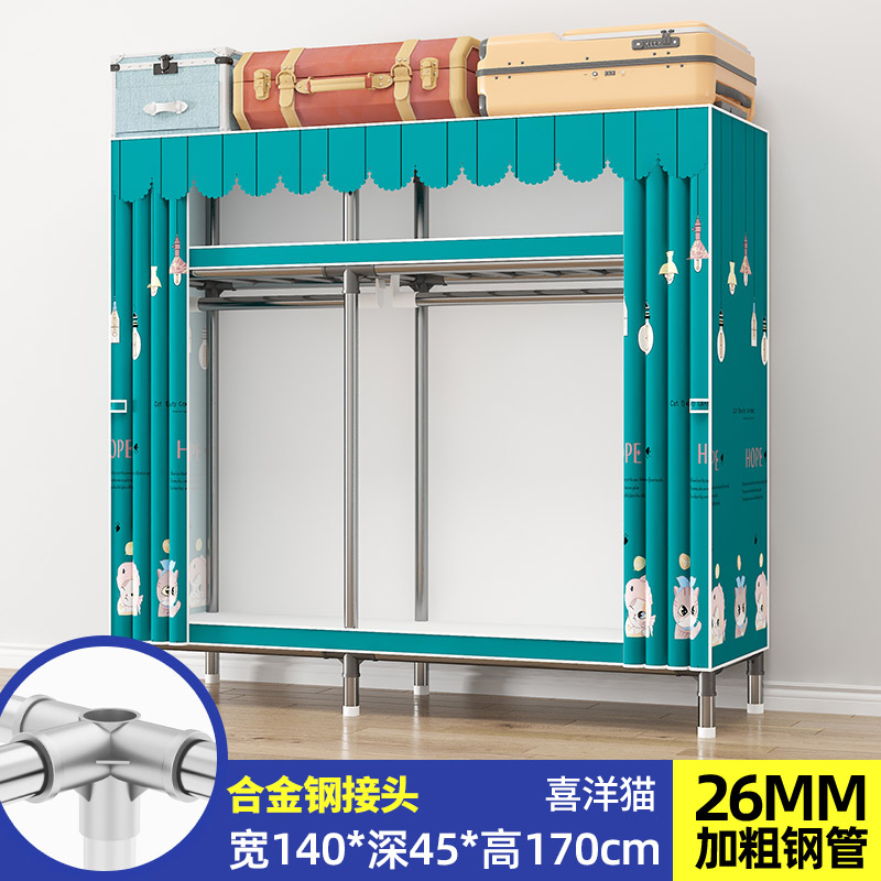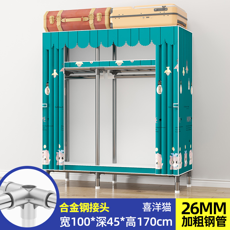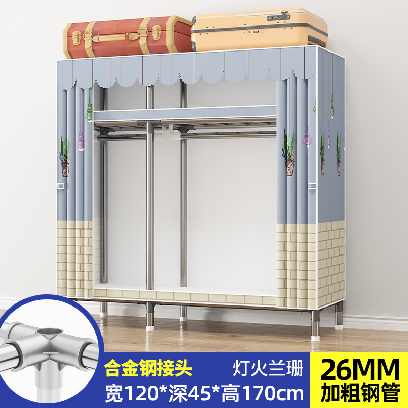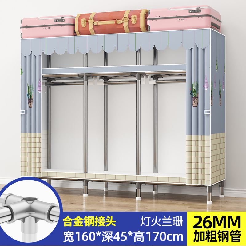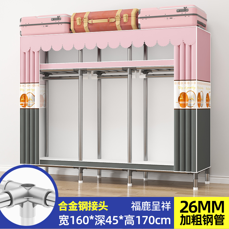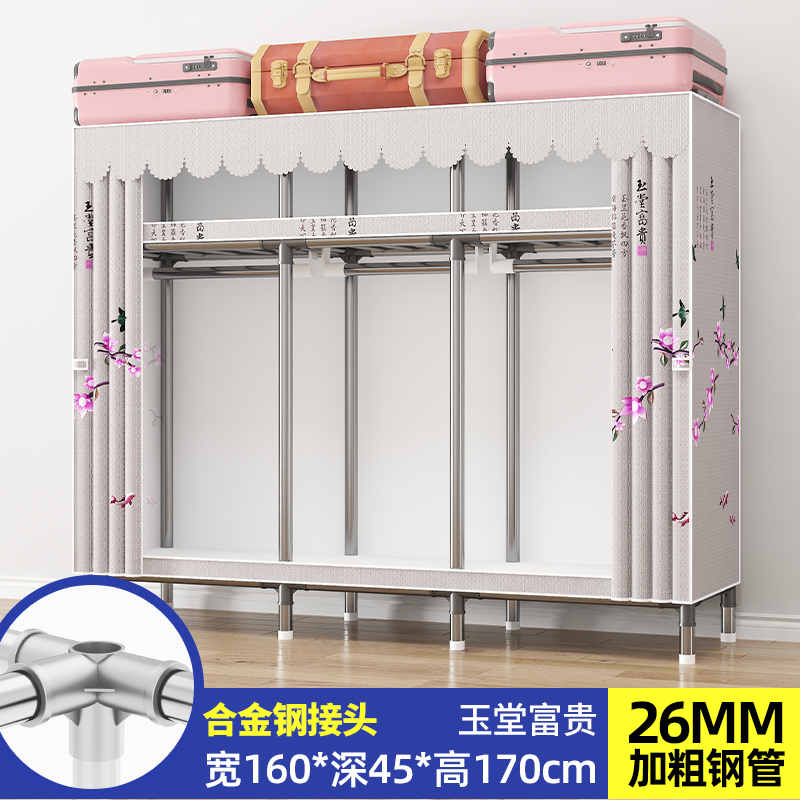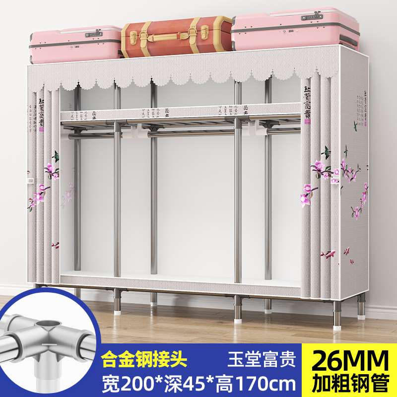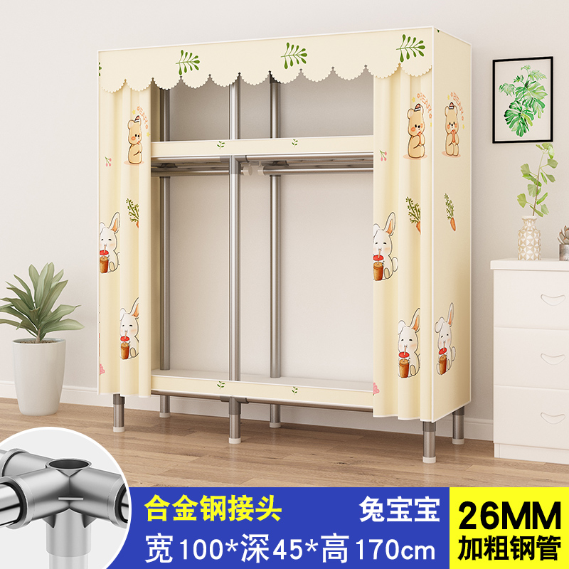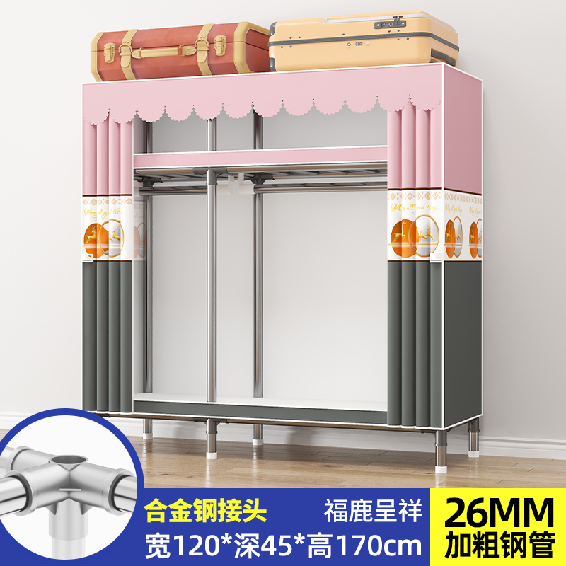 간단한 옷장 집 침실 옷감 전체 강철 프레임 두꺼운 임대 방 교수형 옷장 강관 강하고 내구성