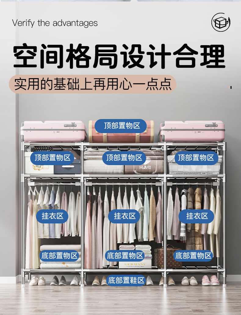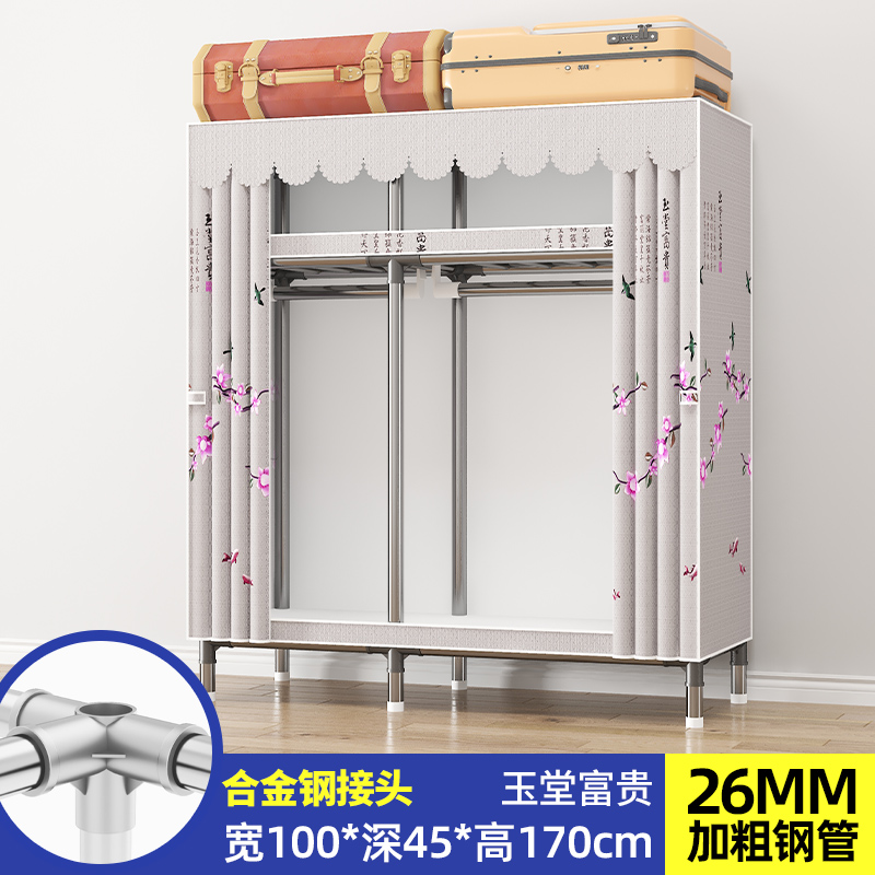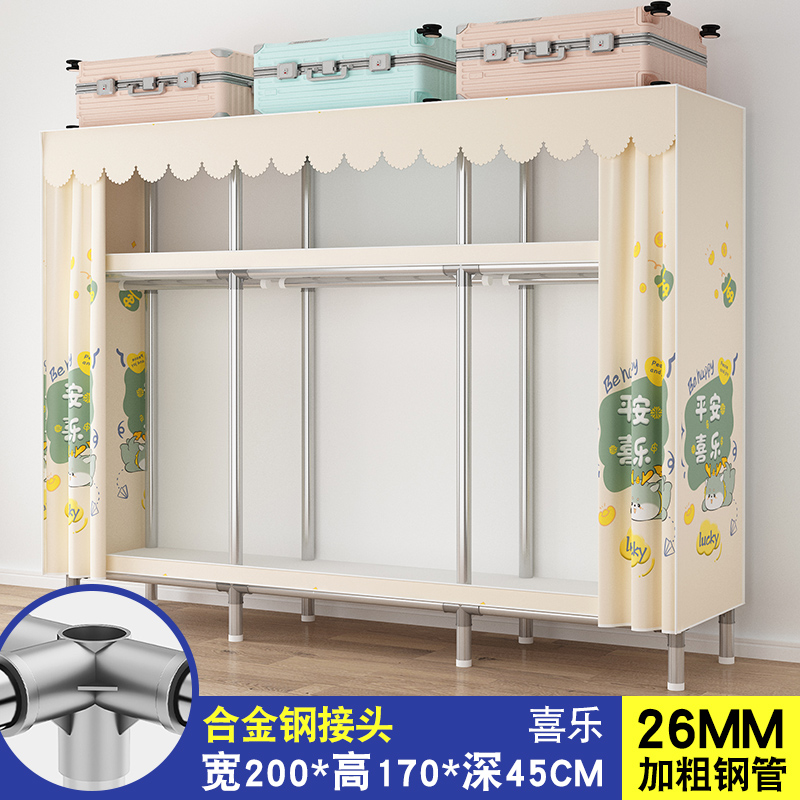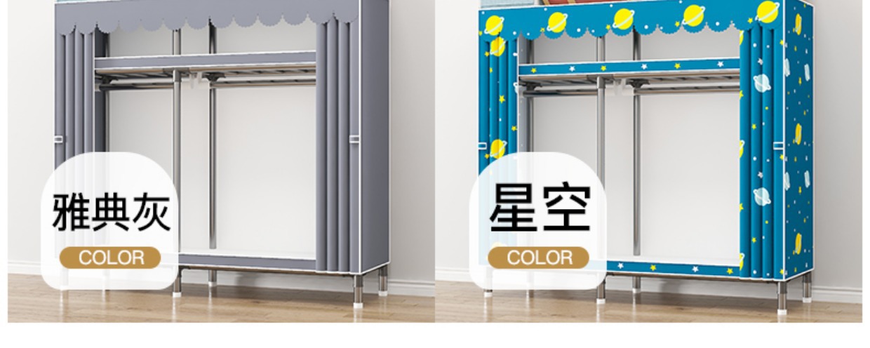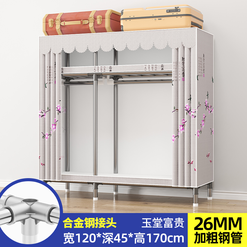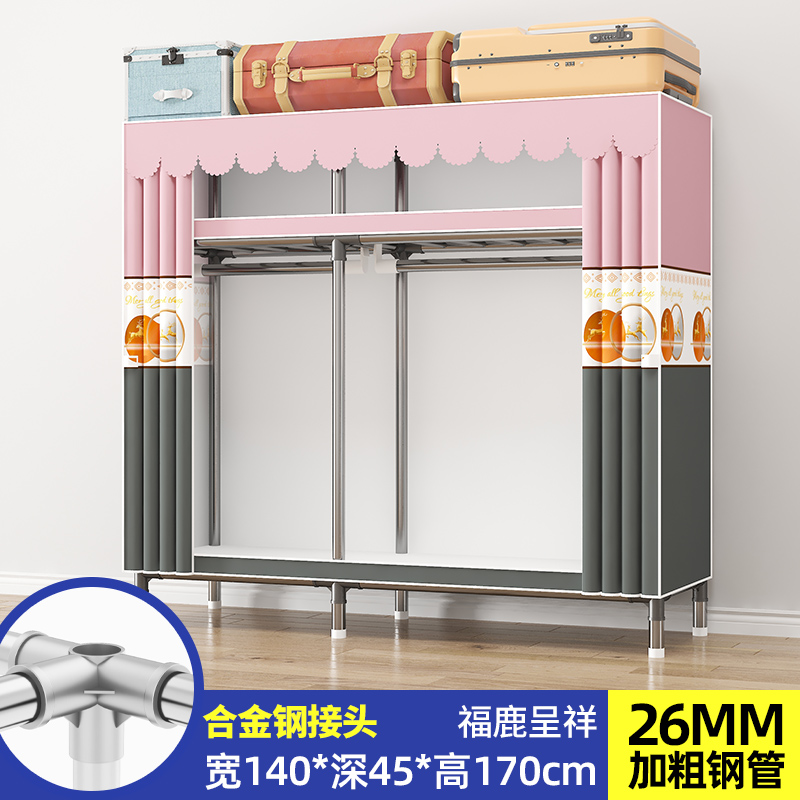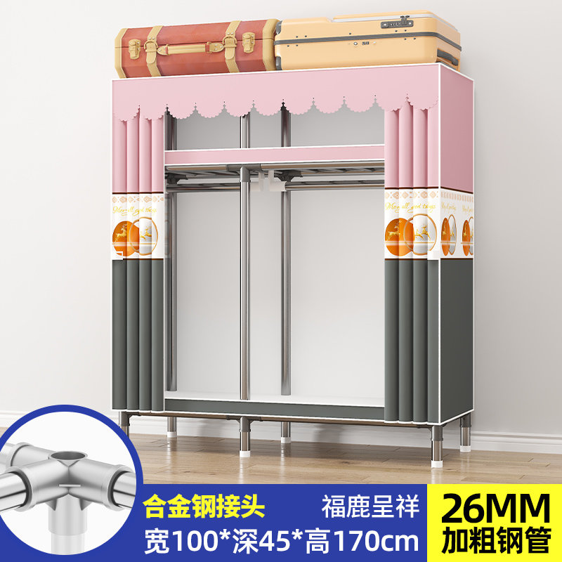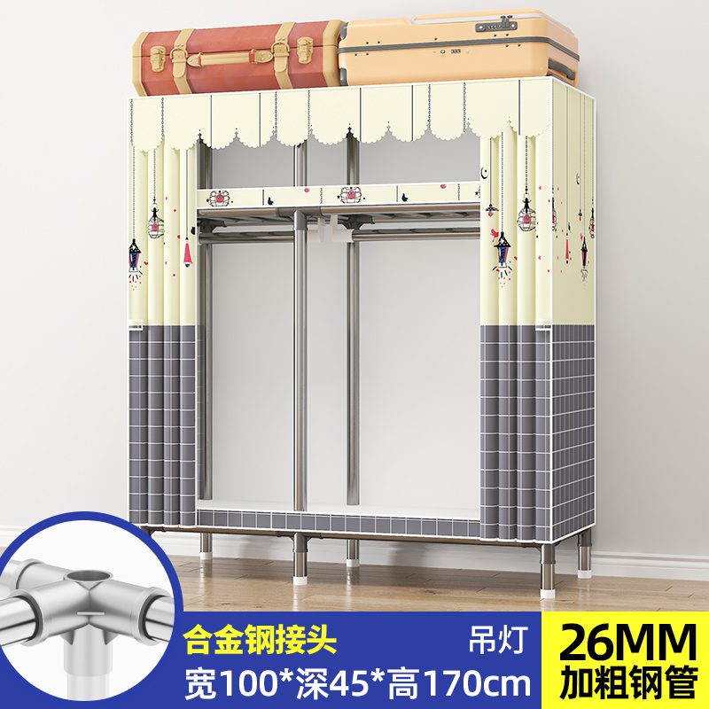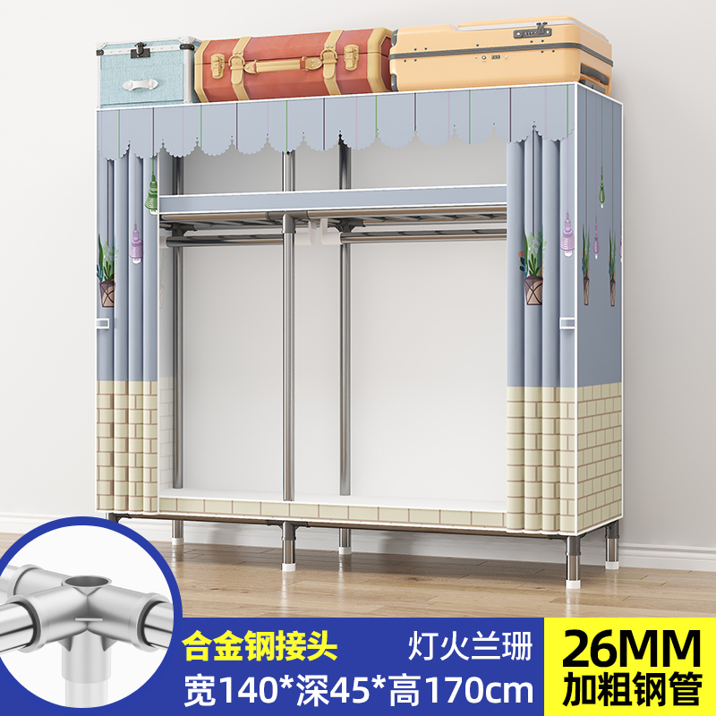 간단한 옷장 집 침실 옷감 전체 강철 프레임 두꺼운 임대 방 교수형 옷장 강관 강하고 내구성