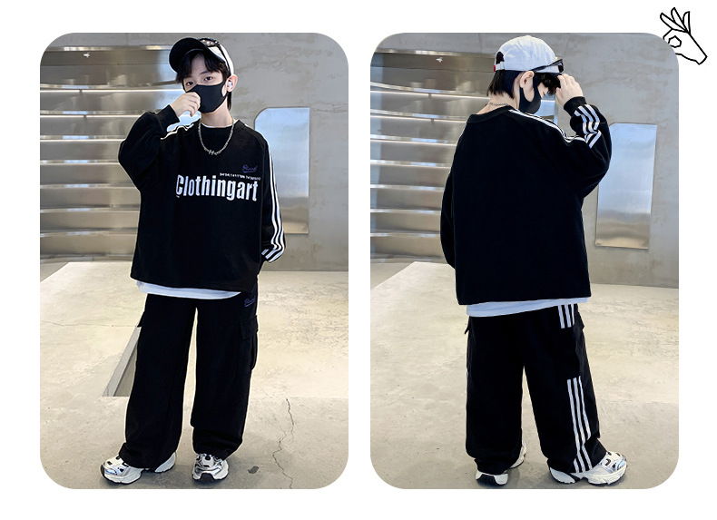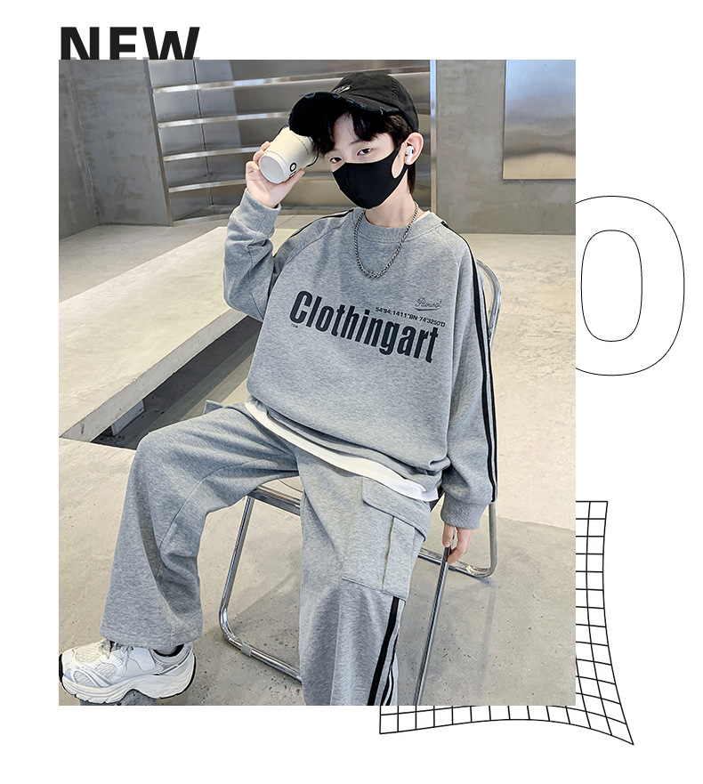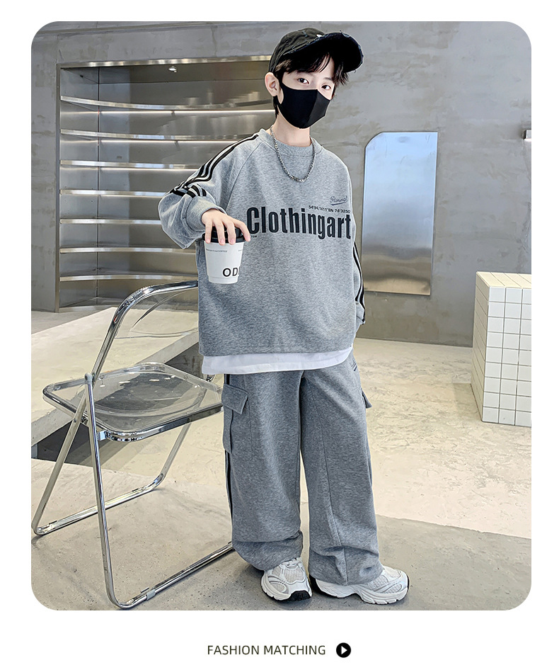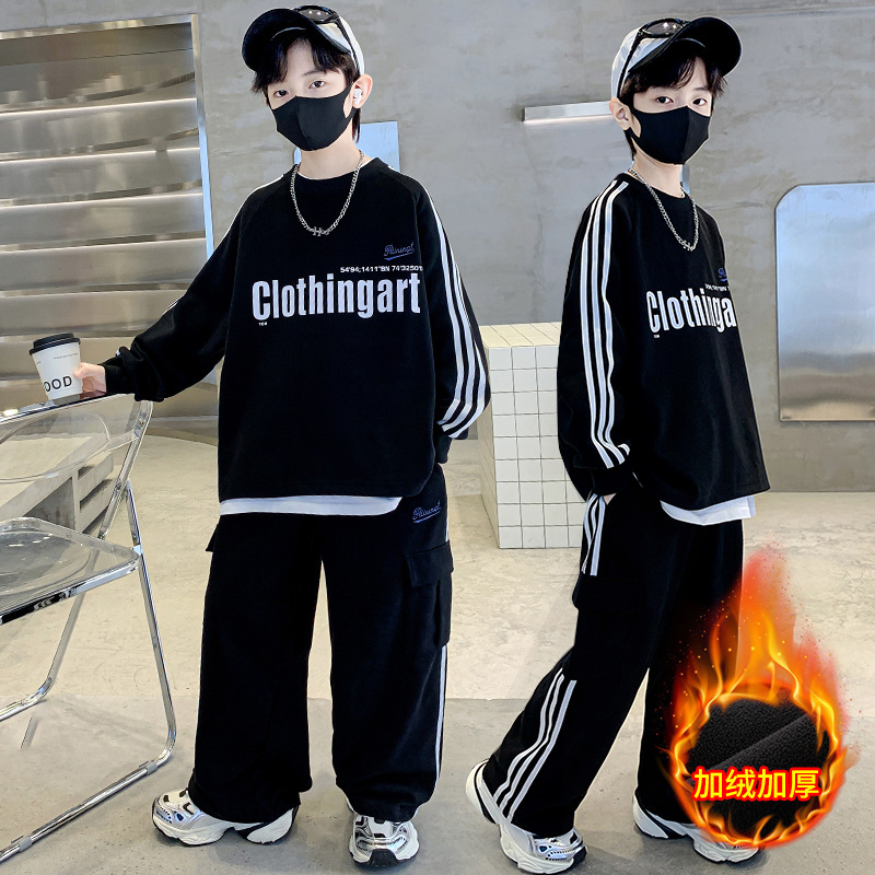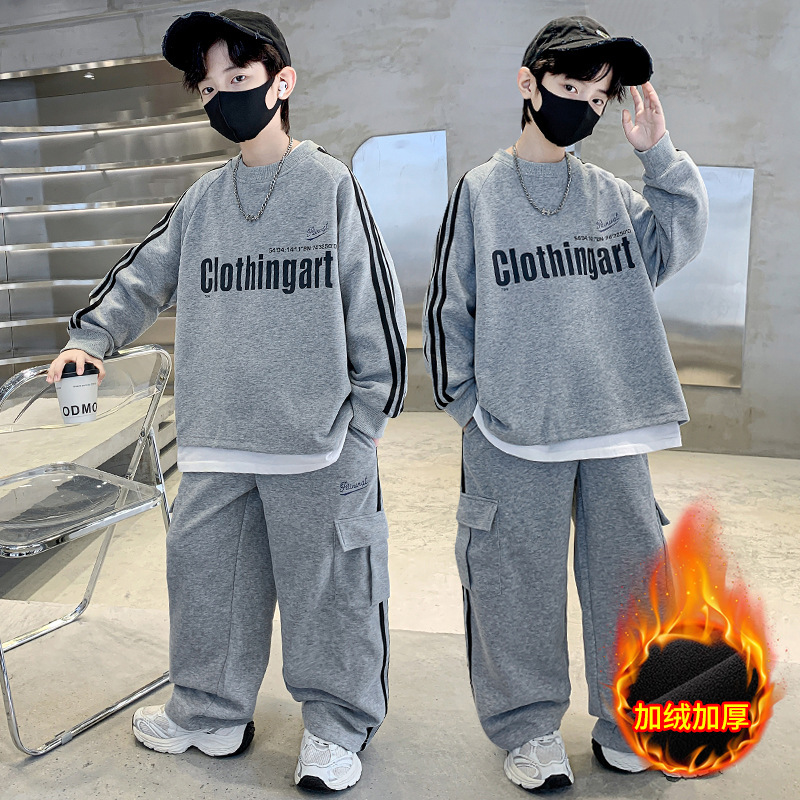 아동복 세트 겨울 2024 새로운 가을 기모 두꺼운 땀 투피스 소년 트렌디