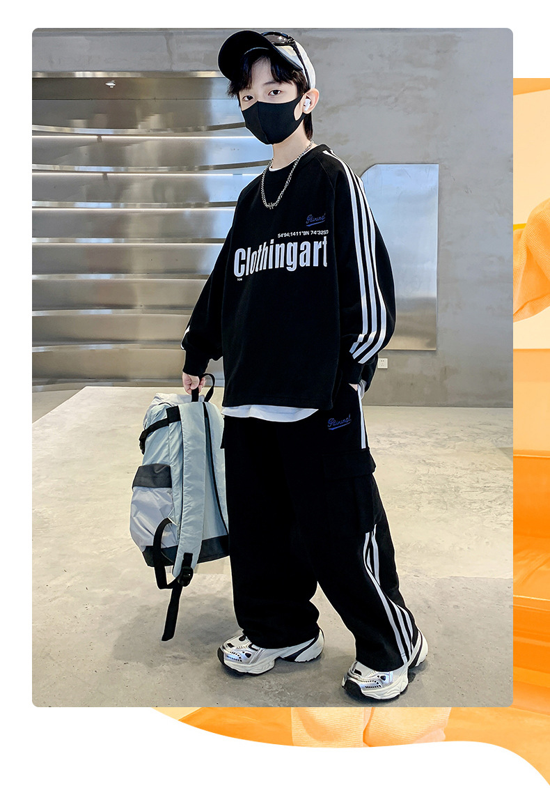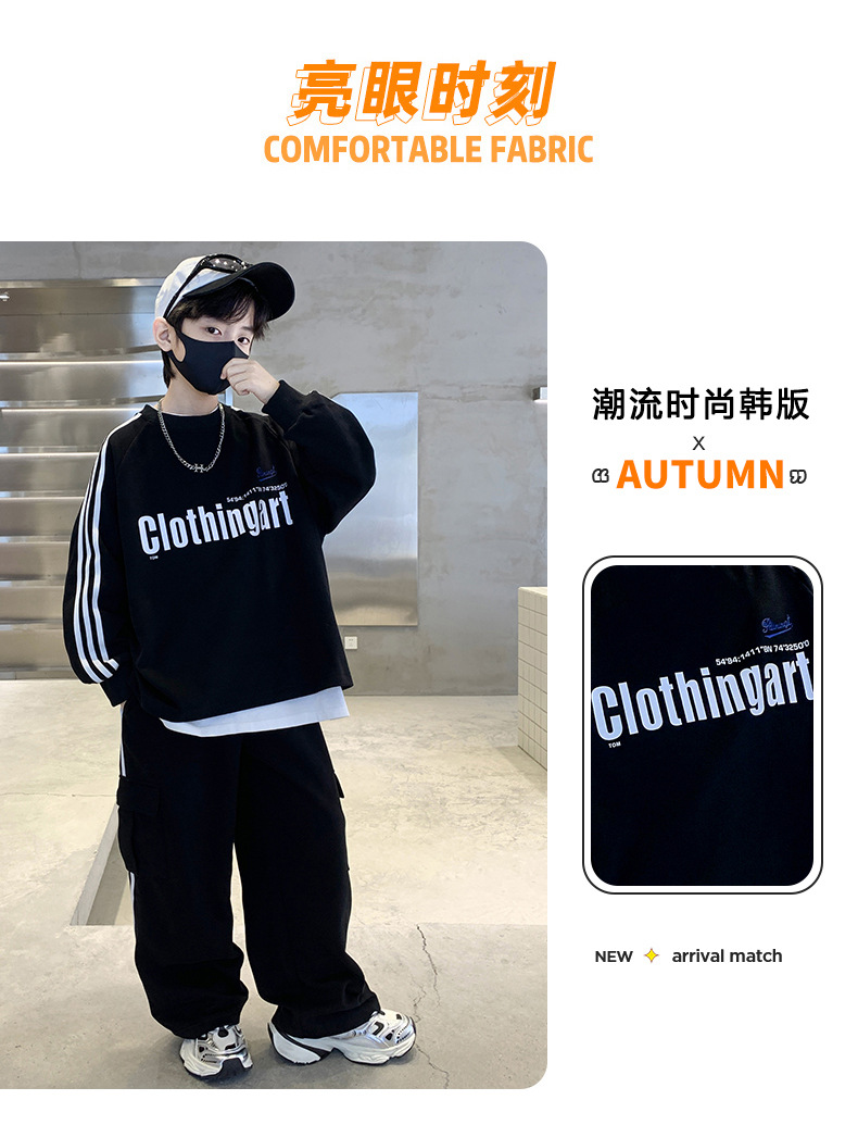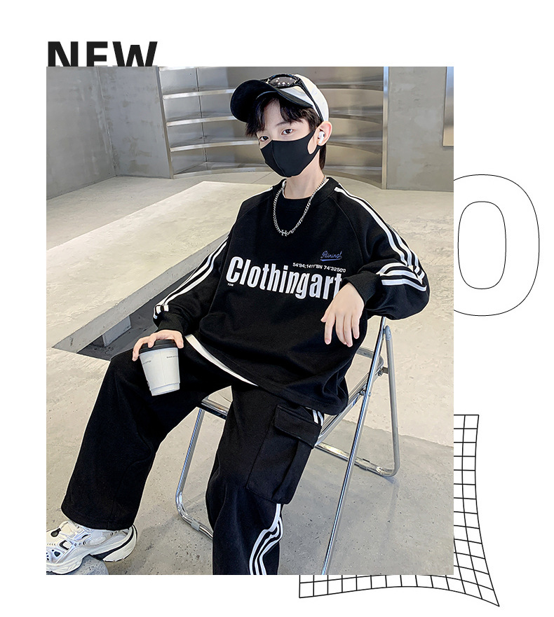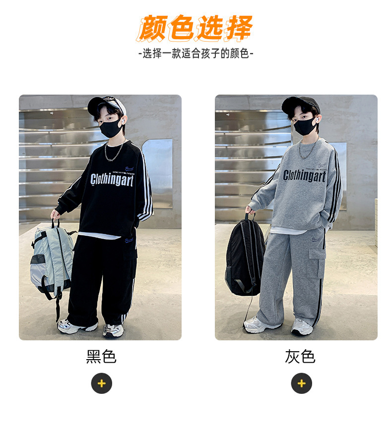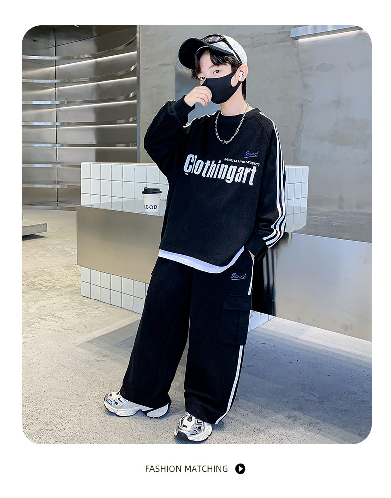 아동복 세트 겨울 2024 새로운 가을 기모 두꺼운 땀 투피스 소년 트렌디
