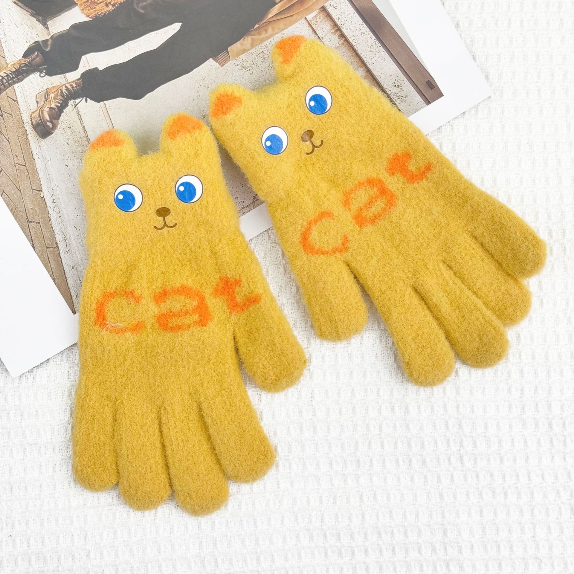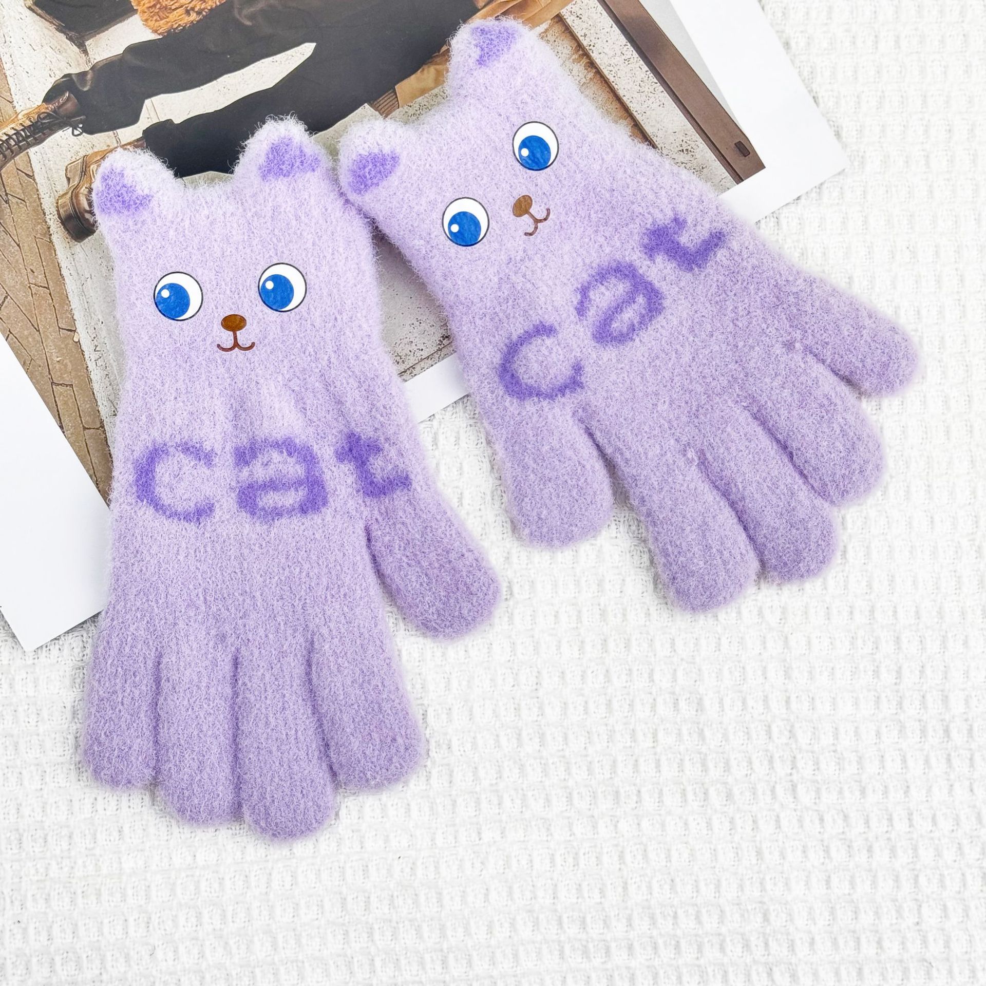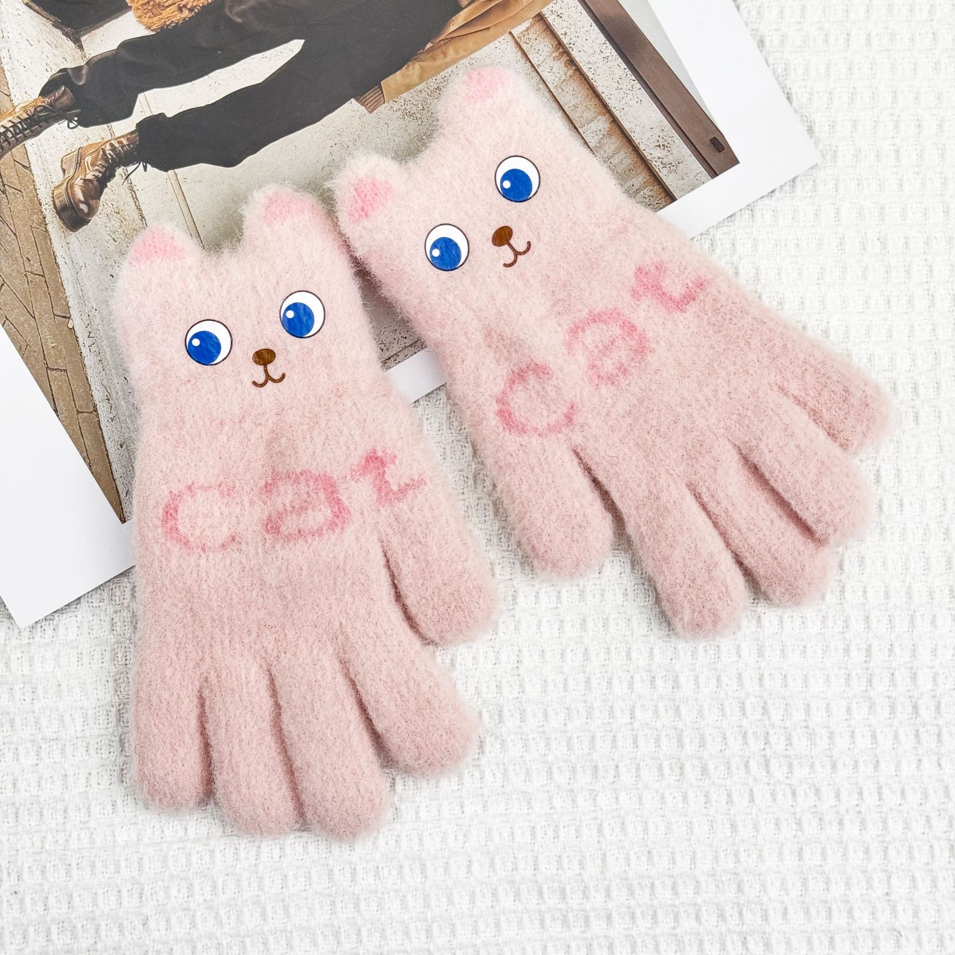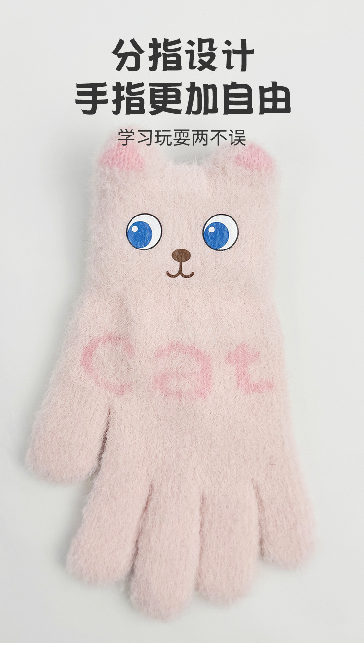 새로운 스타일의 플러시 어린이 장갑, 귀여운 고양이 귀가 달린 도파민 한국 스타일 여자아이용 다섯 손가락 따뜻한 야외용 고양이 귀 디자인