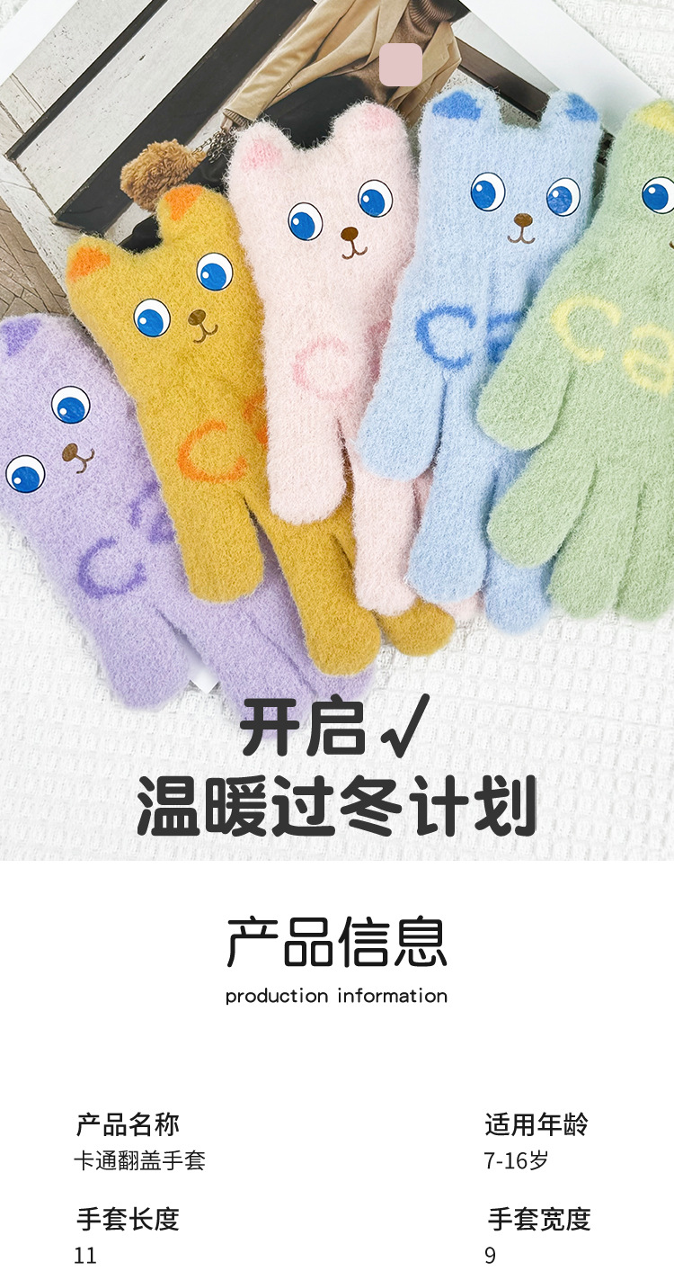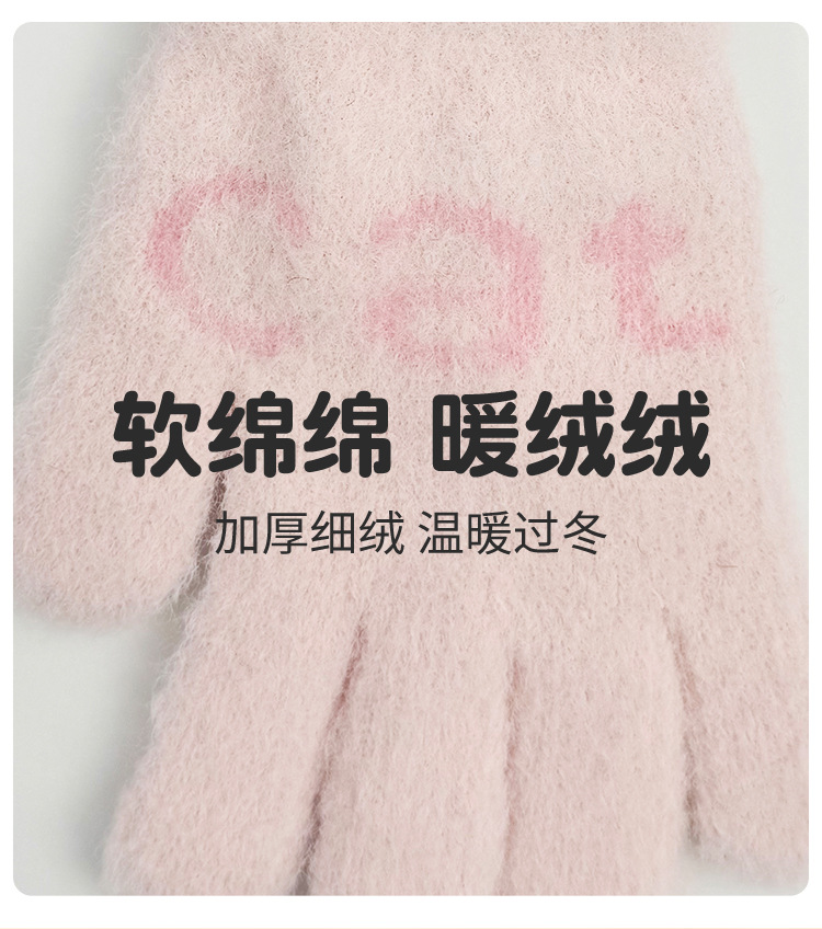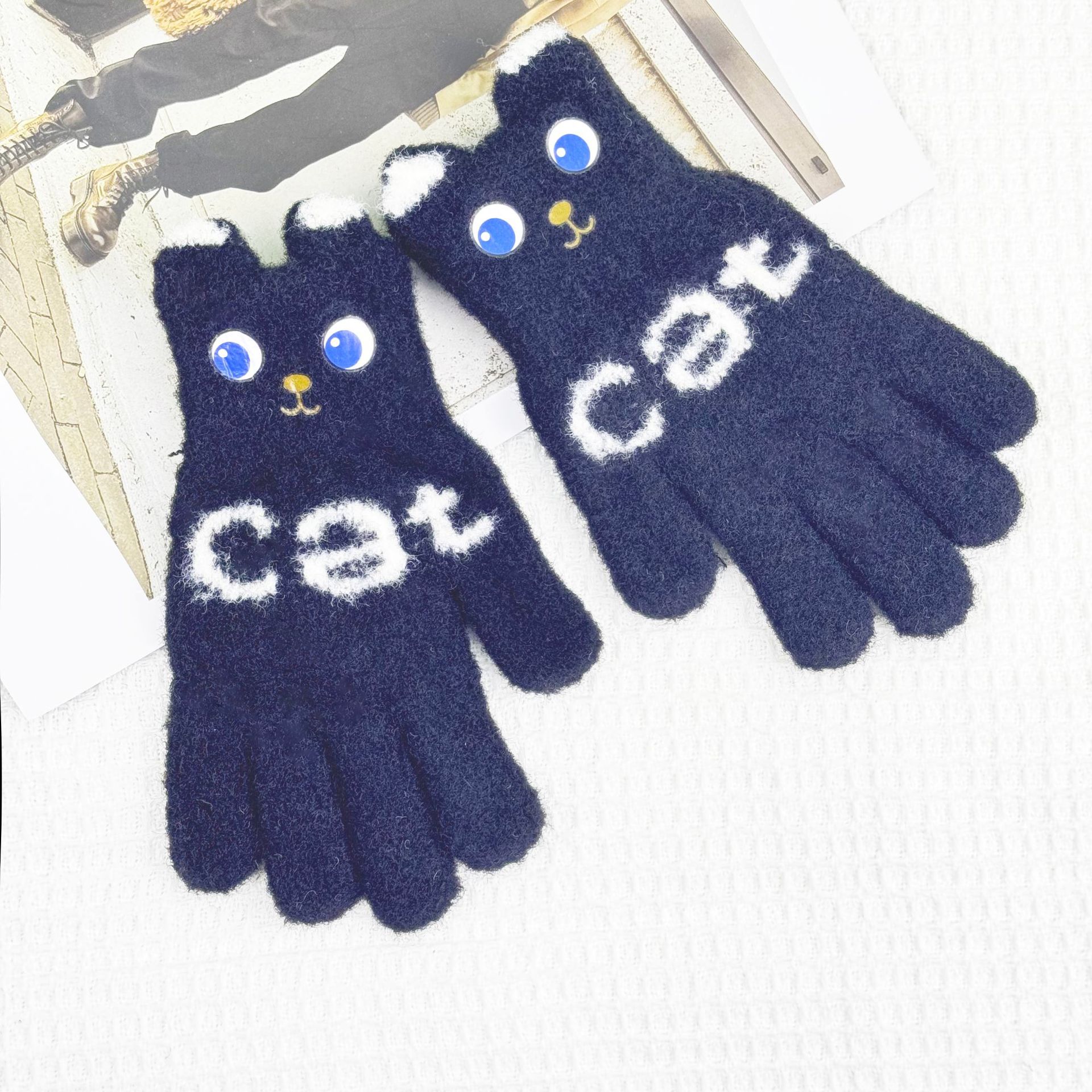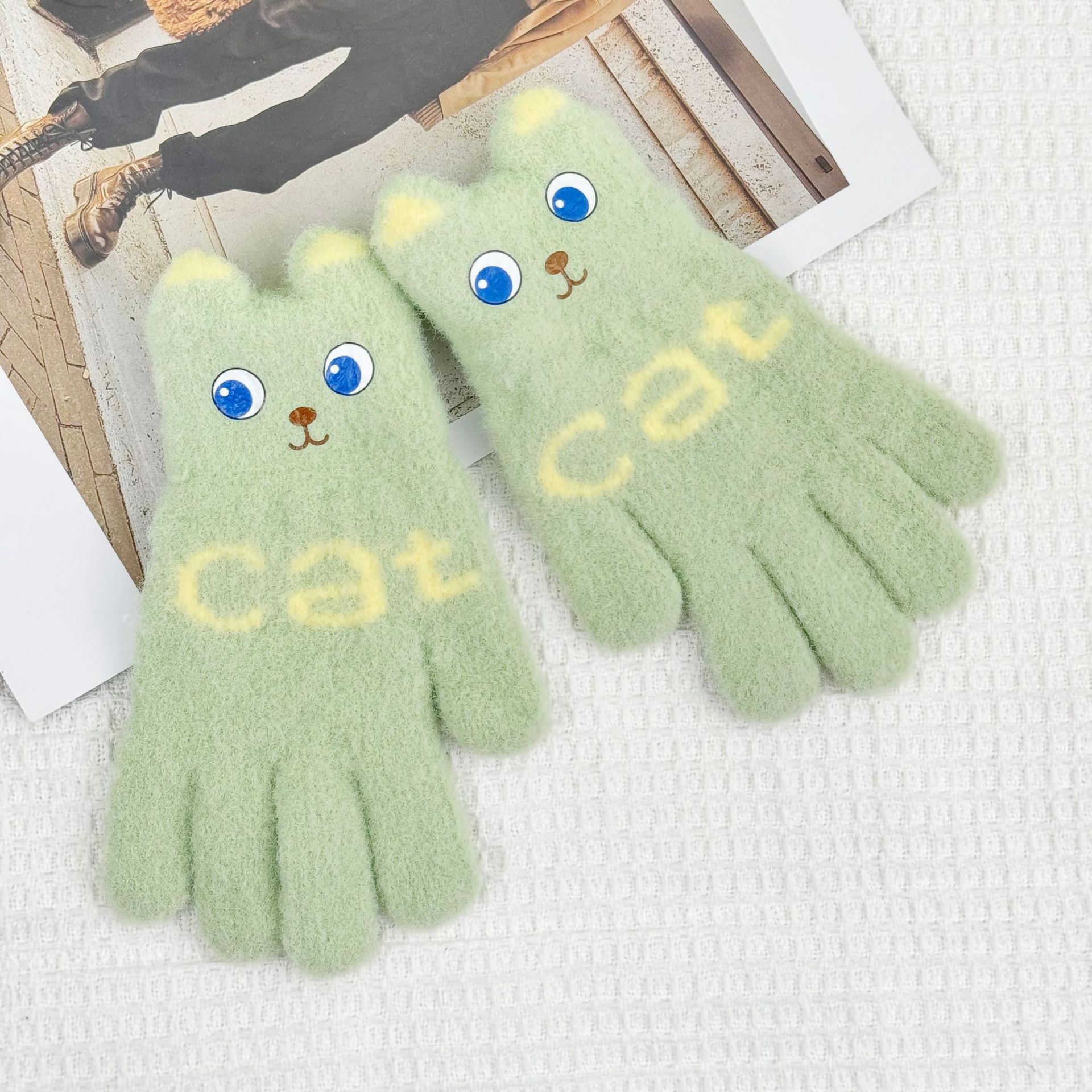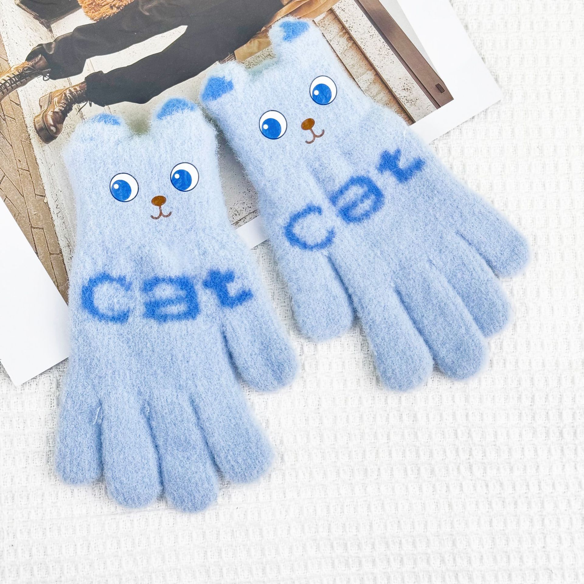 새로운 스타일의 플러시 어린이 장갑, 귀여운 고양이 귀가 달린 도파민 한국 스타일 여자아이용 다섯 손가락 따뜻한 야외용 고양이 귀 디자인