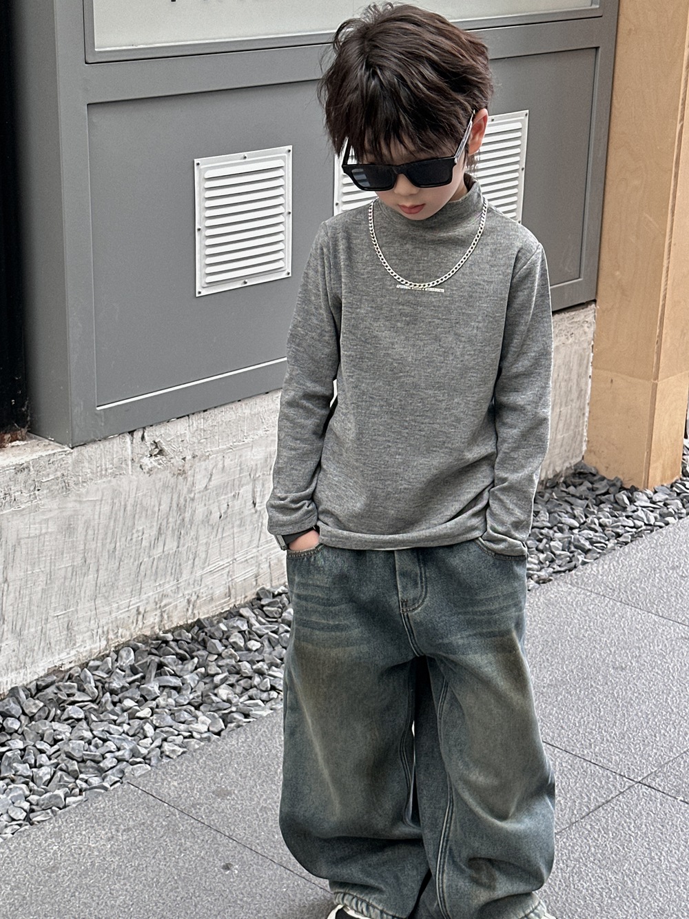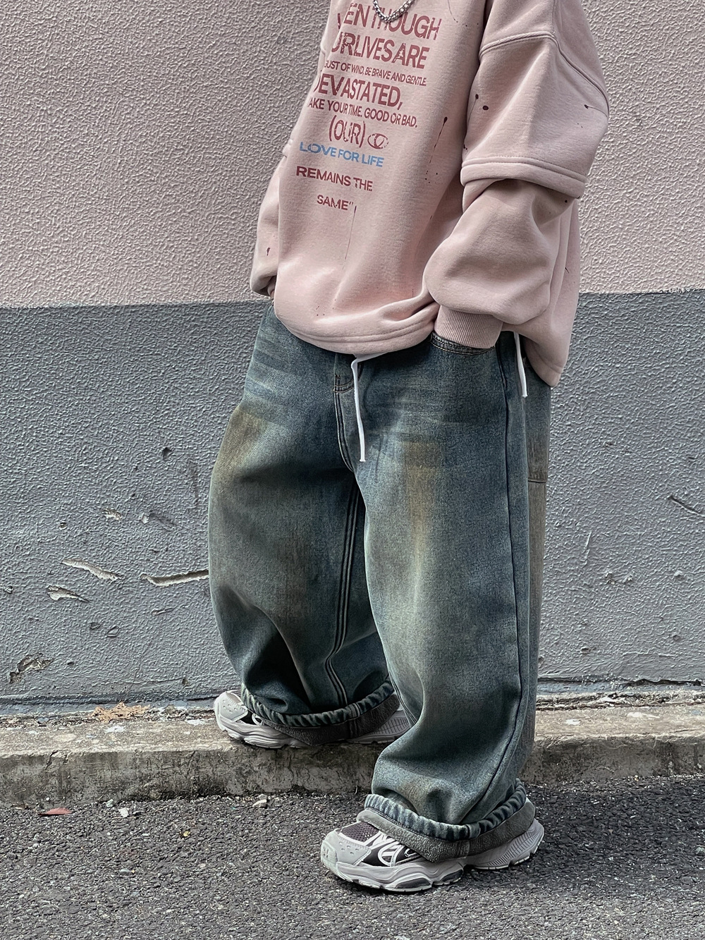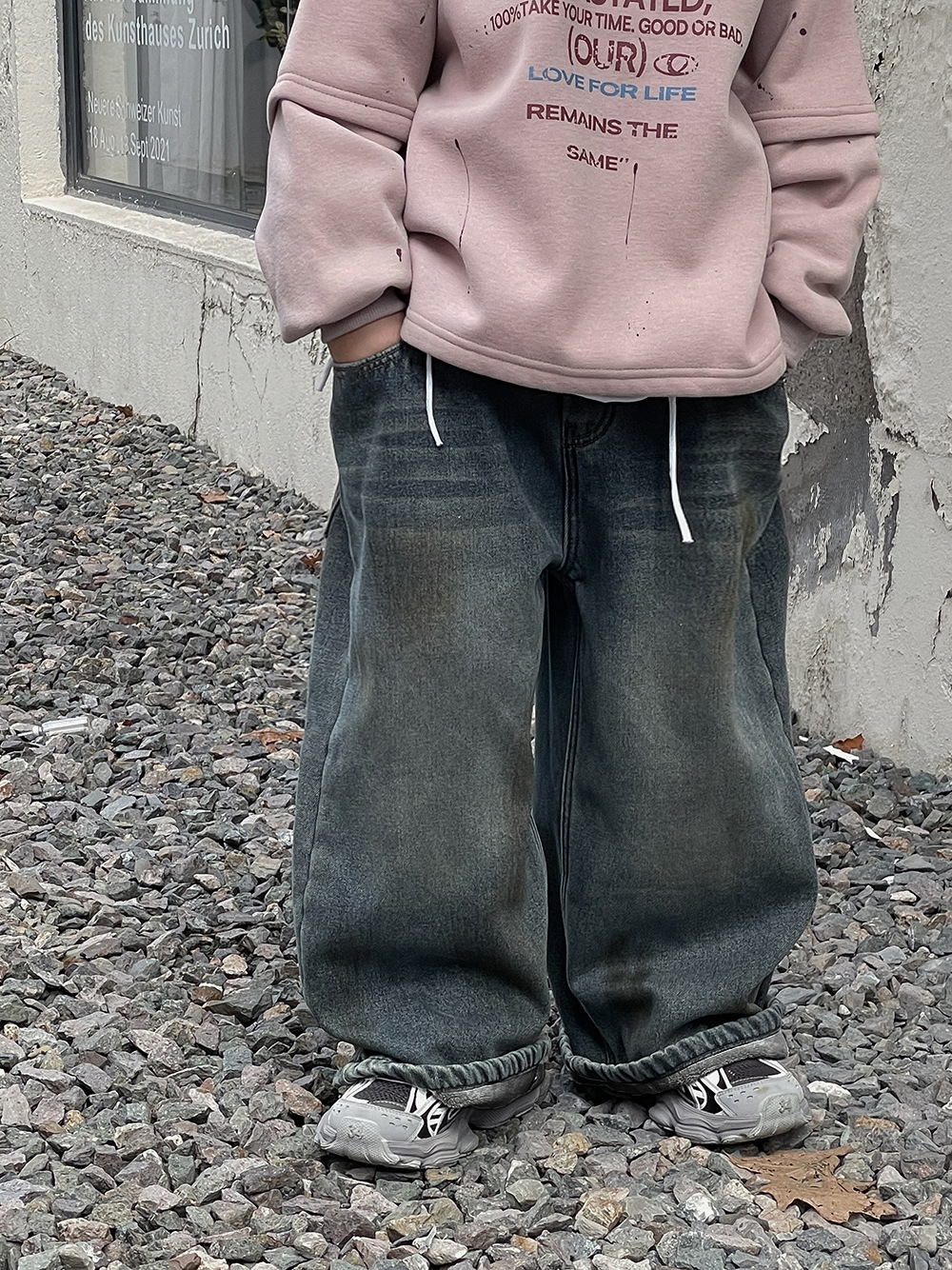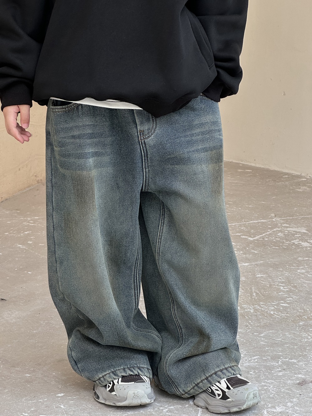 Xiner 2024 Winter New Boys 빈티지 옐로우 머드 올드 기모 청바지 원피스 벨벳 루즈 스트레이트 와이드 레그