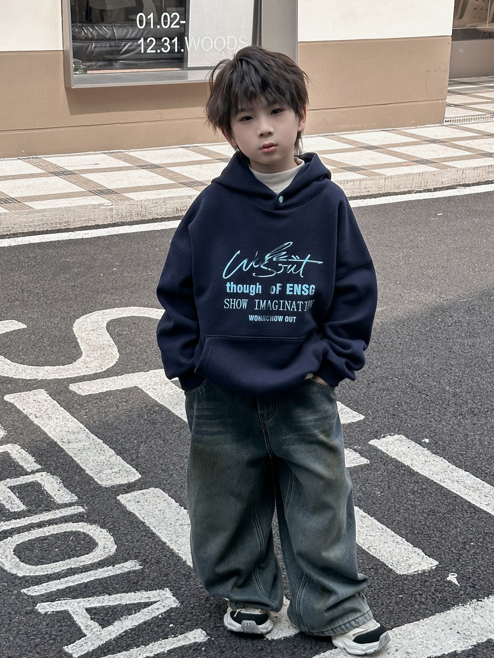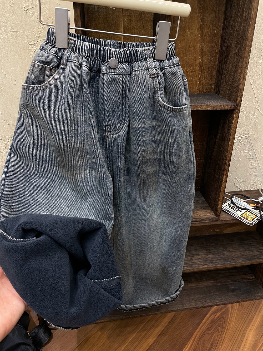 Xiner 2024 Winter New Boys 빈티지 옐로우 머드 올드 기모 청바지 원피스 벨벳 루즈 스트레이트 와이드 레그스토어 가기