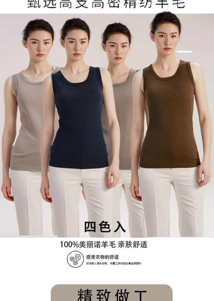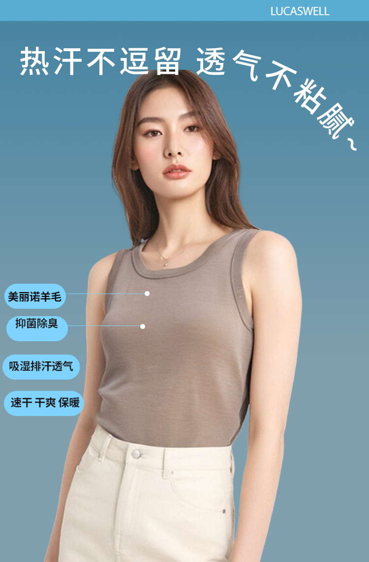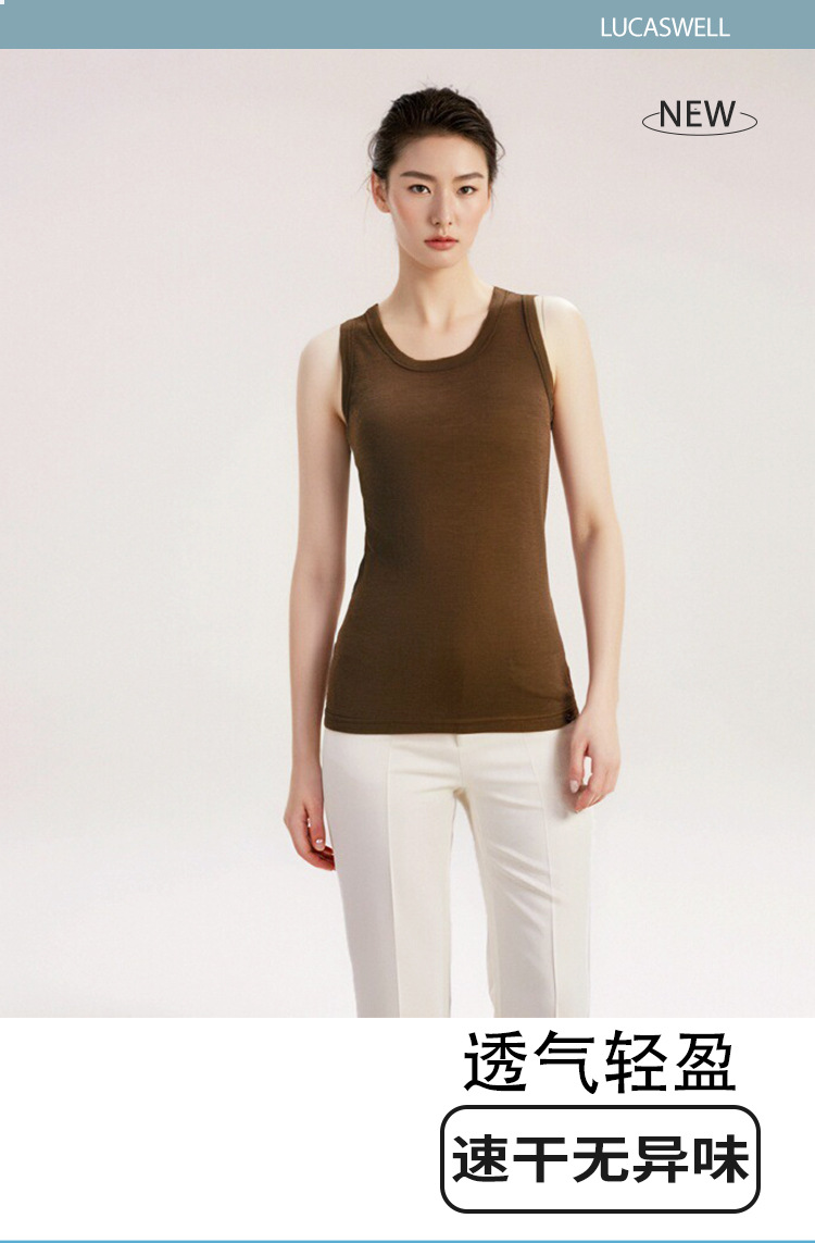 메리노 울 여성용 조끼 내부 빠른 건조 조끼 민소매 티셔츠 스포츠 캐주얼 슬림 핏 이너 슬링