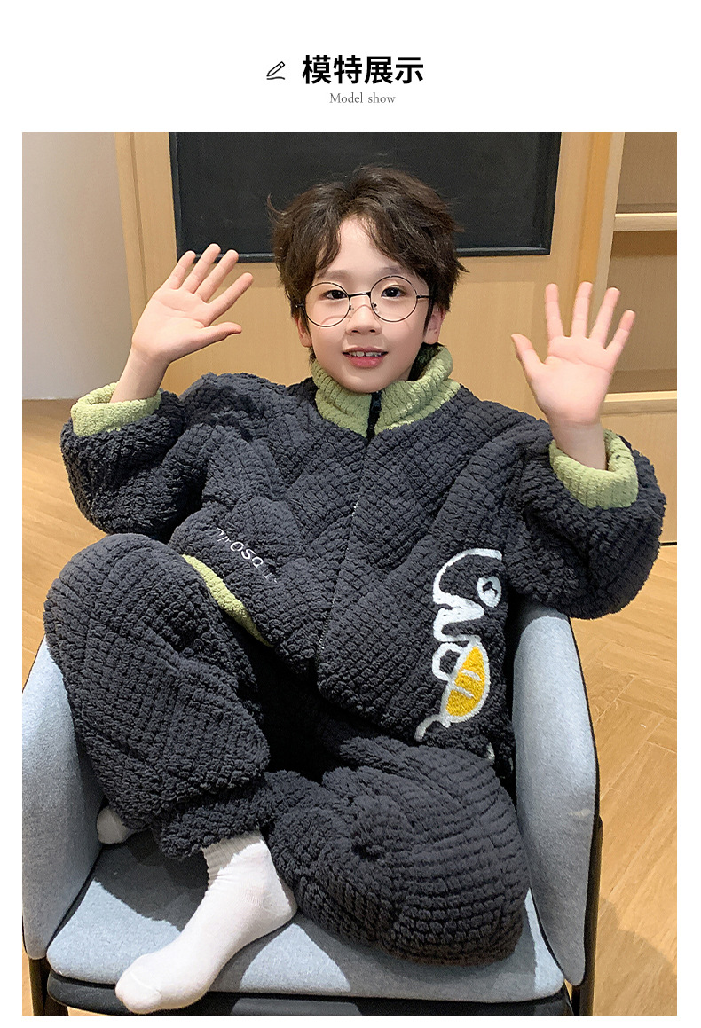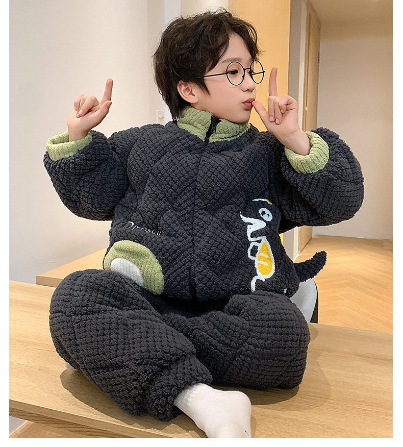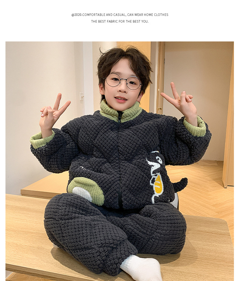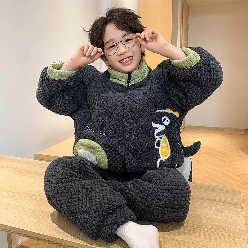 어린이 잠옷 산호 양털 겨울면 3 층 두꺼운 따뜻한 외부가 소년의 플란넬 홈 옷 세트 입고스토어 가기