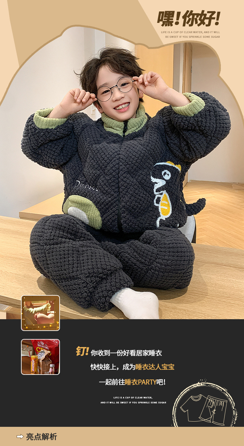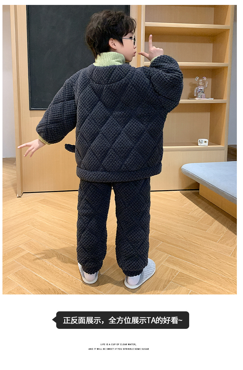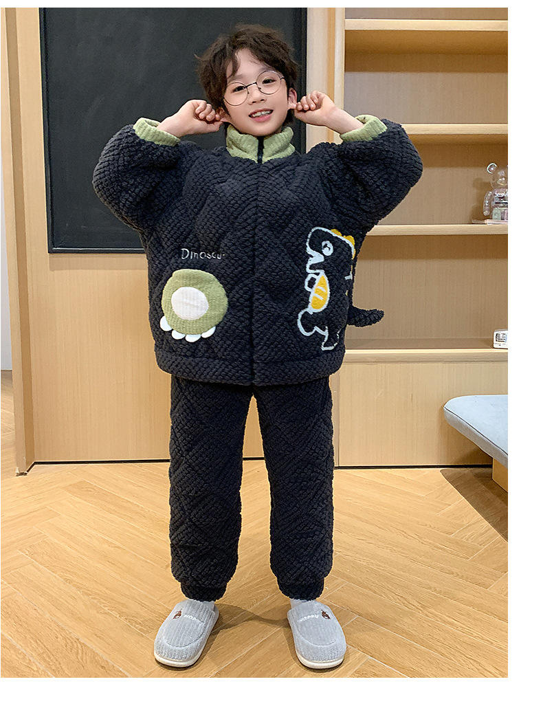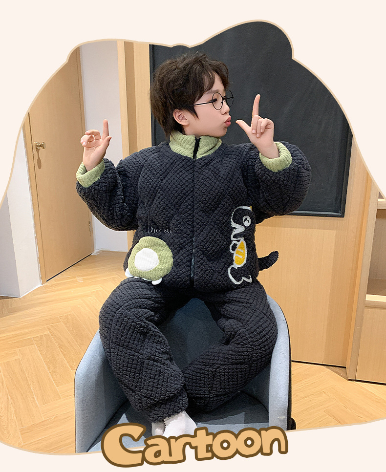 어린이 잠옷 산호 양털 겨울면 3 층 두꺼운 따뜻한 외부가 소년의 플란넬 홈 옷 세트 입고스토어 가기