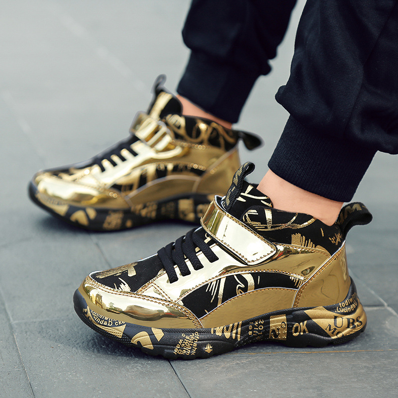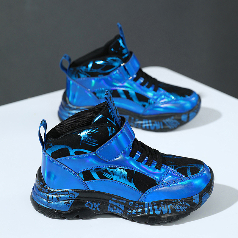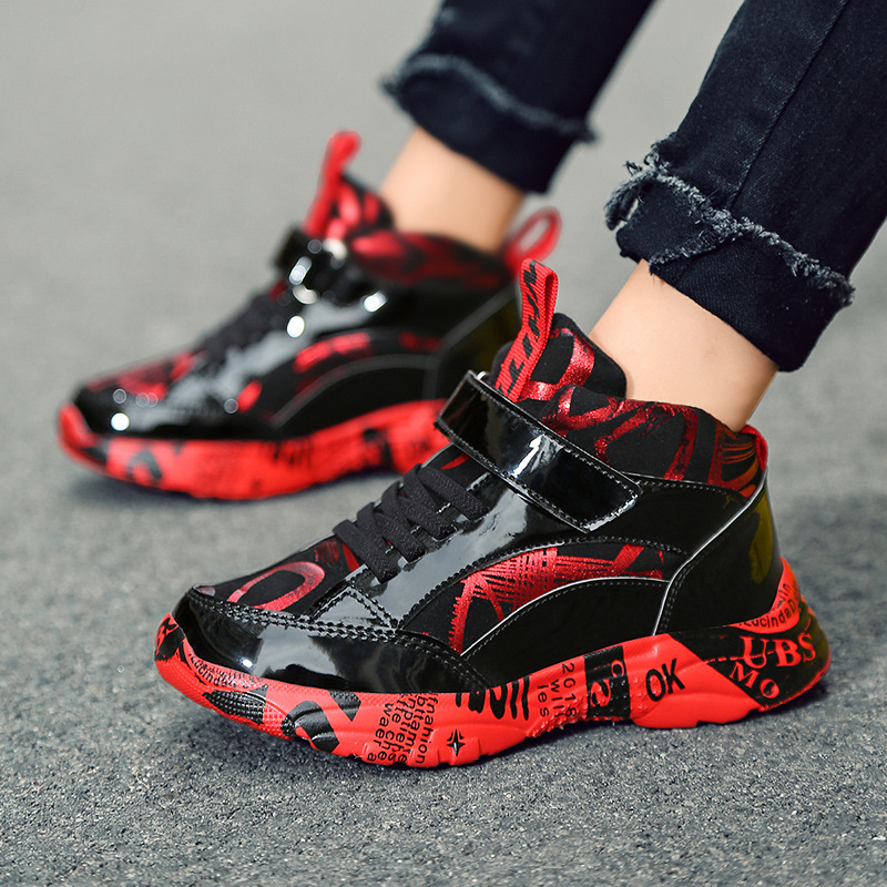 소년 신발 소년 하이 탑 스포츠 신발 6-12 년 가을 및 겨울 새로운 가죽 면 어린이 운동화 착용 방지