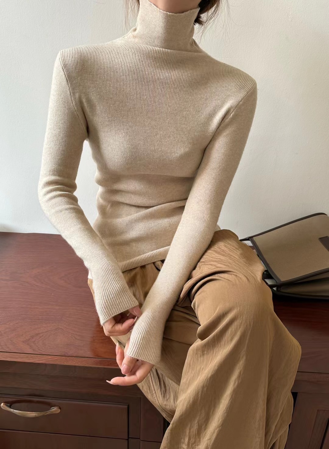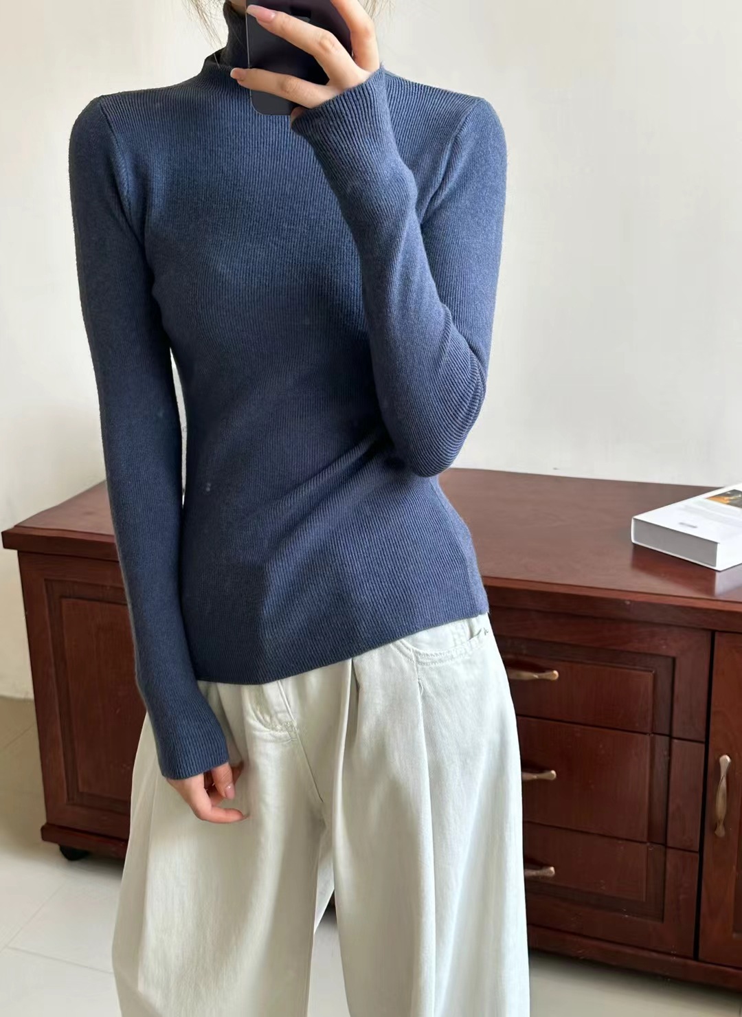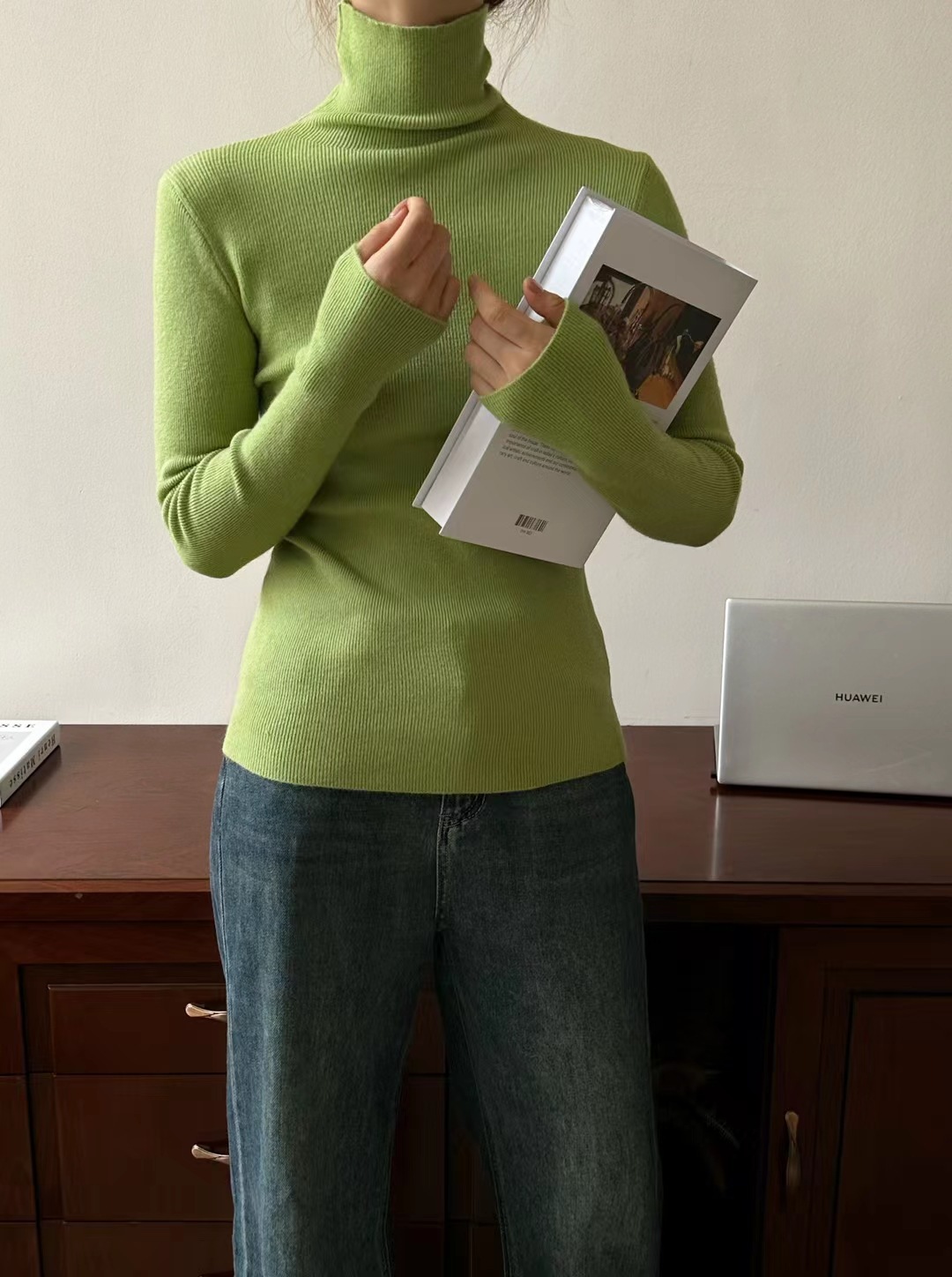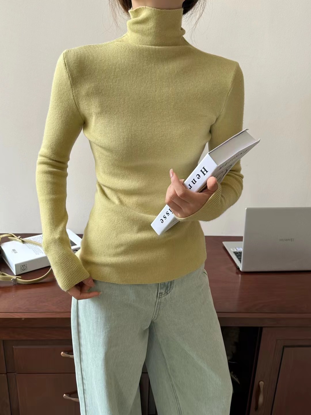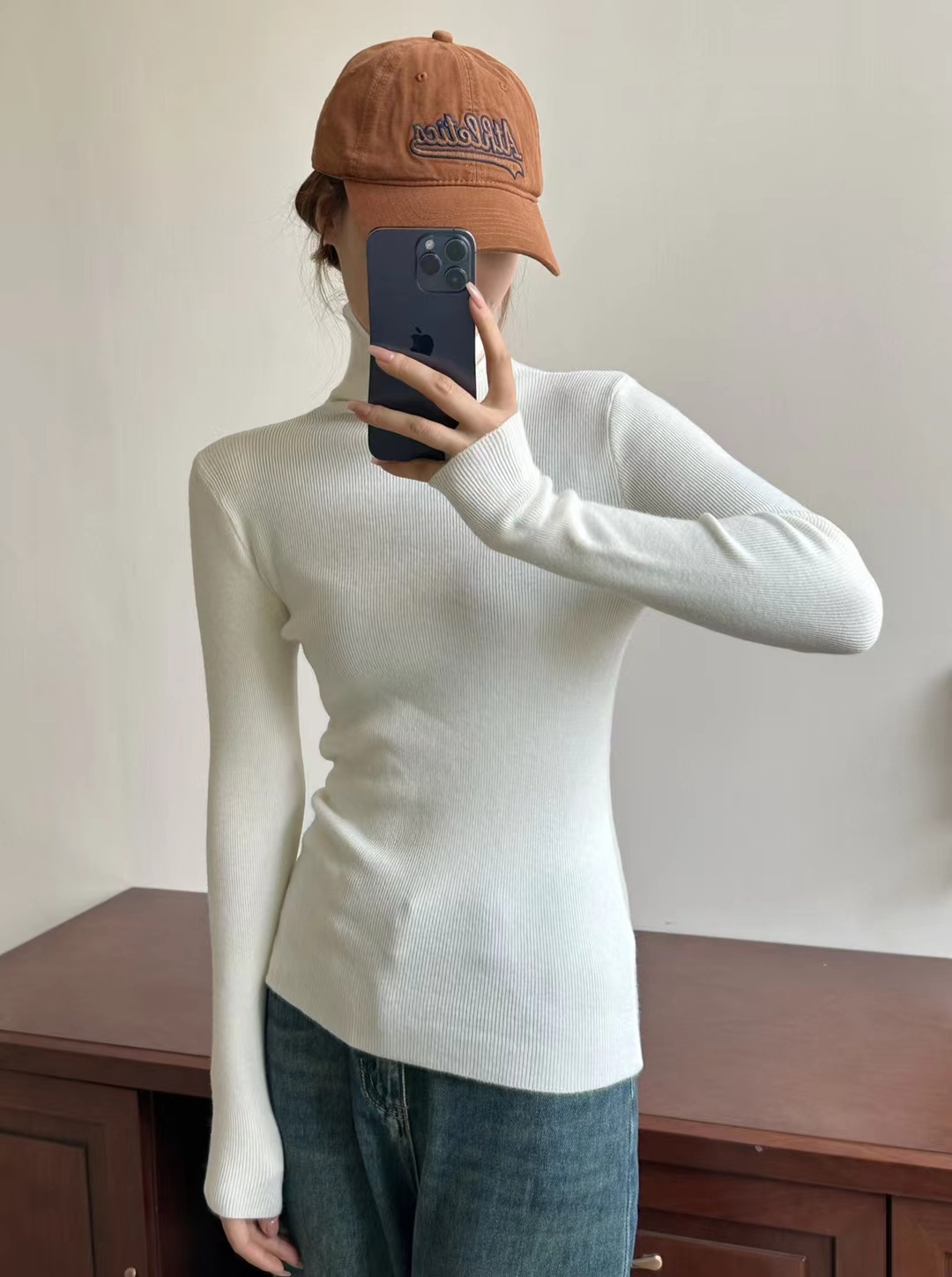 하이넥 니트 이너웨어 2025 가을 겨울 신상 단색 슬림핏 스타일리시한 풀오버 여성용스토어 가기