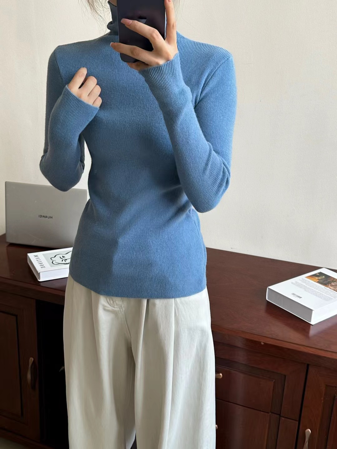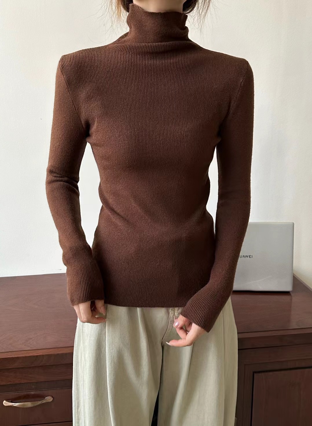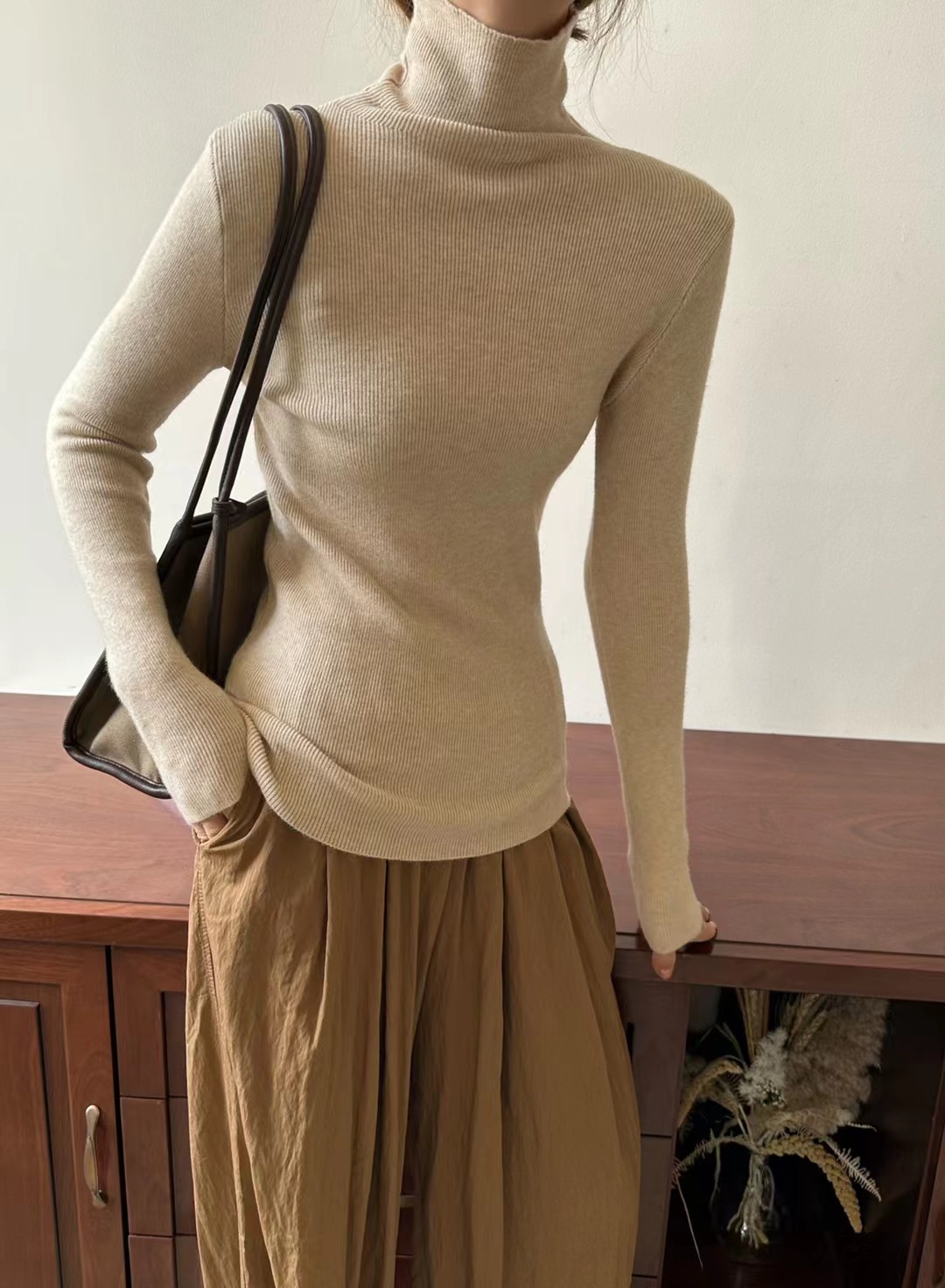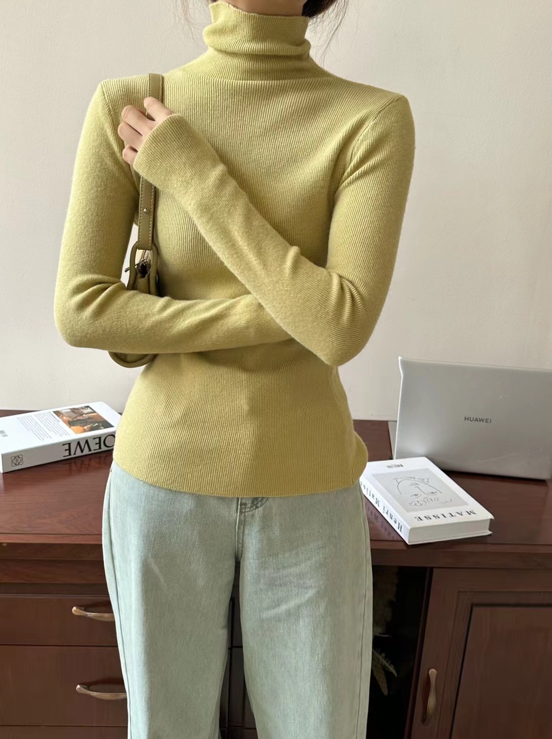 하이넥 니트 이너웨어 2025 가을 겨울 신상 단색 슬림핏 스타일리시한 풀오버 여성용스토어 가기