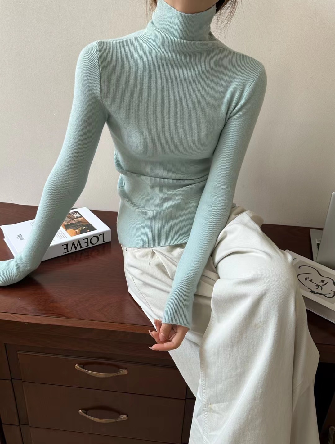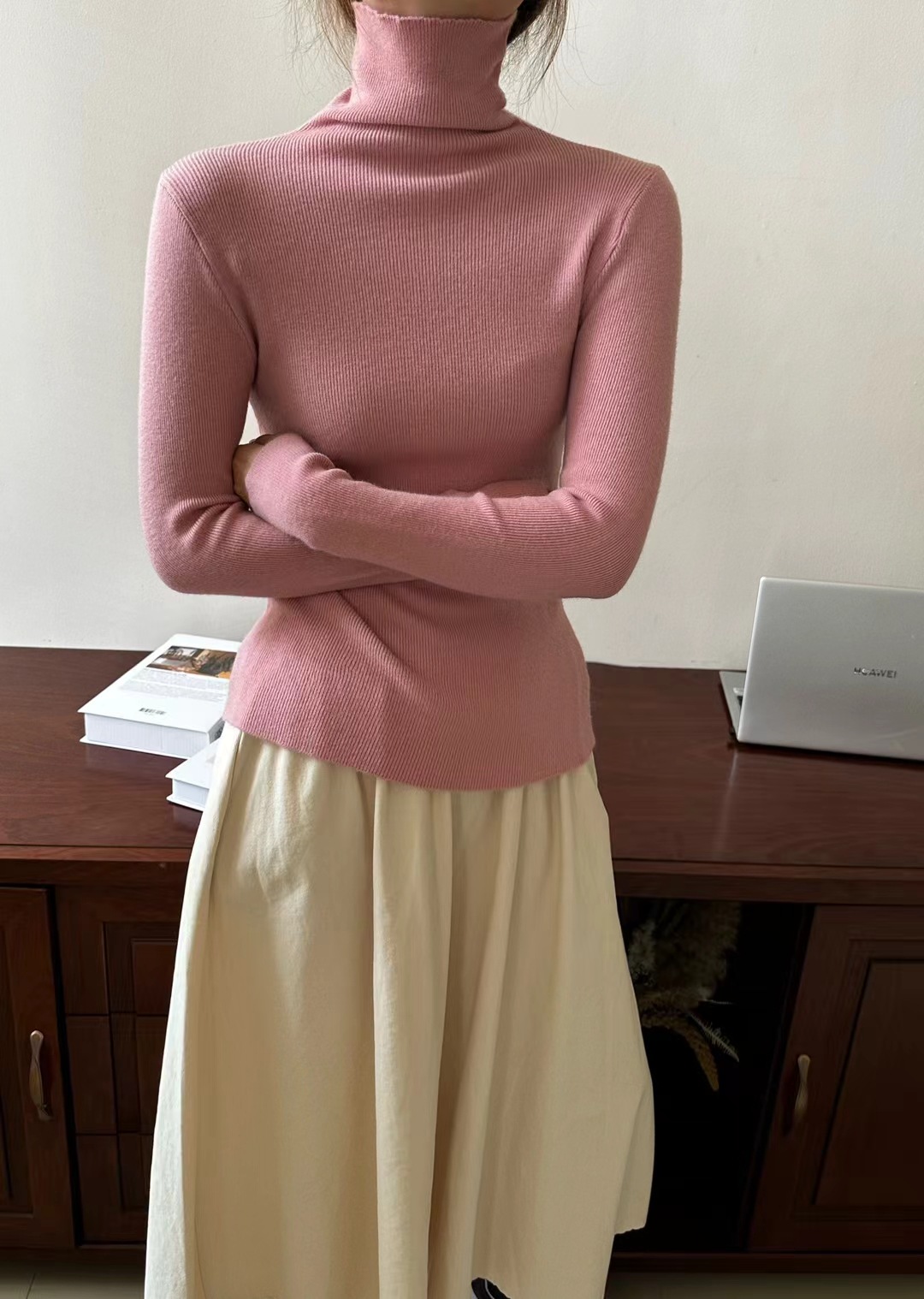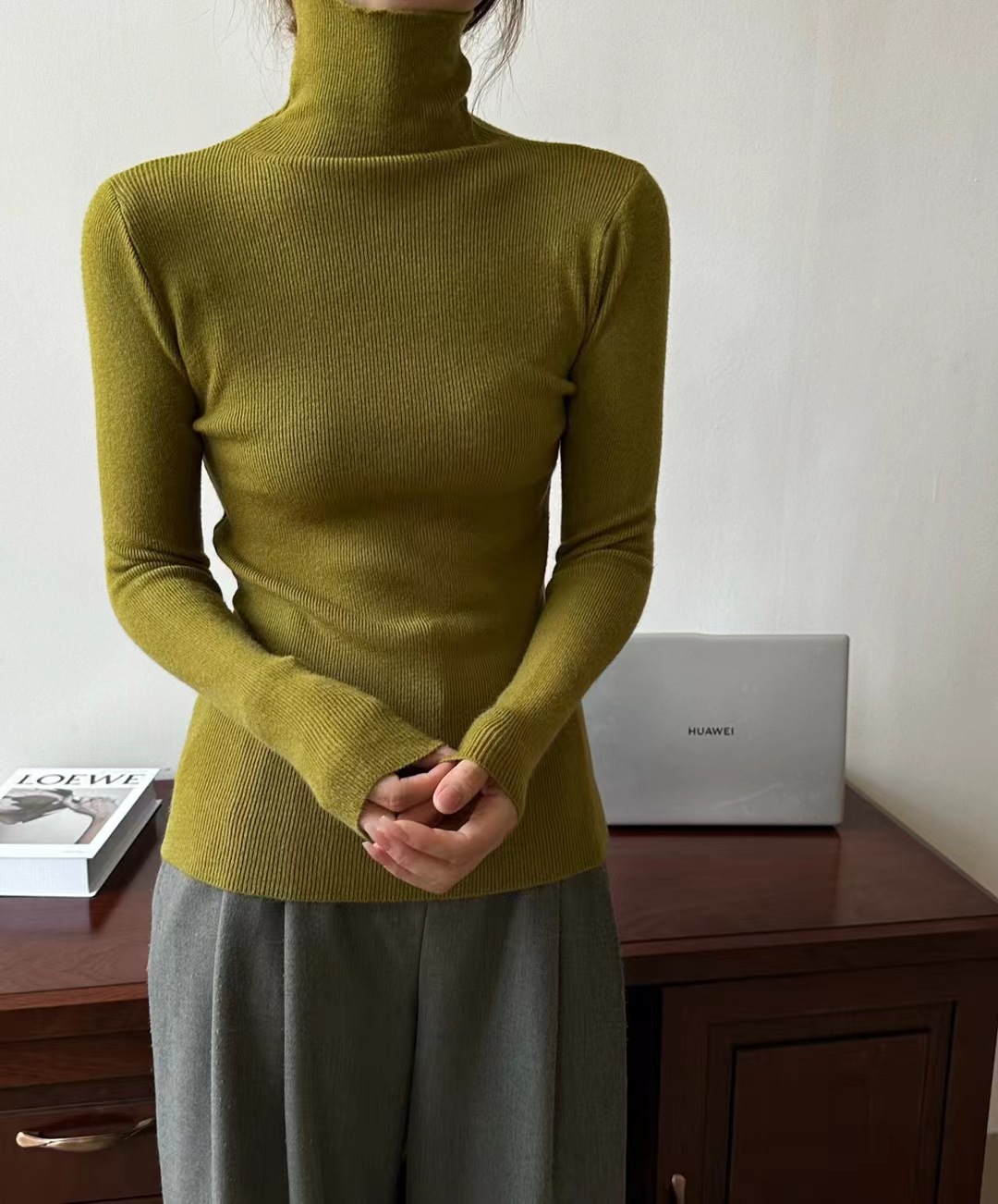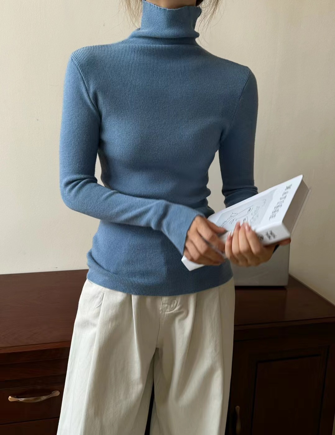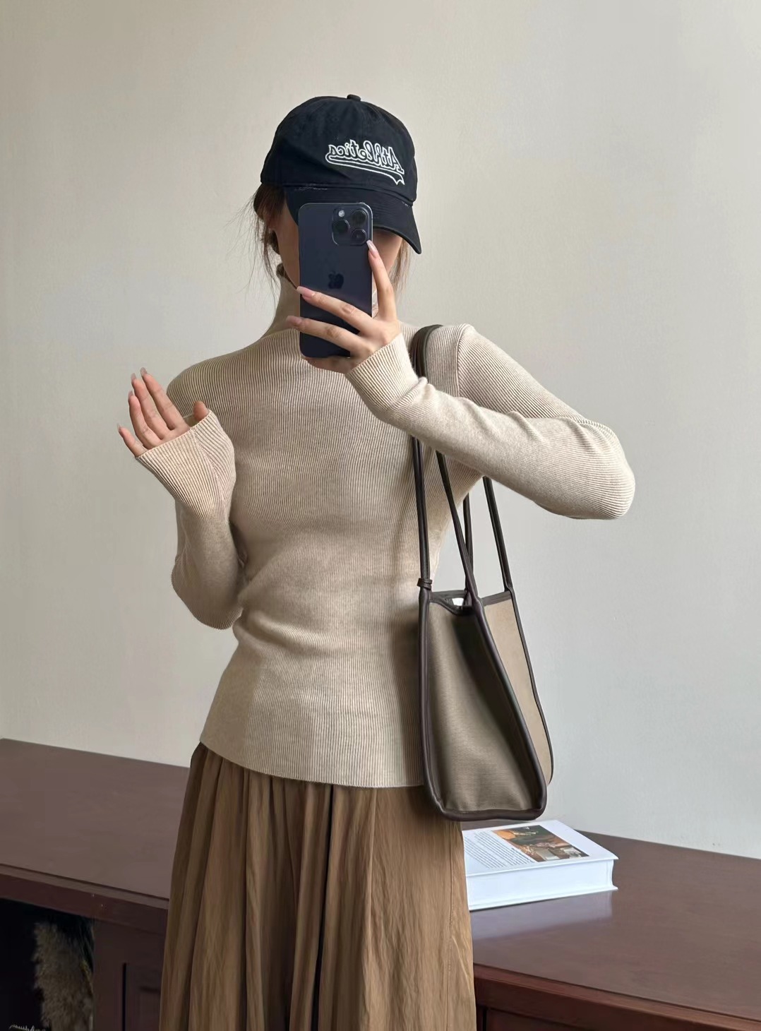 하이넥 니트 이너웨어 2025 가을 겨울 신상 단색 슬림핏 스타일리시한 풀오버 여성용스토어 가기