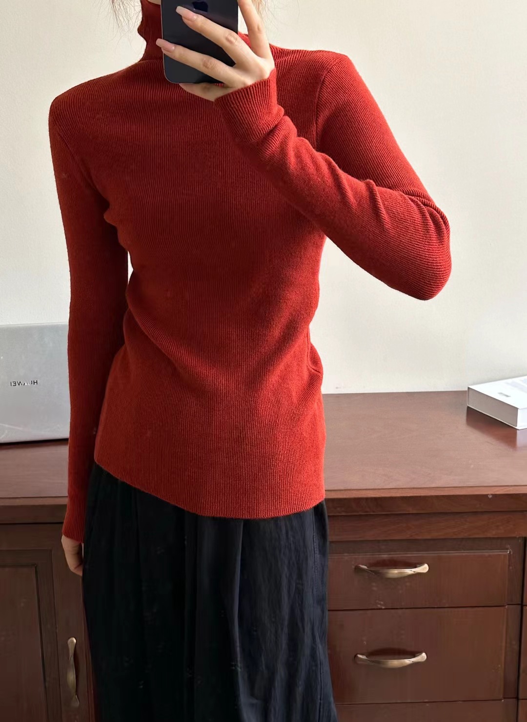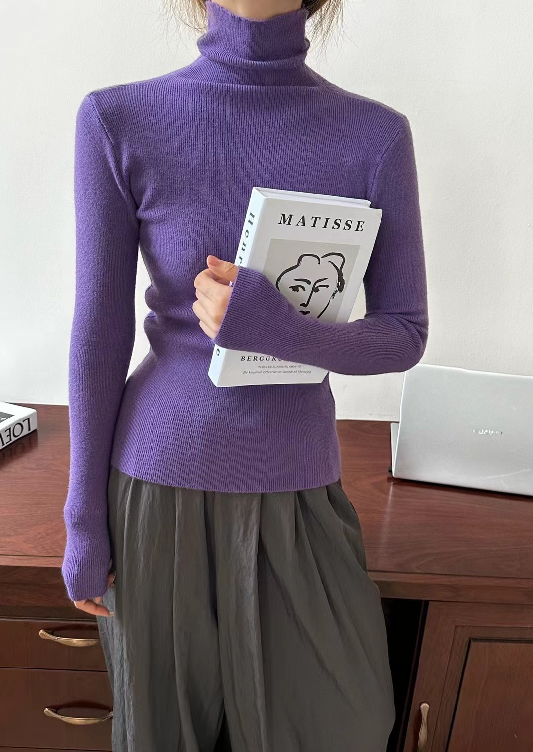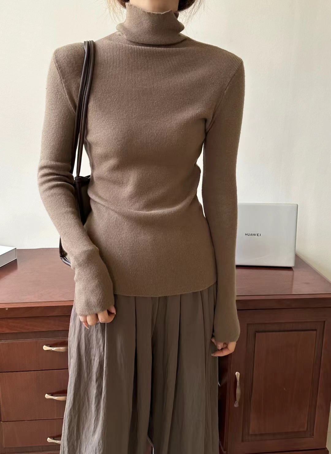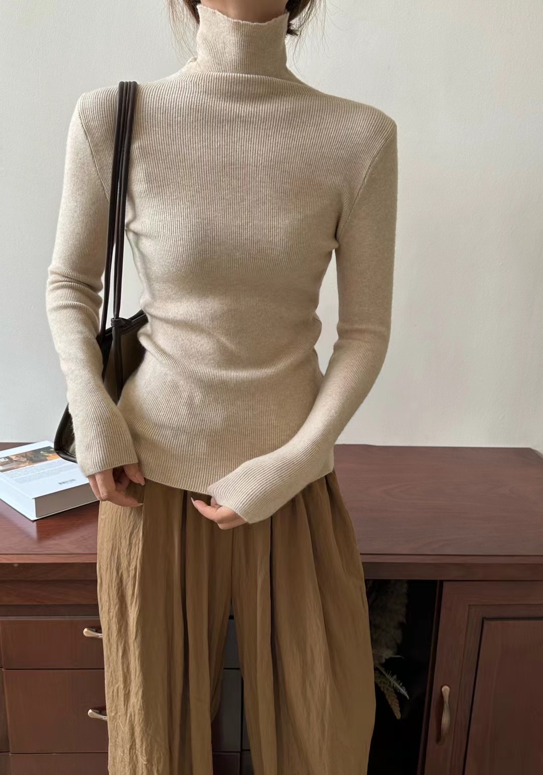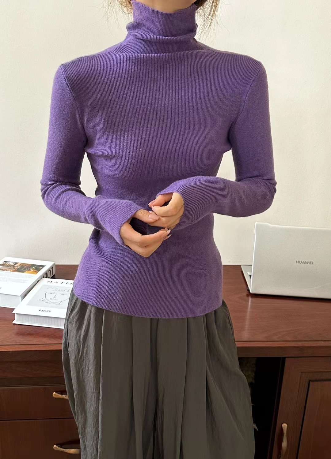 하이넥 니트 이너웨어 2025 가을 겨울 신상 단색 슬림핏 스타일리시한 풀오버 여성용스토어 가기