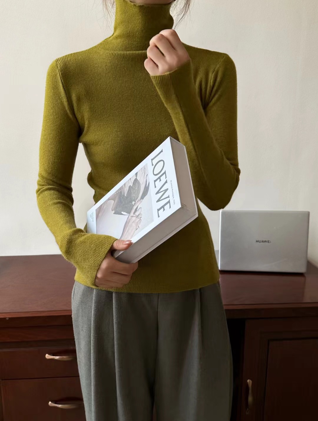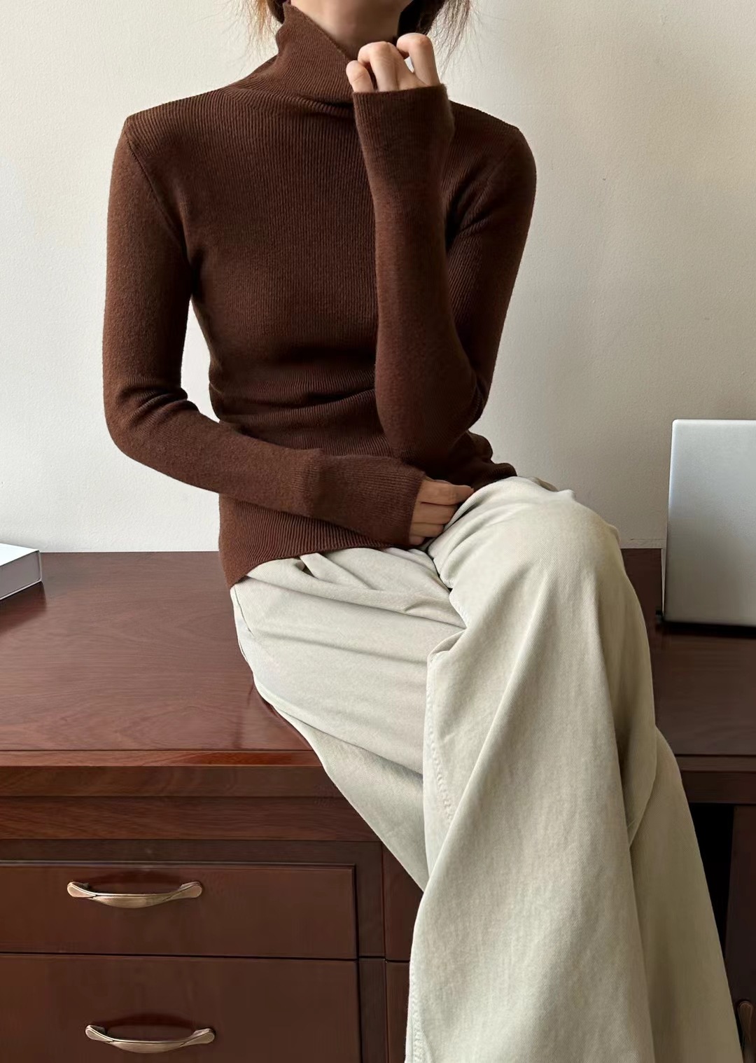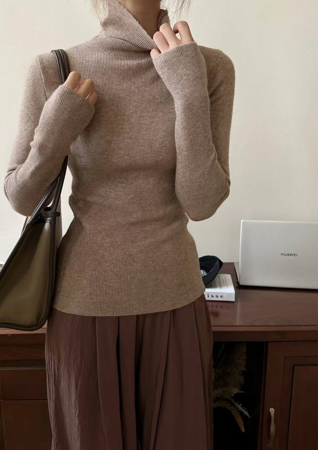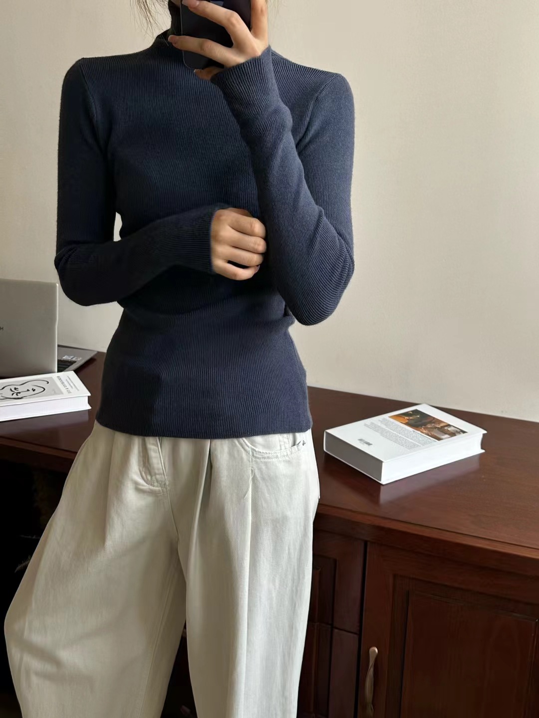 하이넥 니트 이너웨어 2025 가을 겨울 신상 단색 슬림핏 스타일리시한 풀오버 여성용스토어 가기