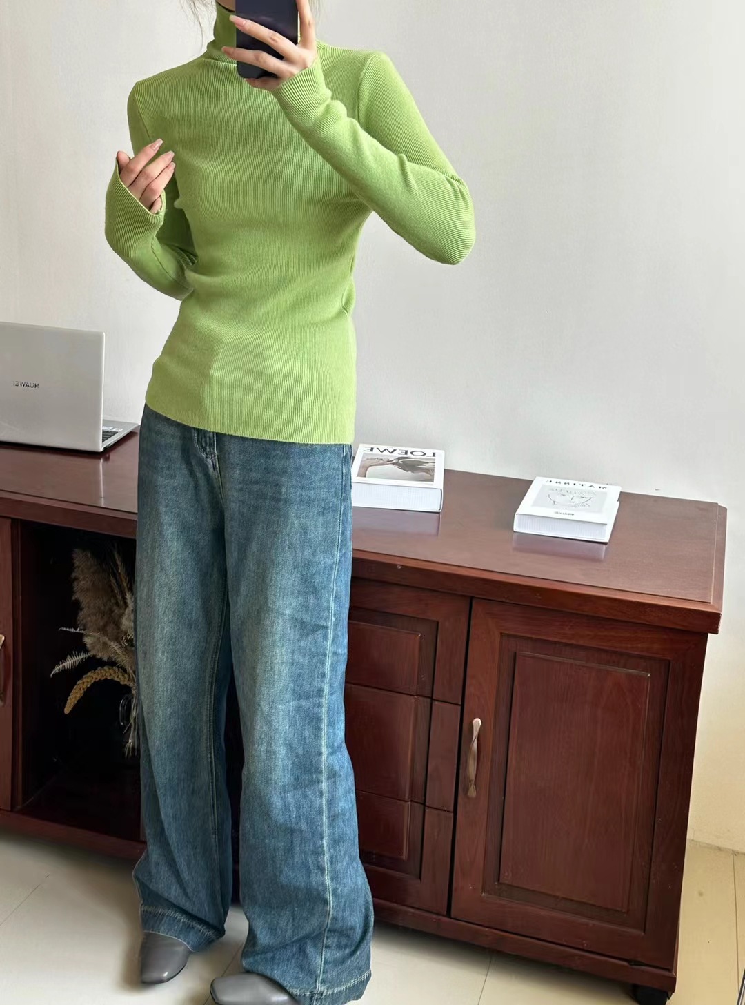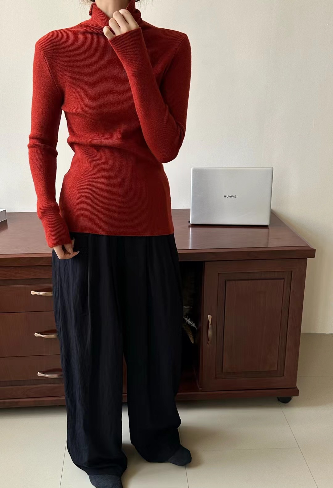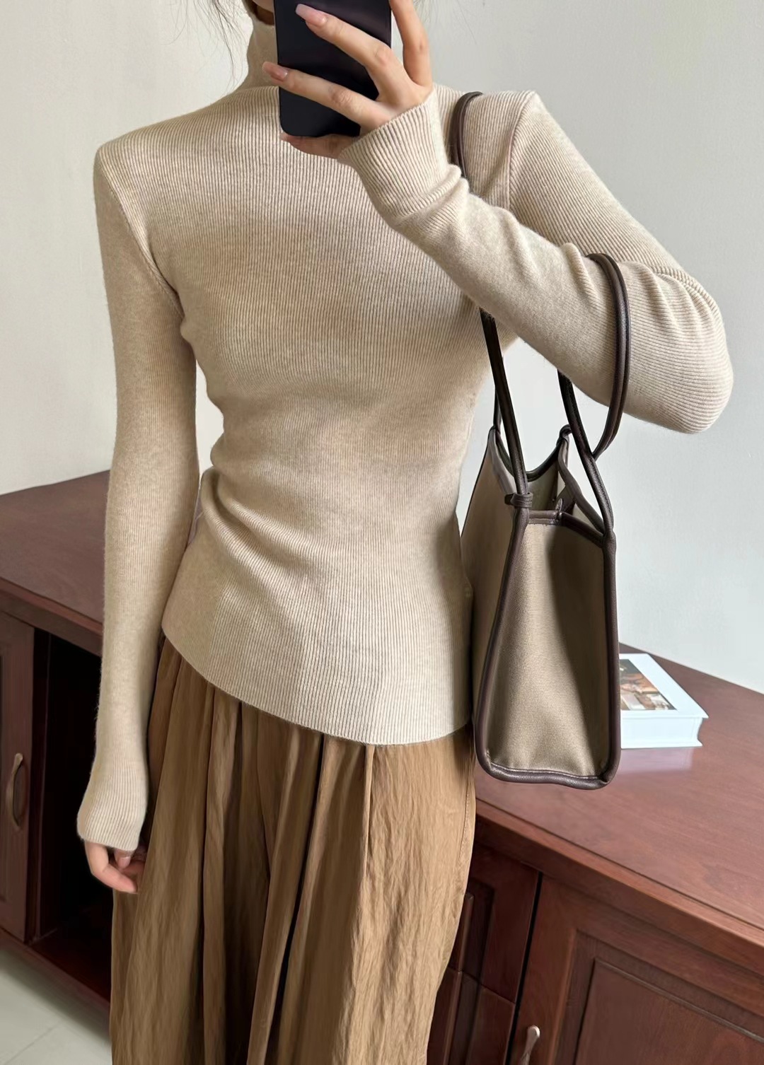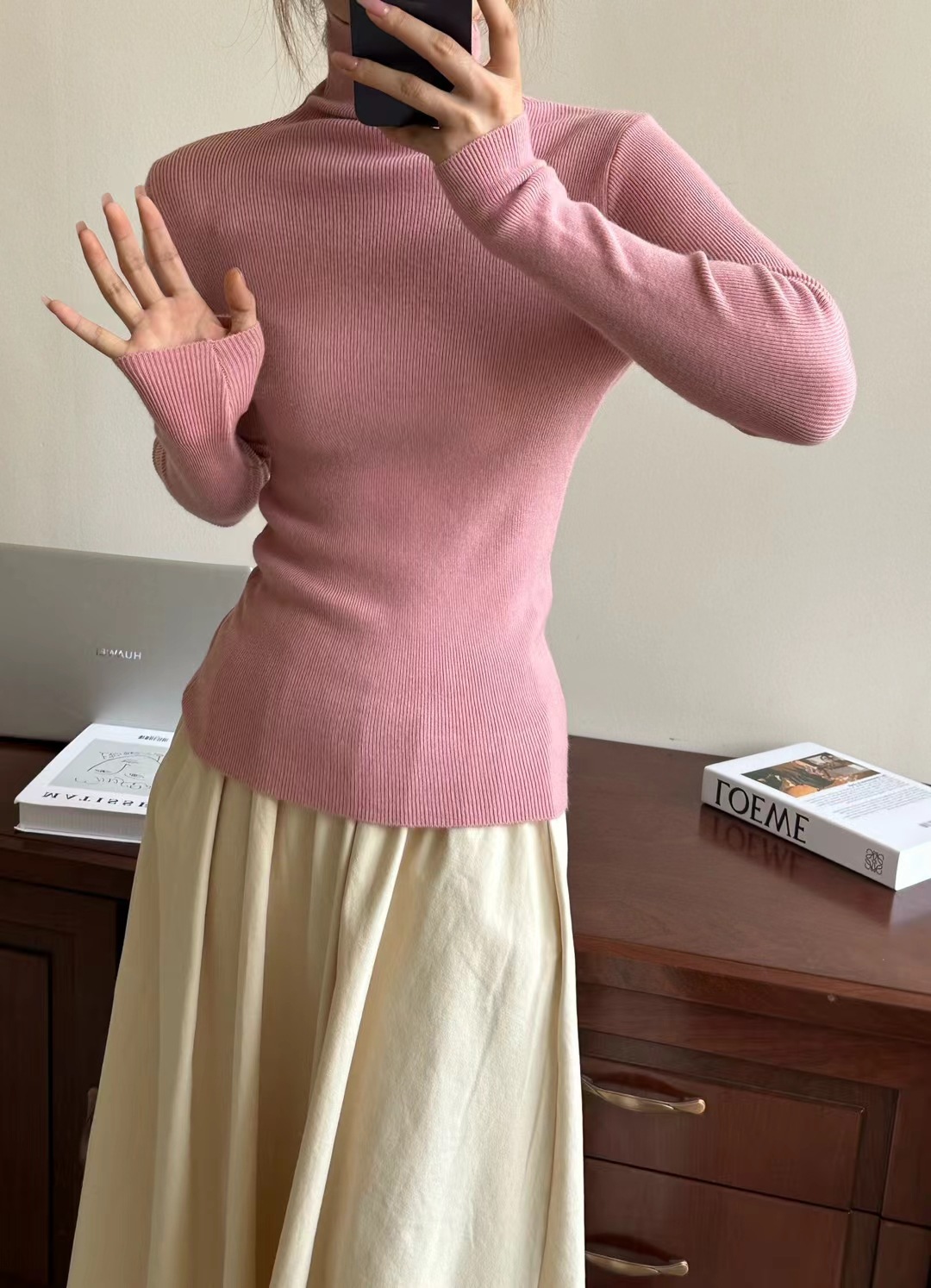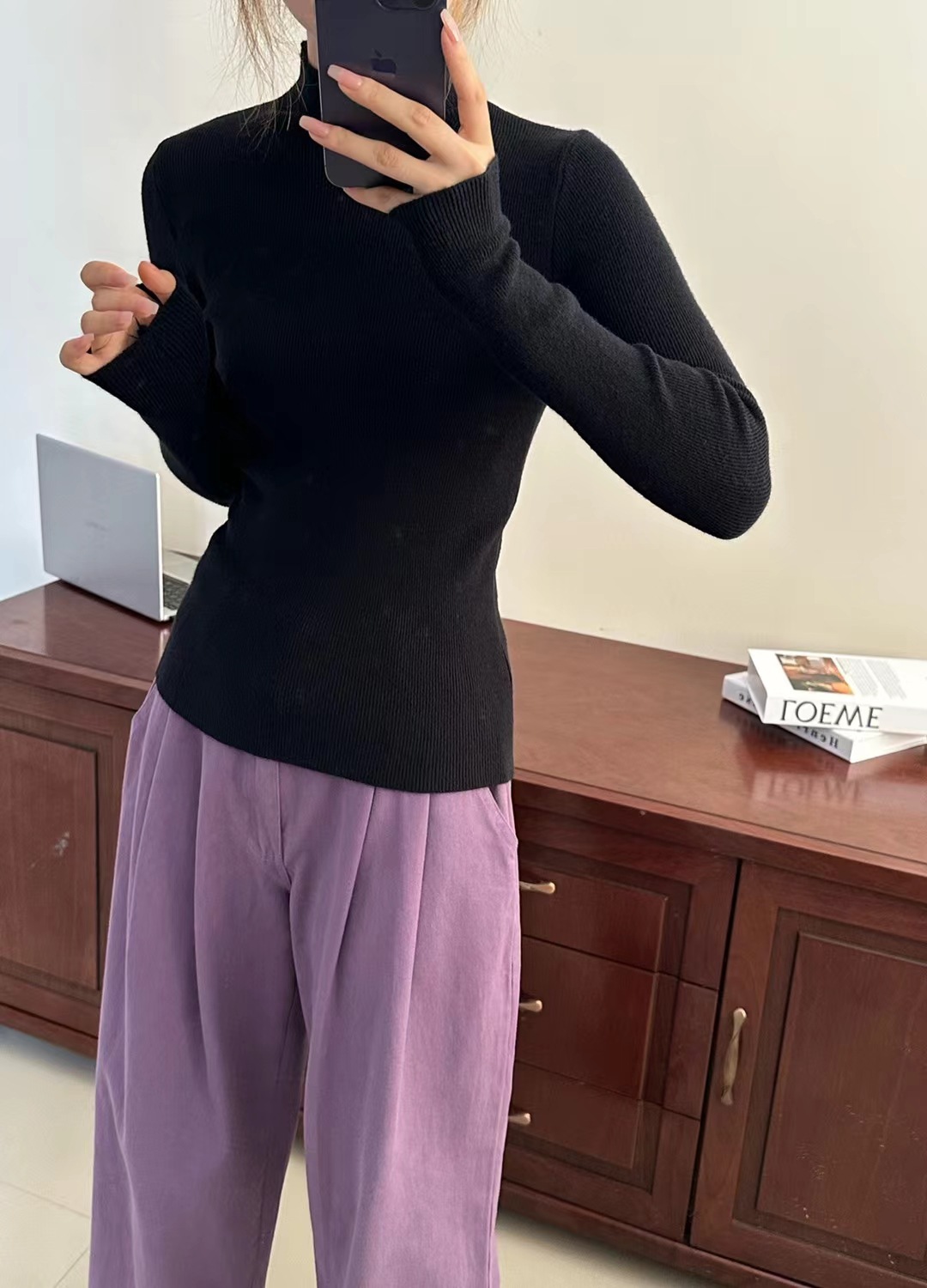 하이넥 니트 이너웨어 2025 가을 겨울 신상 단색 슬림핏 스타일리시한 풀오버 여성용스토어 가기
