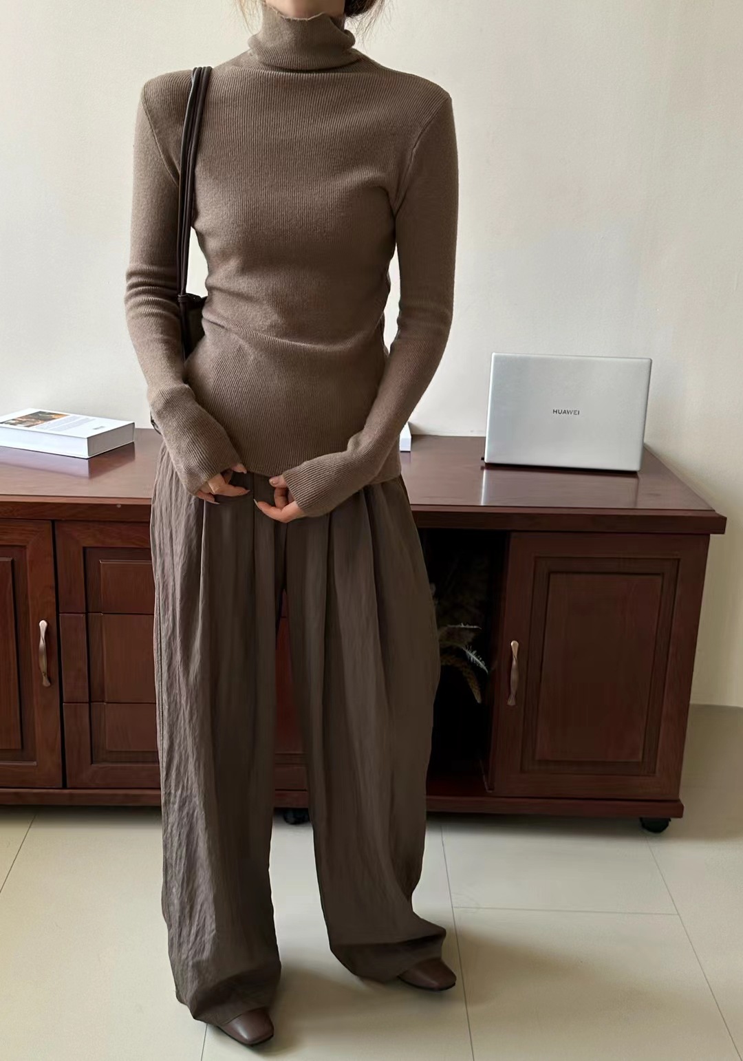 하이넥 니트 이너웨어 2025 가을 겨울 신상 단색 슬림핏 스타일리시한 풀오버 여성용