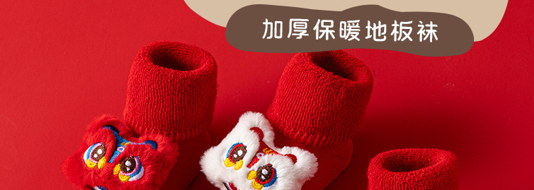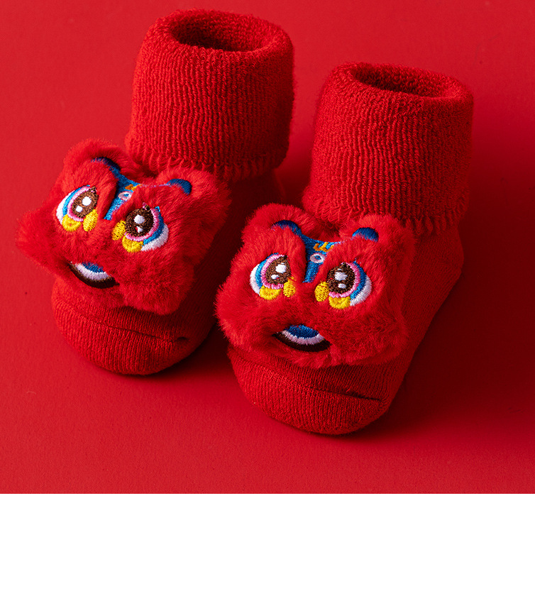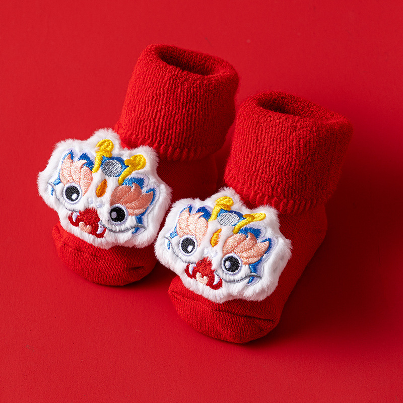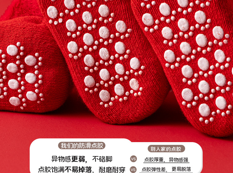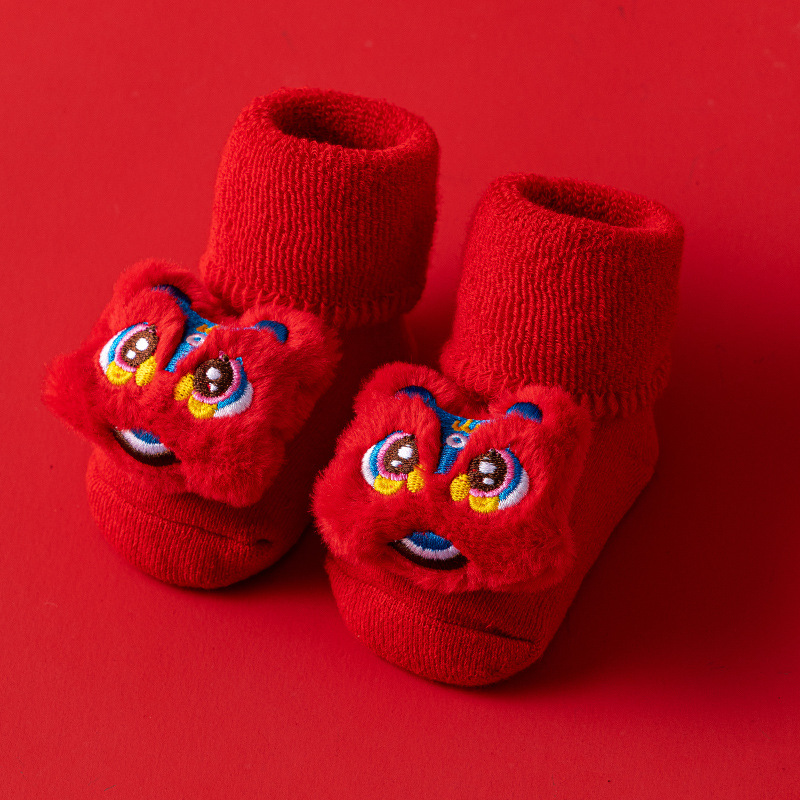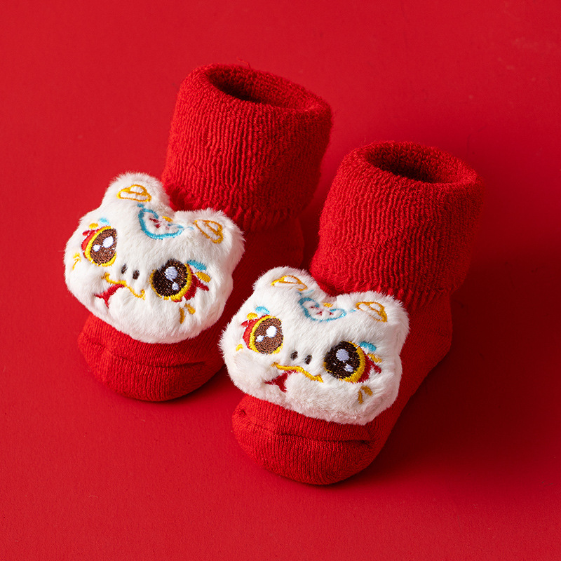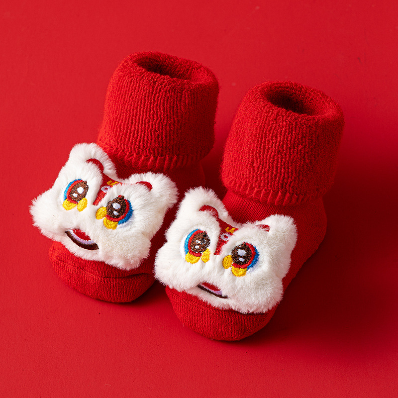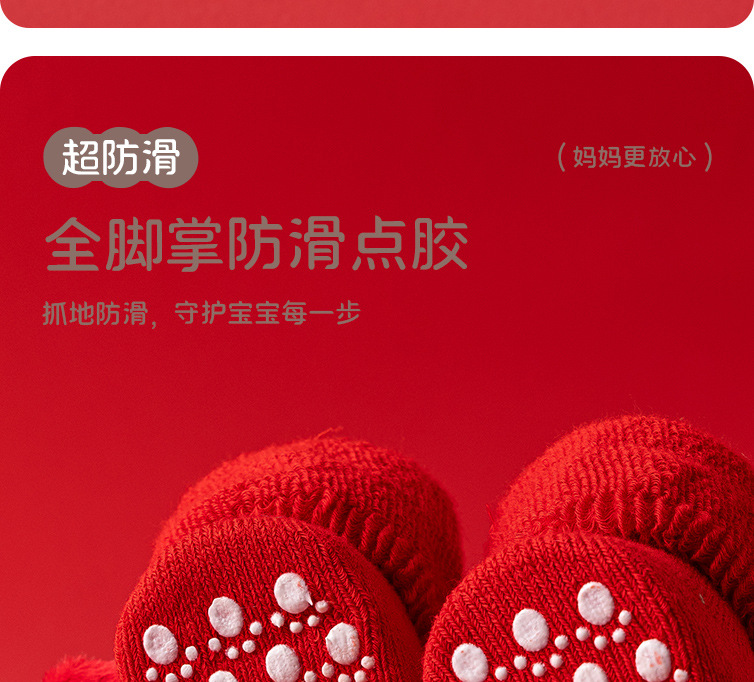 새로운 신생아 아기 면화 클래스 가을과 겨울 기모 두꺼운 따뜻한 붉은 새해 미끄럼 방지 유아 바닥 양말