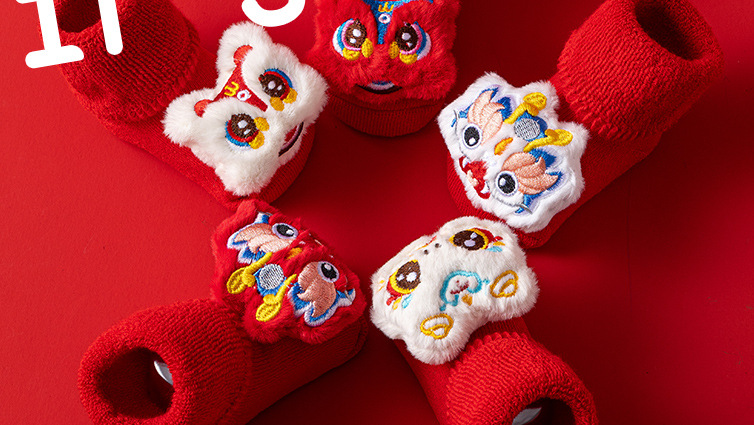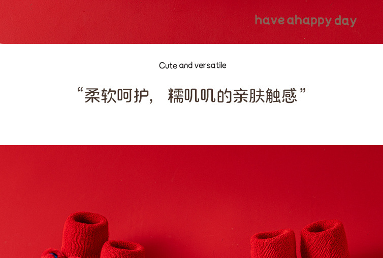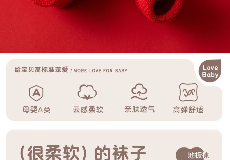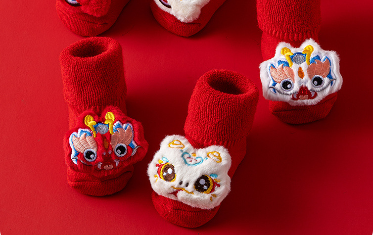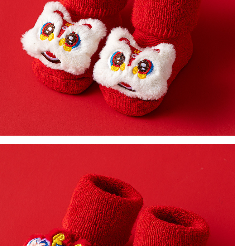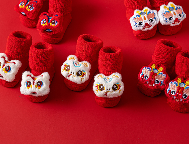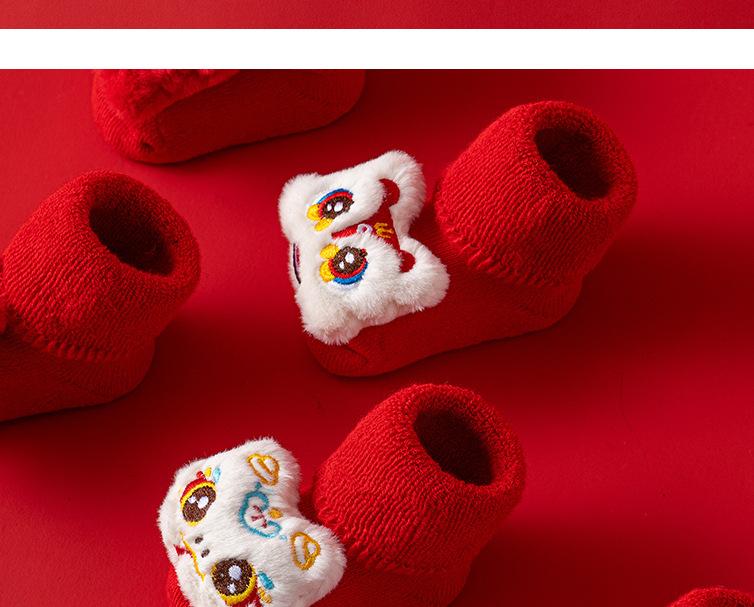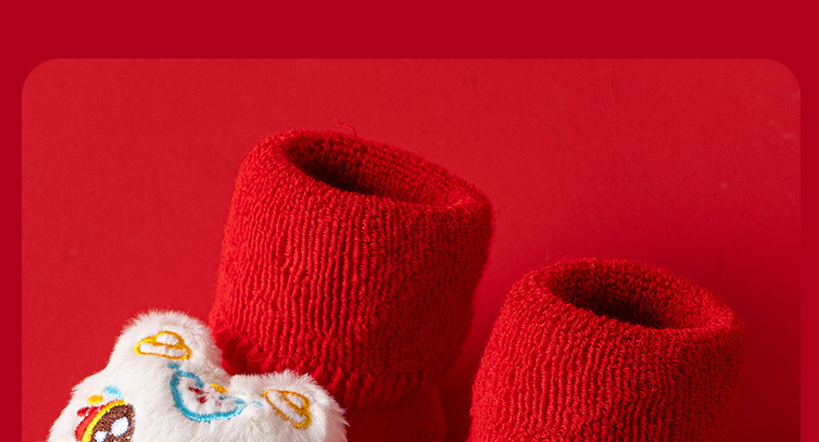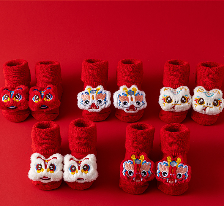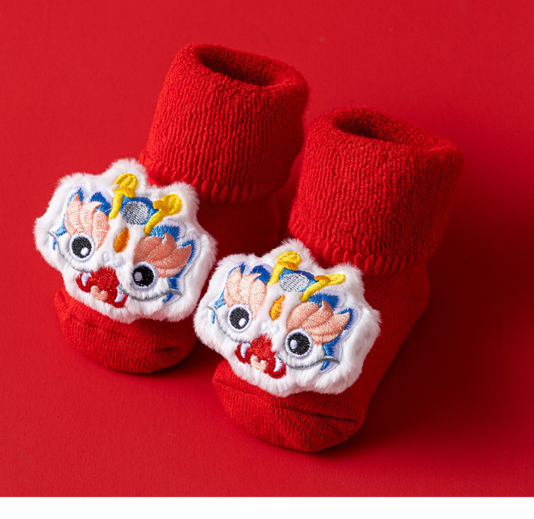 새로운 신생아 아기 면화 클래스 가을과 겨울 기모 두꺼운 따뜻한 붉은 새해 미끄럼 방지 유아 바닥 양말
