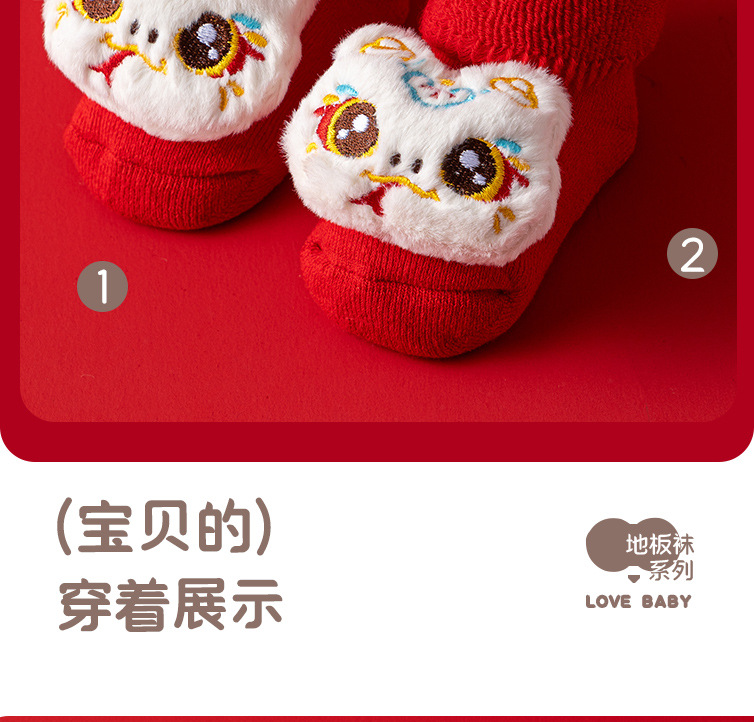 새로운 신생아 아기 면화 클래스 가을과 겨울 기모 두꺼운 따뜻한 붉은 새해 미끄럼 방지 유아 바닥 양말스토어 가기