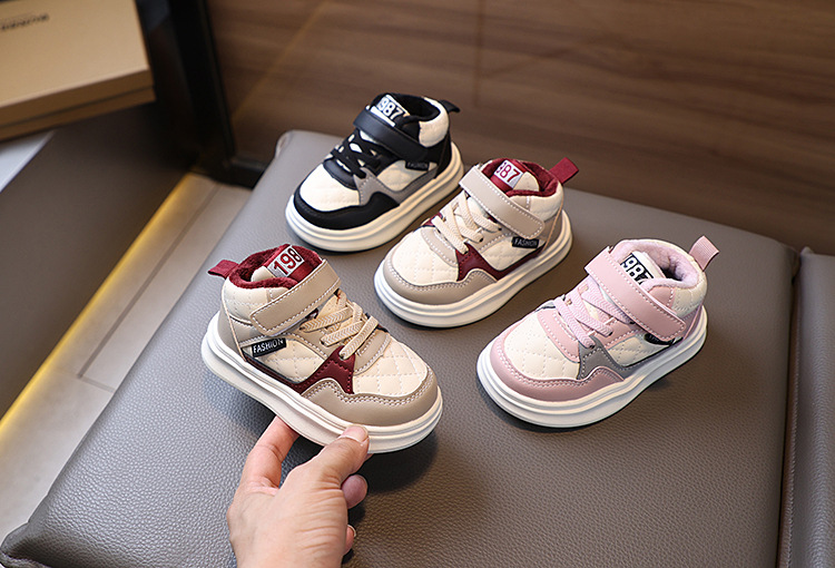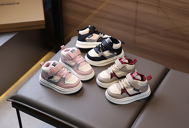 아기 신발 가을과 겨울 새로운 어린이 양면 운동화 소년 및 어린이 기모 하이 탑 운동화 어린이를위한 따뜻한 신발