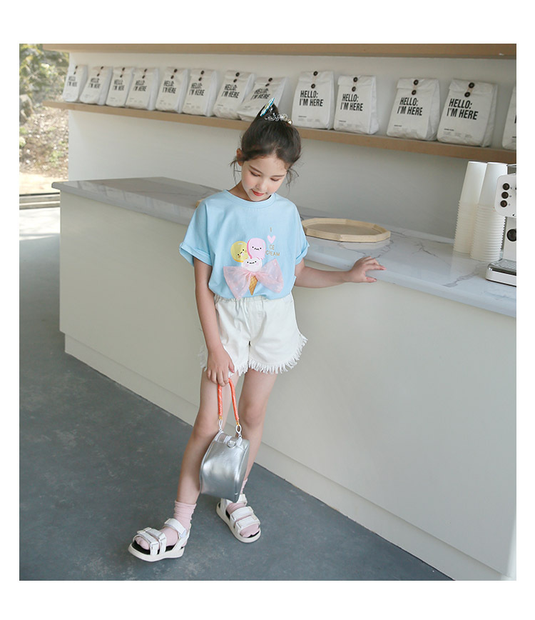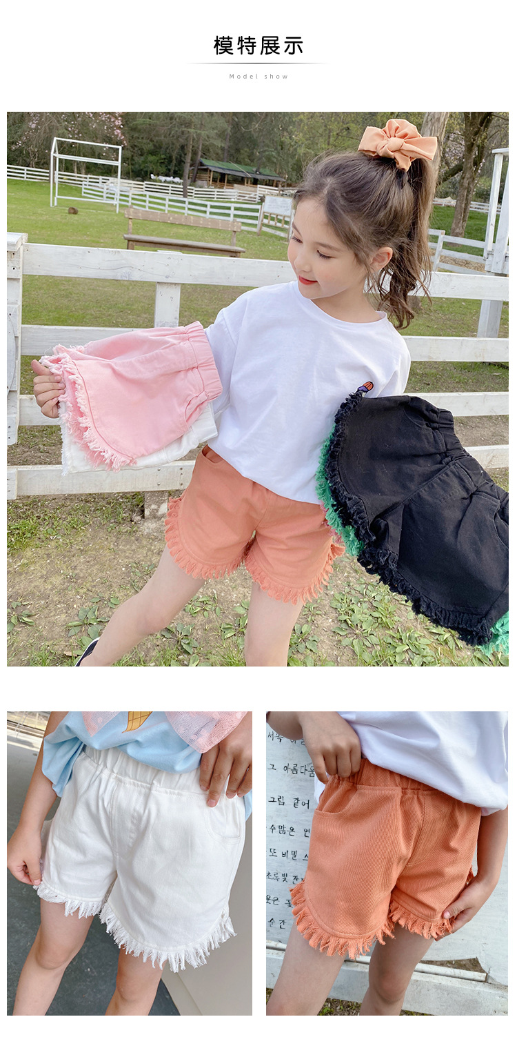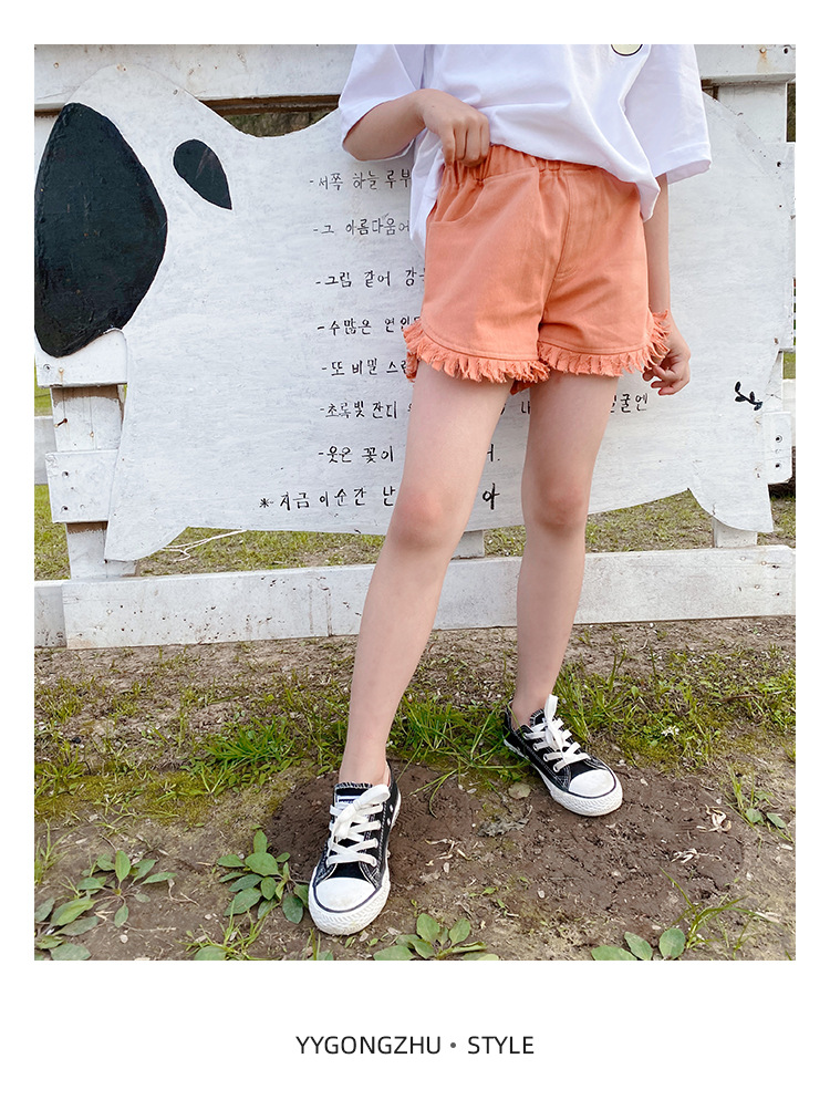여아 데님 반바지 여름 신상 여아용 다용도 루즈핏 중대형 아동용 외출용 핫 쓰리쿼터 팬츠 트렌디한 아동복스토어 가기