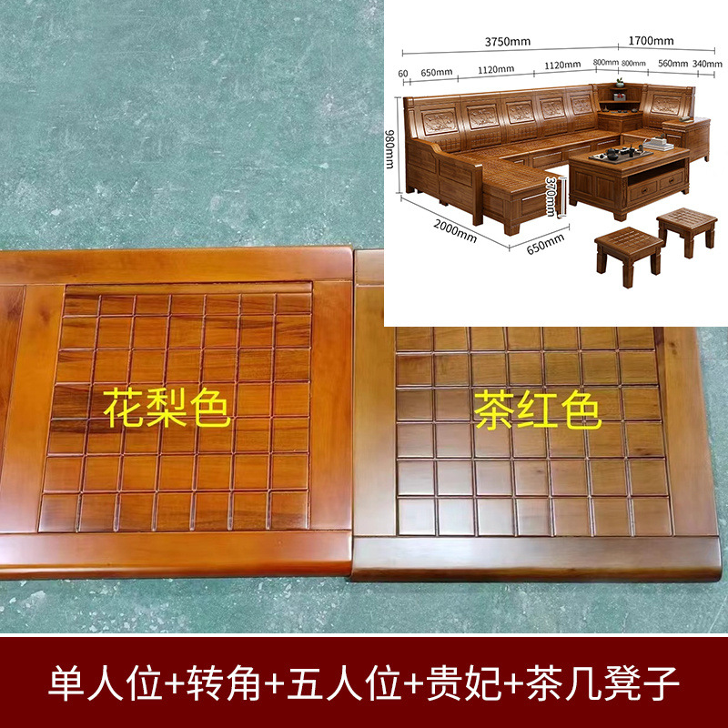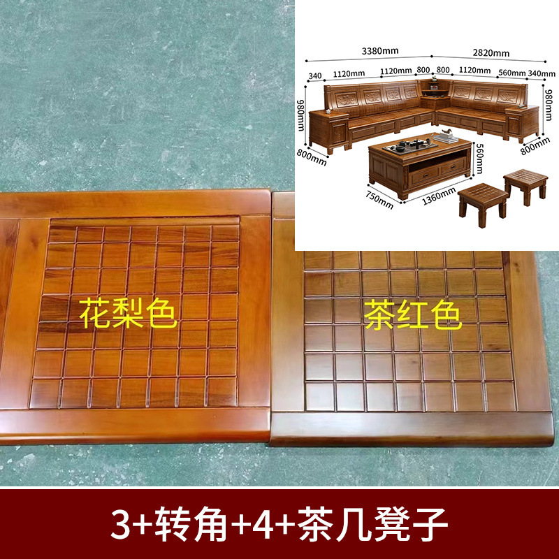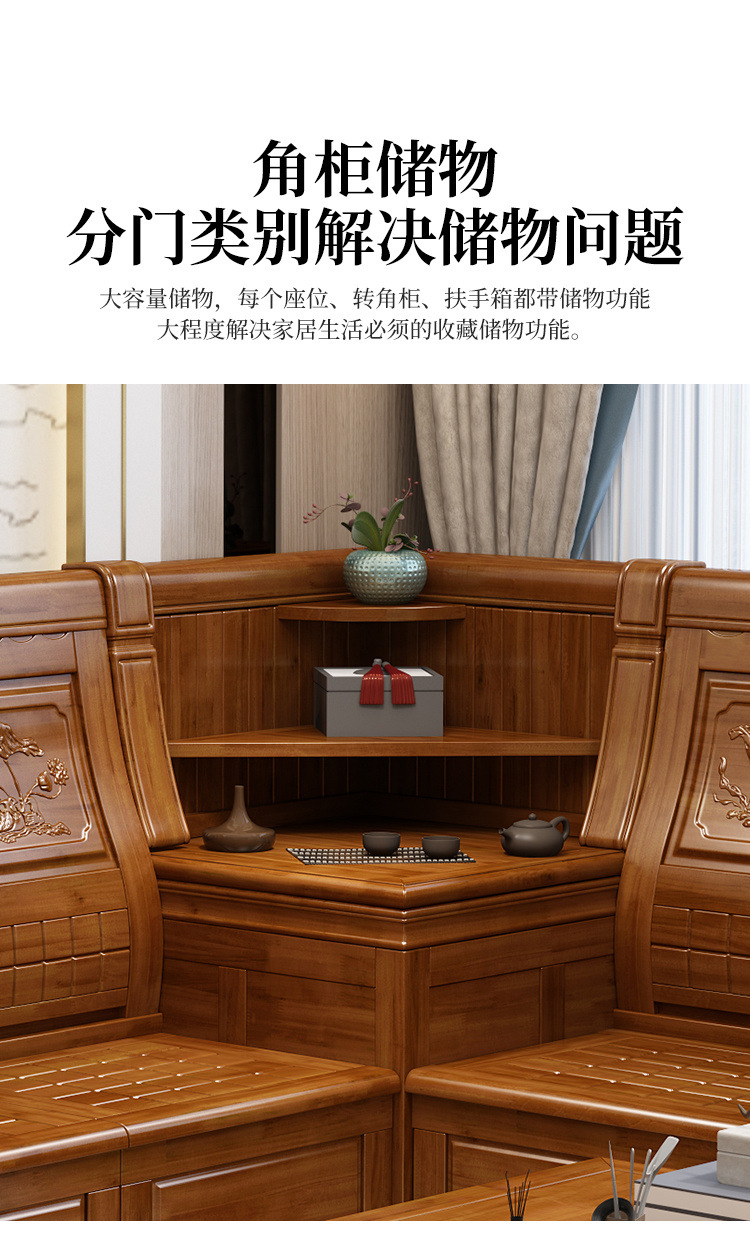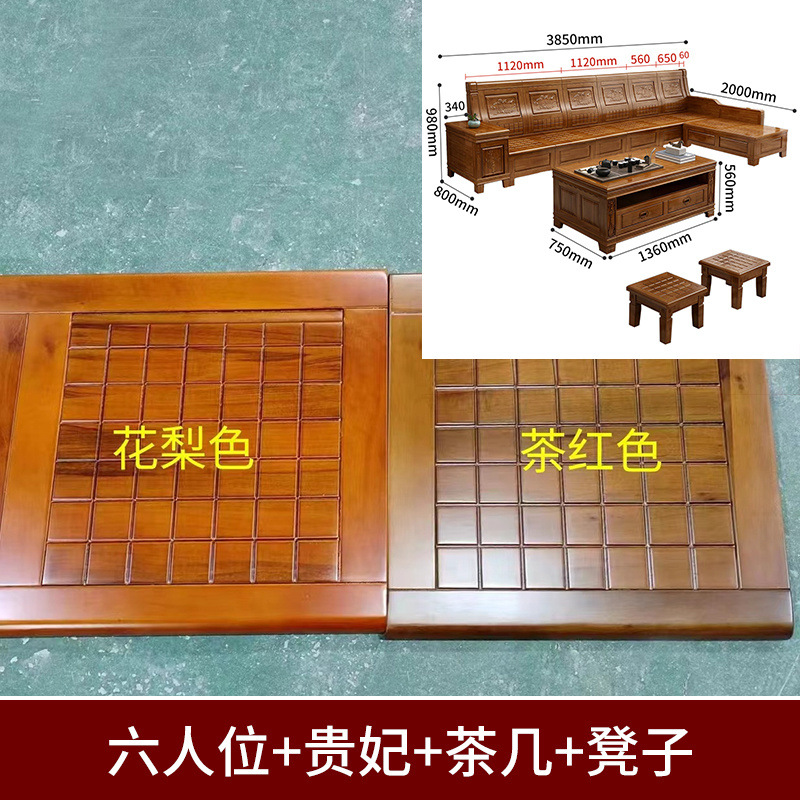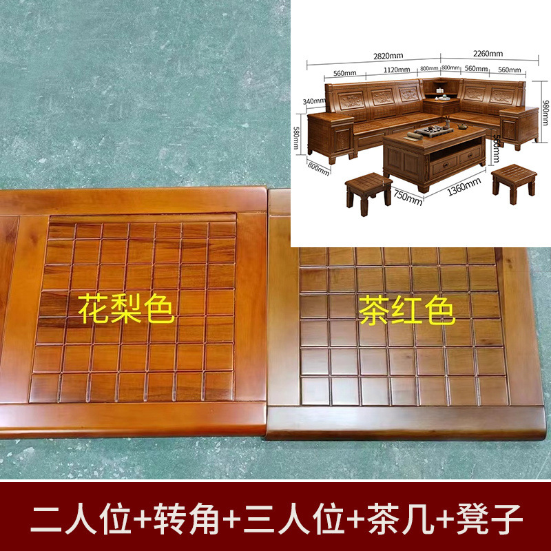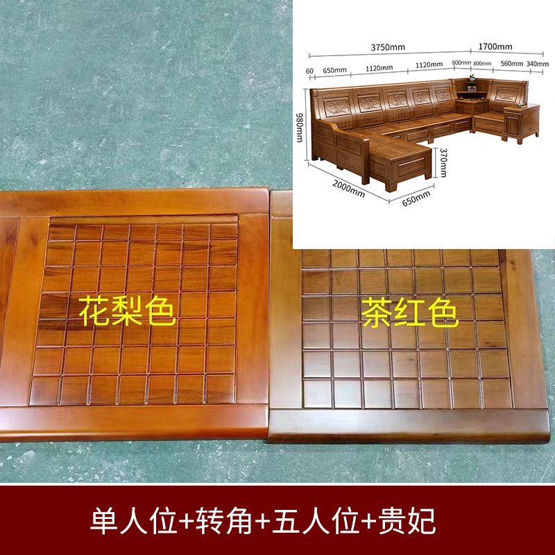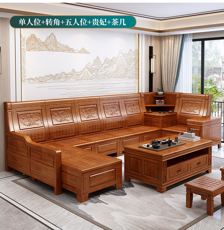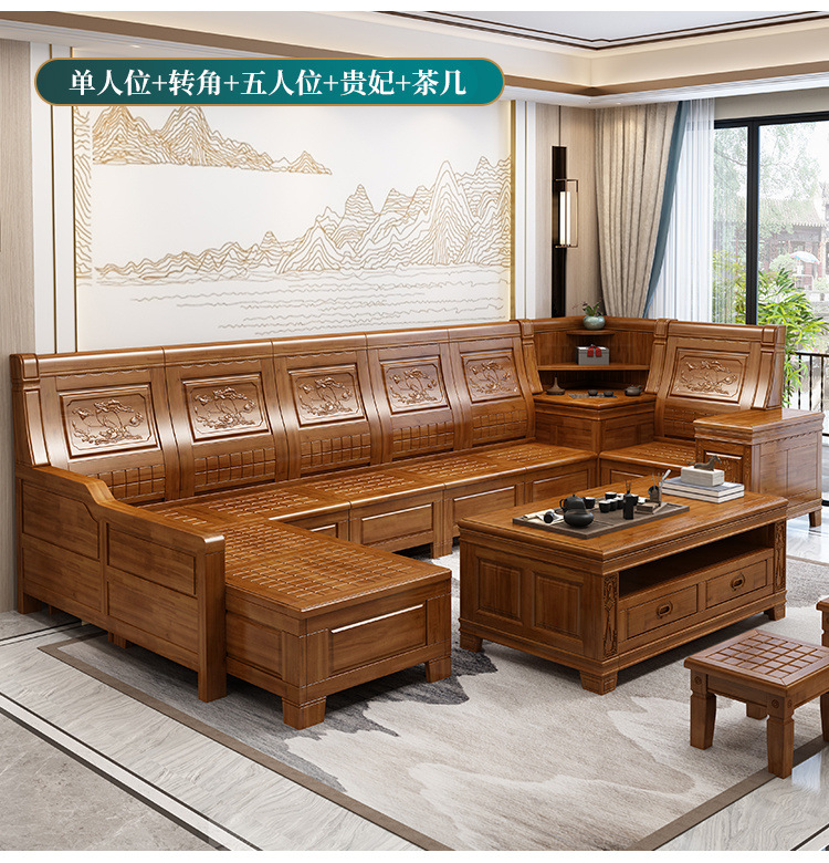 단단한 나무 소파 가구 캠퍼 나무 단단한 나무 조합 단단한 나무 거실 코너 고전적인 조각 중국 저장 나무스토어 가기
