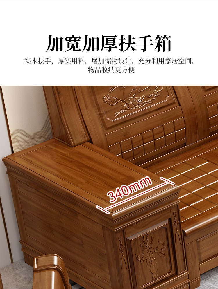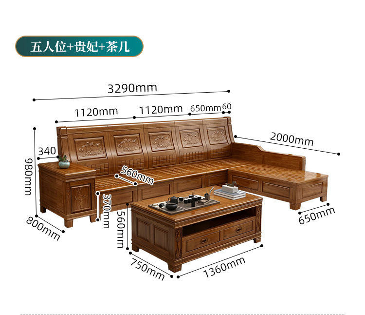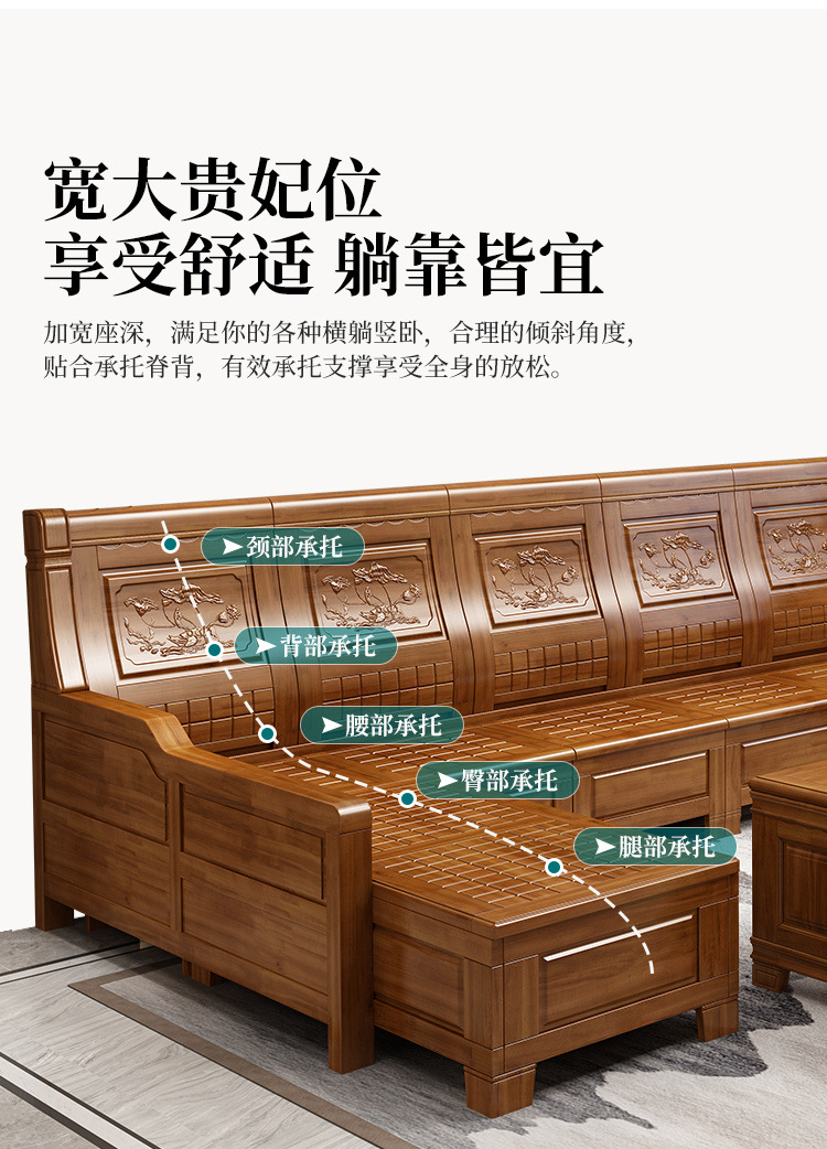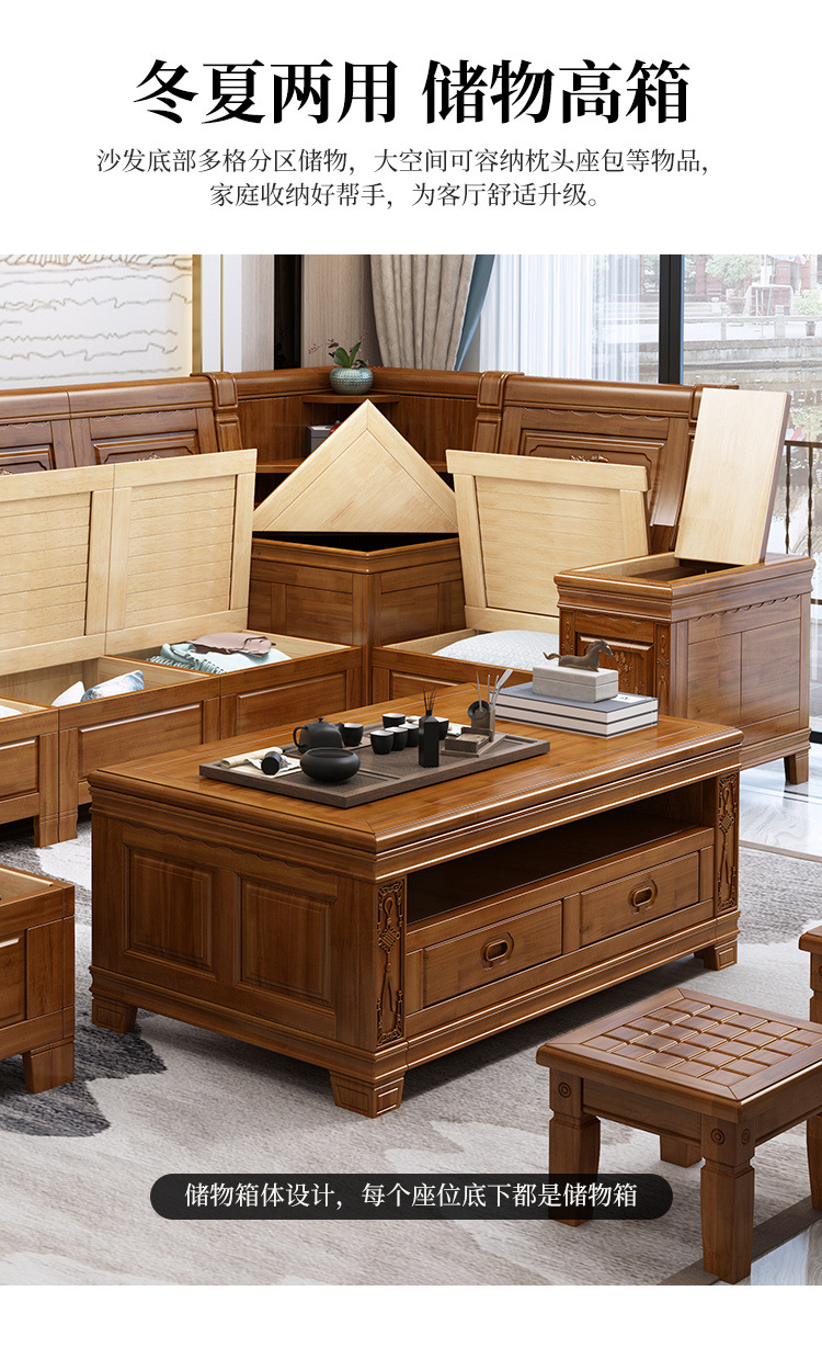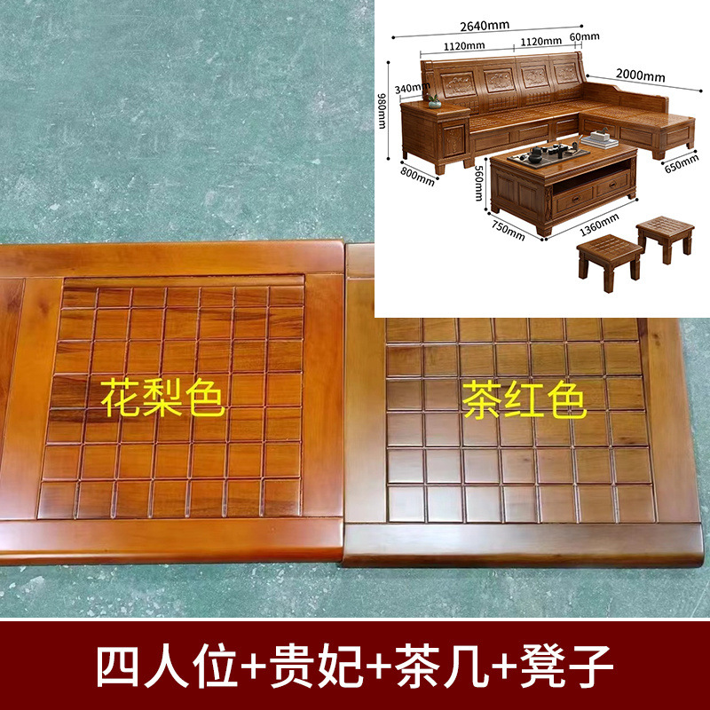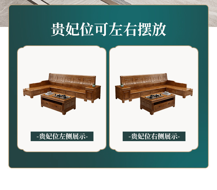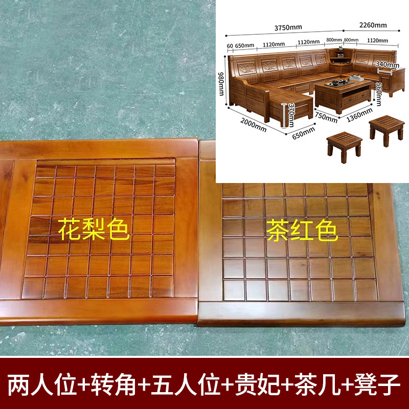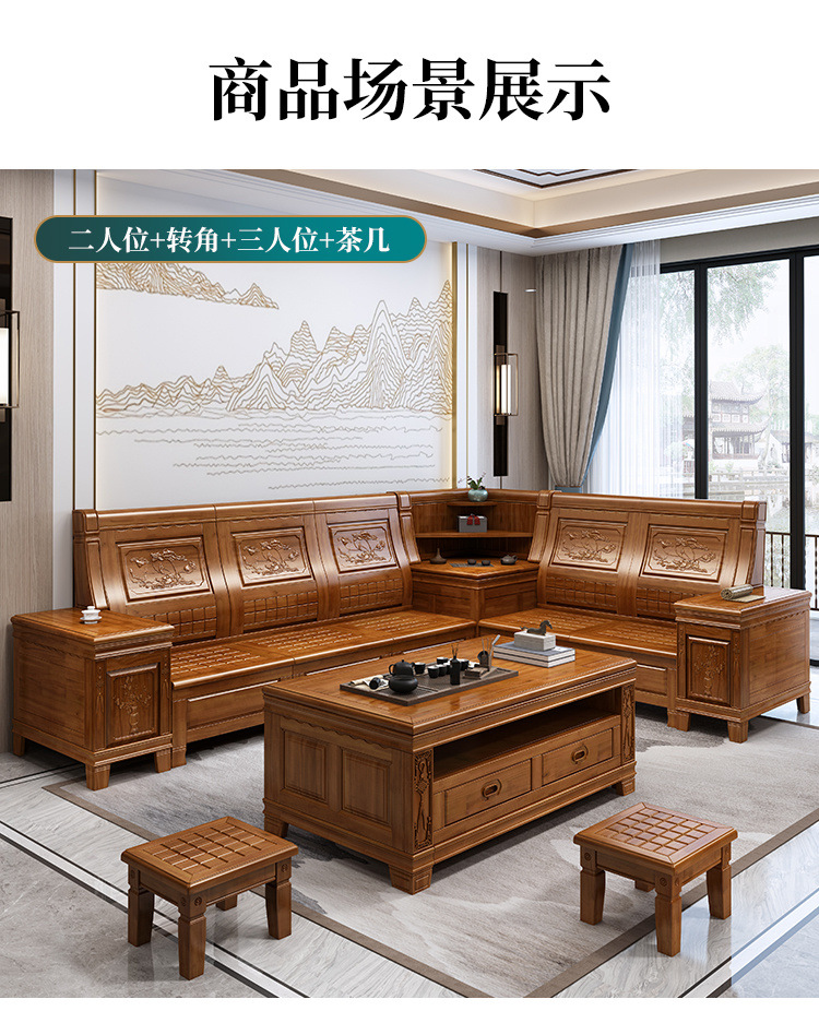 단단한 나무 소파 가구 캠퍼 나무 단단한 나무 조합 단단한 나무 거실 코너 고전적인 조각 중국 저장 나무스토어 가기