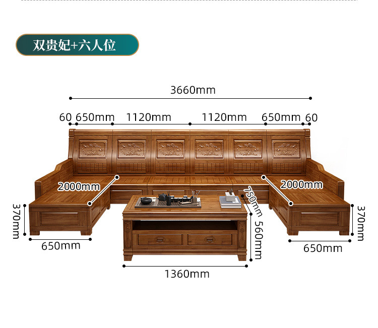 • J09#6인승 + 더블 황실 첩 소파 + 커피 테이블 스툴
