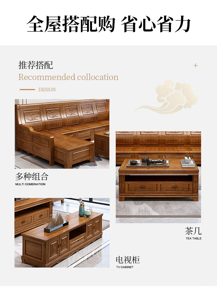 단단한 나무 소파 가구 캠퍼 나무 단단한 나무 조합 단단한 나무 거실 코너 고전적인 조각 중국 저장 나무