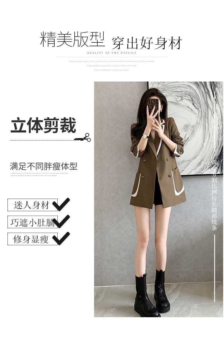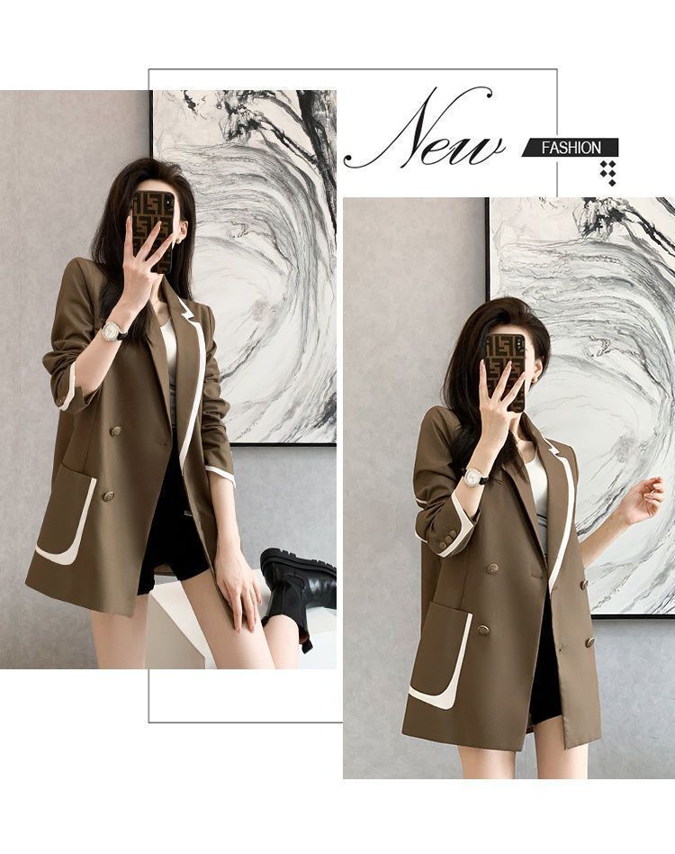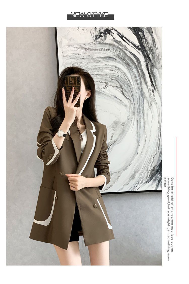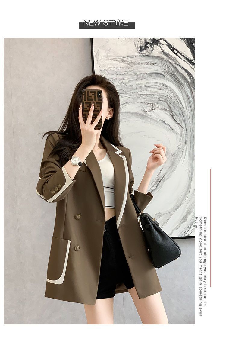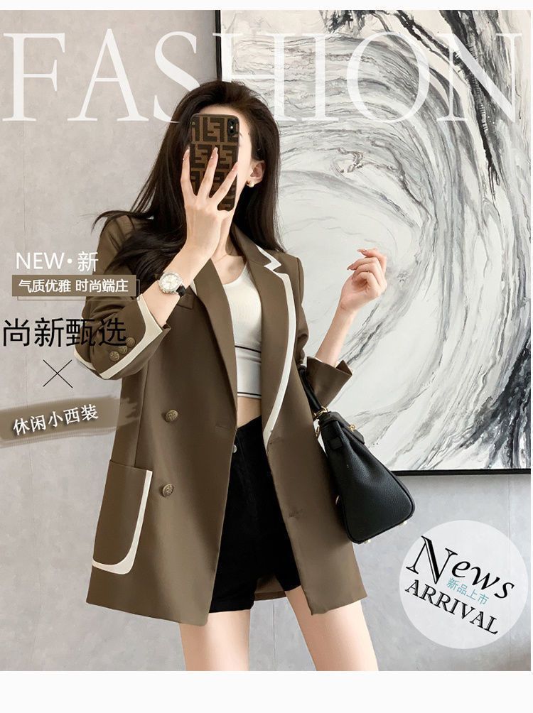2024 년 초가을 새 올해 인기있는 기질 대비 색상 세트 튀긴 거리 여성 작은 캐주얼 슬림 코트 탑스토어 가기