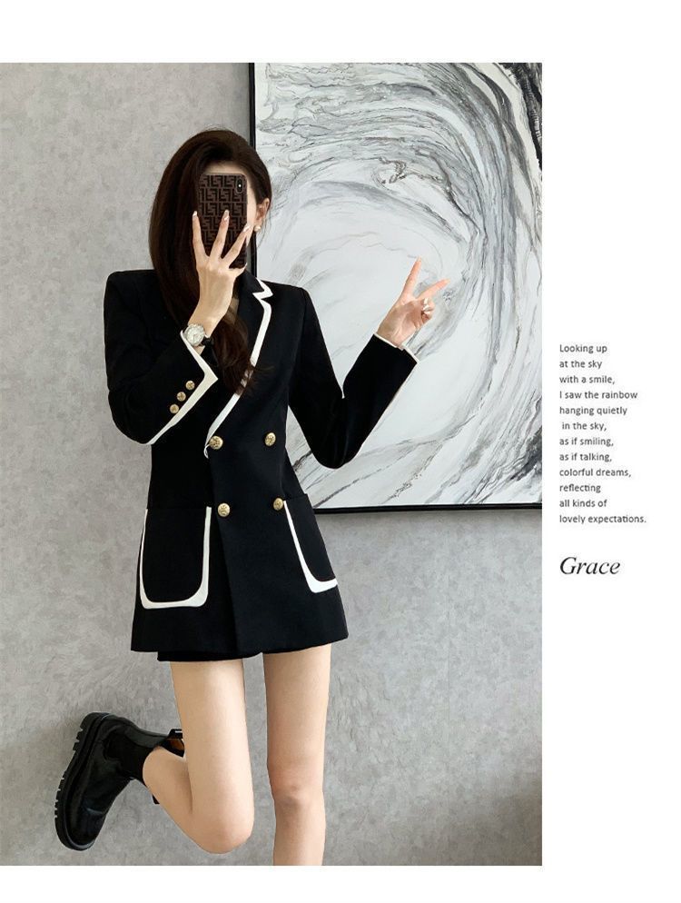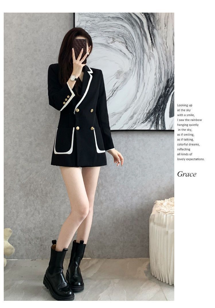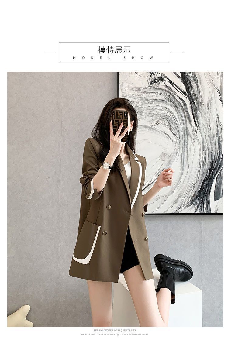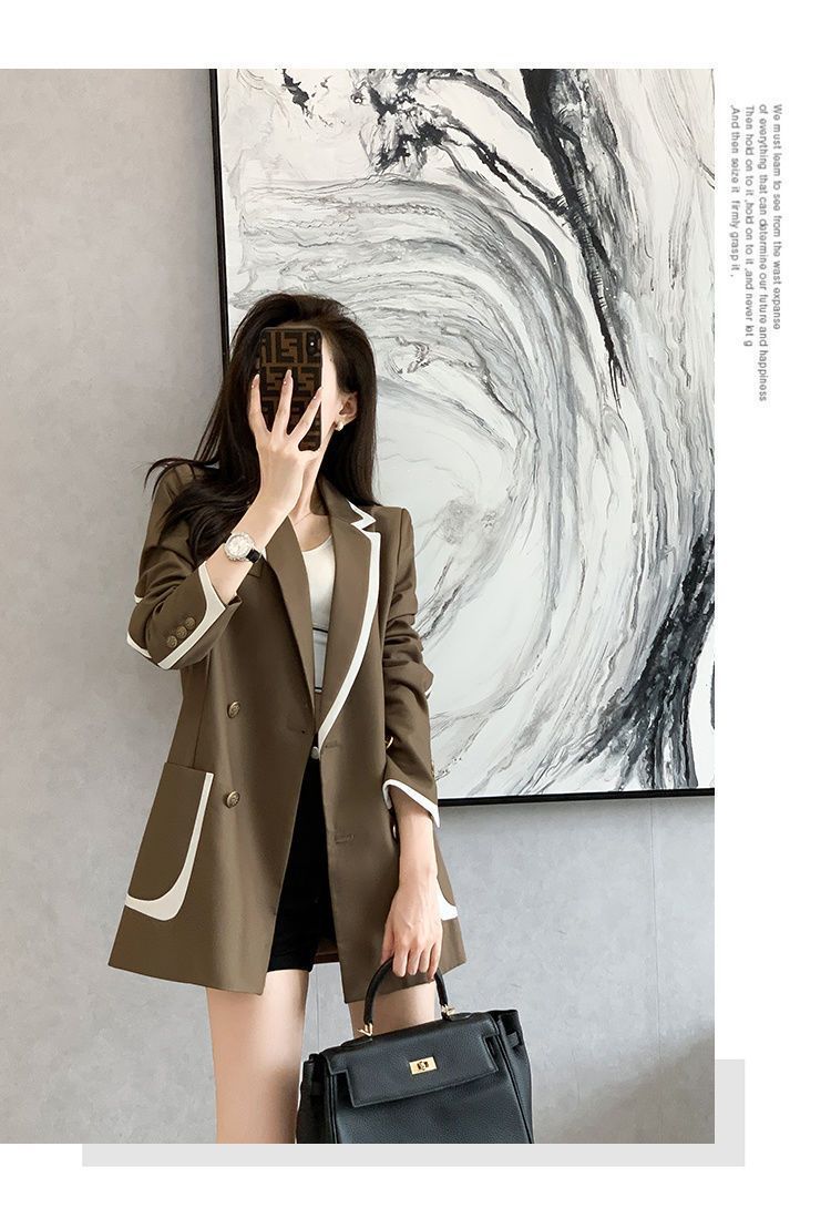2024 년 초가을 새 올해 인기있는 기질 대비 색상 세트 튀긴 거리 여성 작은 캐주얼 슬림 코트 탑스토어 가기