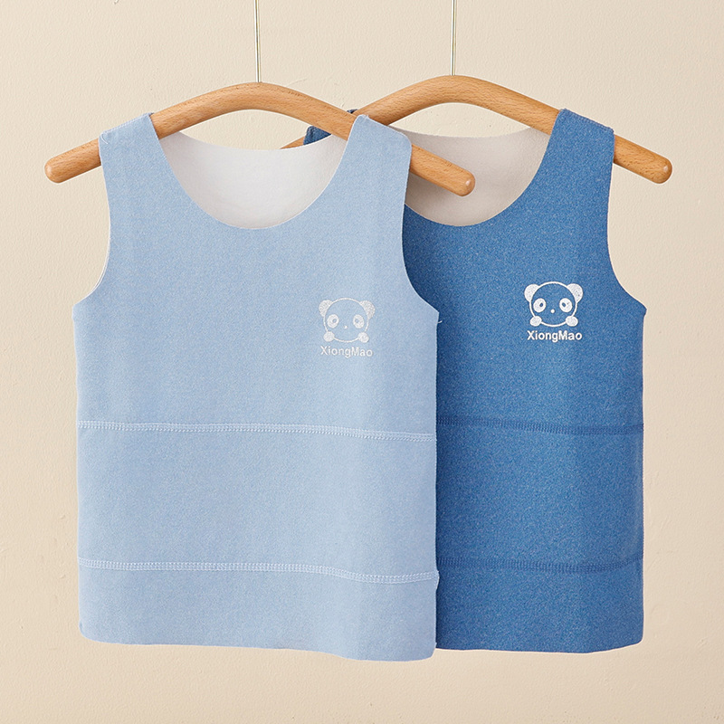 아동용 배 보호 조끼, 독일산 벨벳 항온 뼈없는 밀착형 베이스 레이어 가을 겨울 조끼, 무봉제 보온 속옷, 자체 발열 벨벳