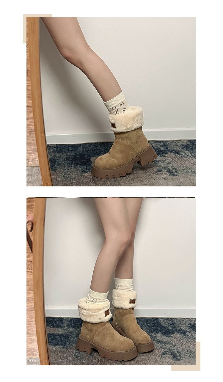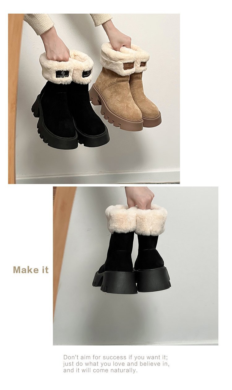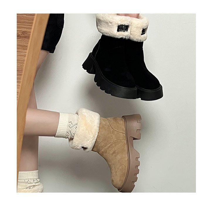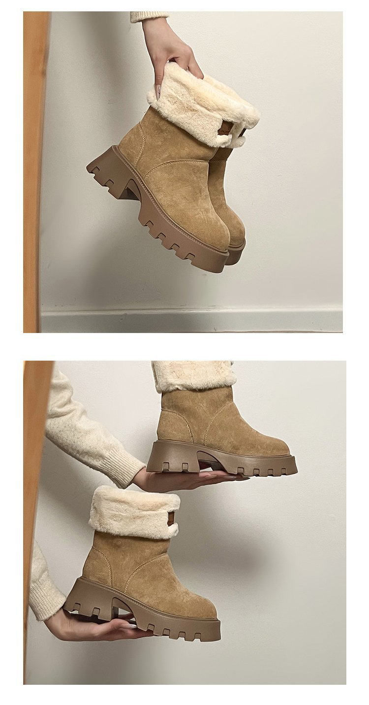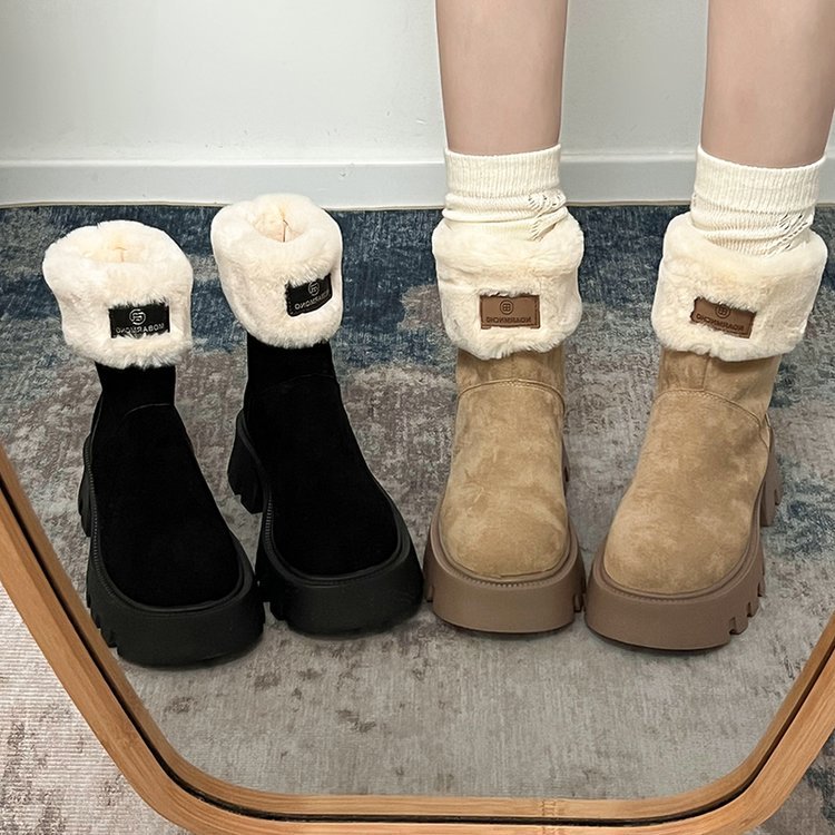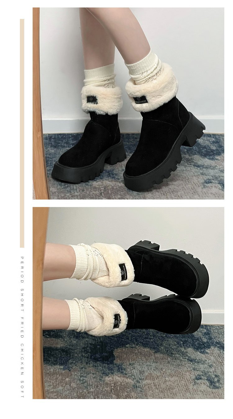 두꺼운 밑창 스노우 부츠 여성의 2024 새로운 겨울 작은 미끄럼 방지 기모 두꺼운 북동쪽 큰면 신발 빈티지 짧은 부츠